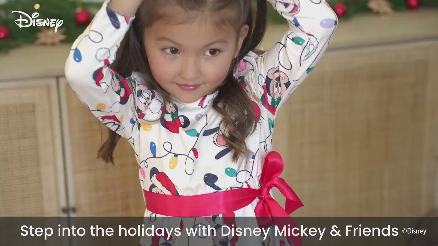 Celebrate the holidays in style with our Disney Mickey and Friends Christmas clothes. Discover toddler girl Mickey full print bow tie long-sleeve dresses, family matching plaid print sweatshirts, and snowflake character print plush crew neck sweatshirts. For little ones, check out Minnie Mouse graphic long-sleeve tulle dresses and fleece sweatshirts – ideal for Christmas family outfits and seasonal gatherings.