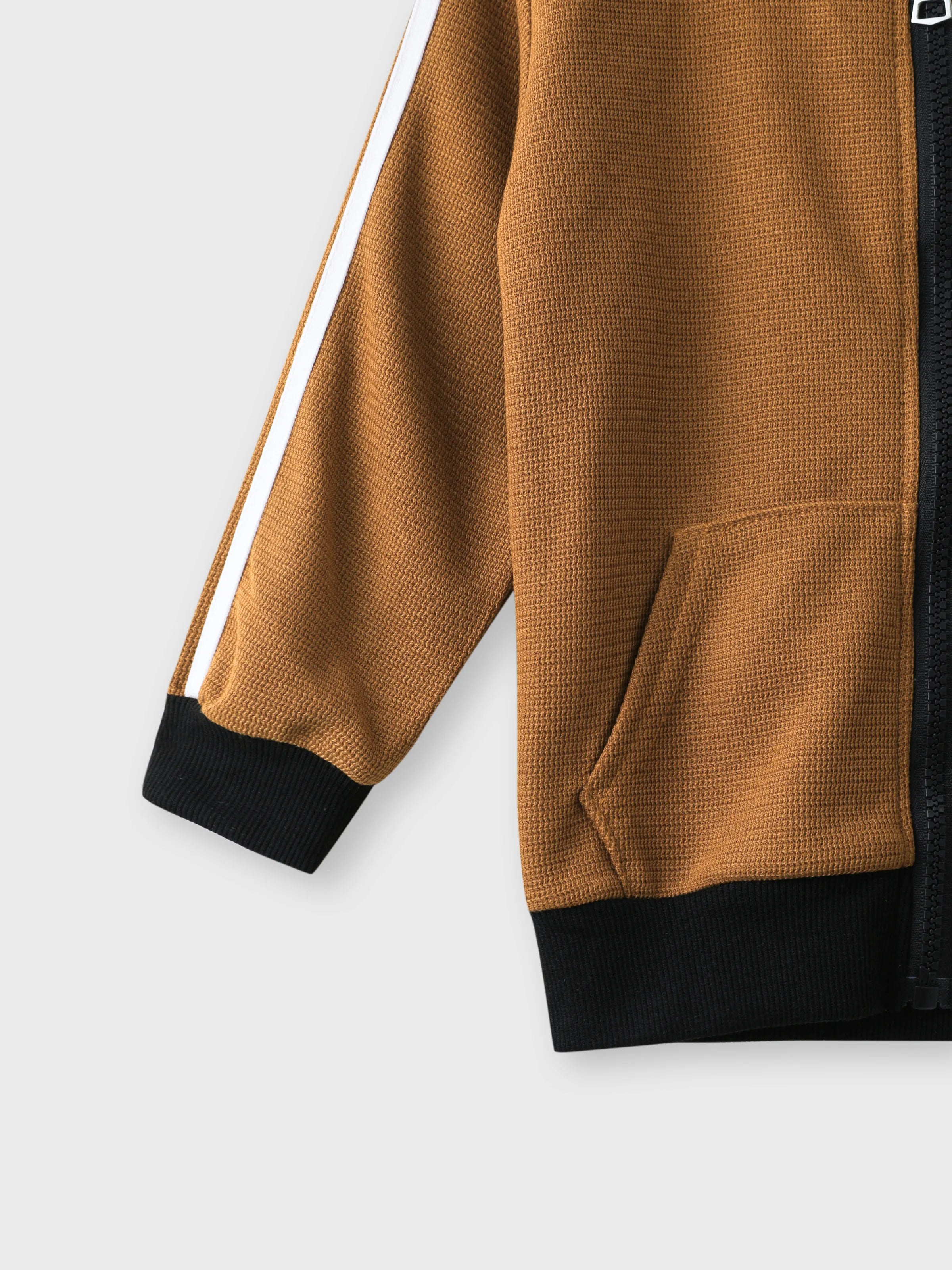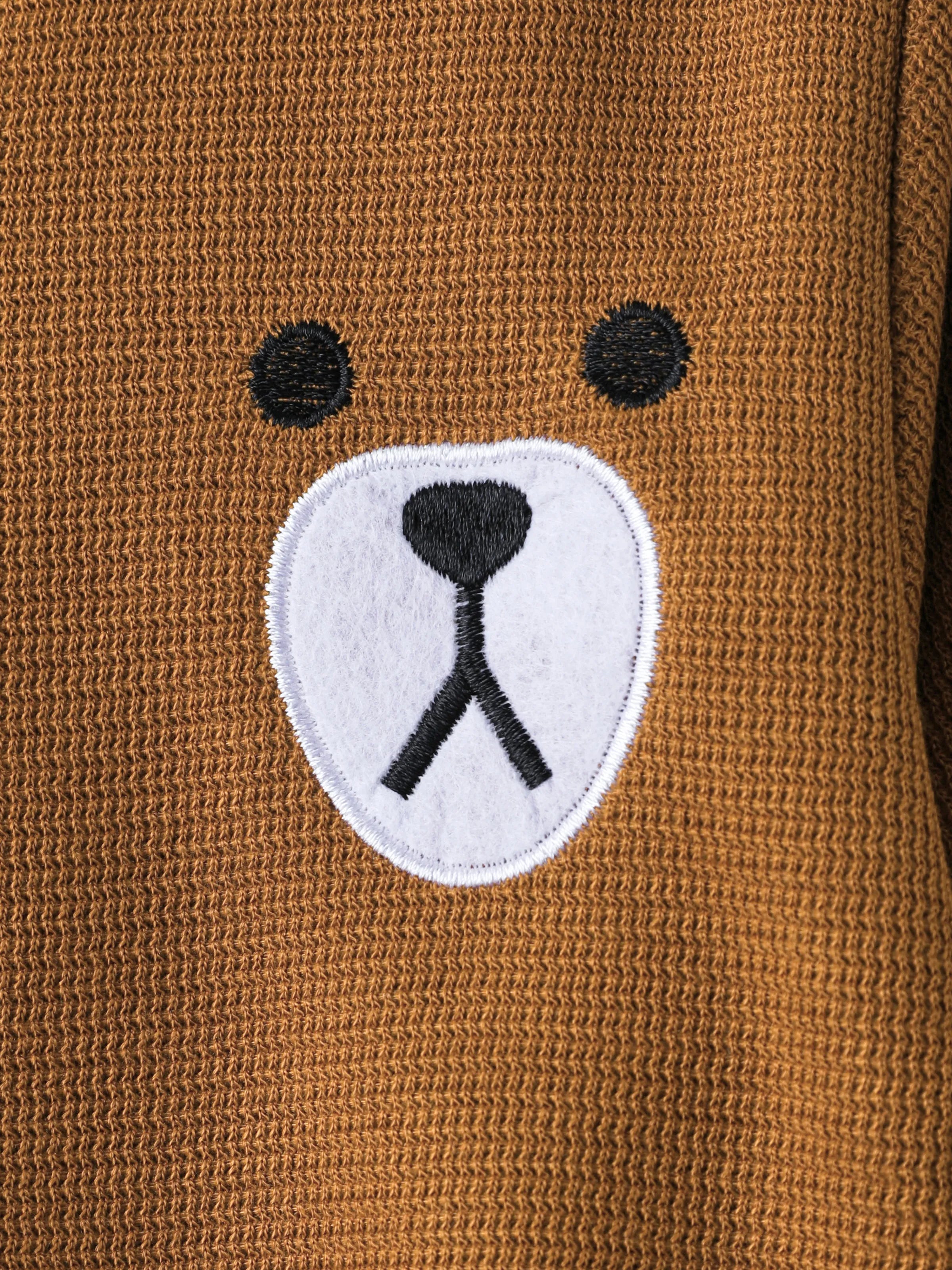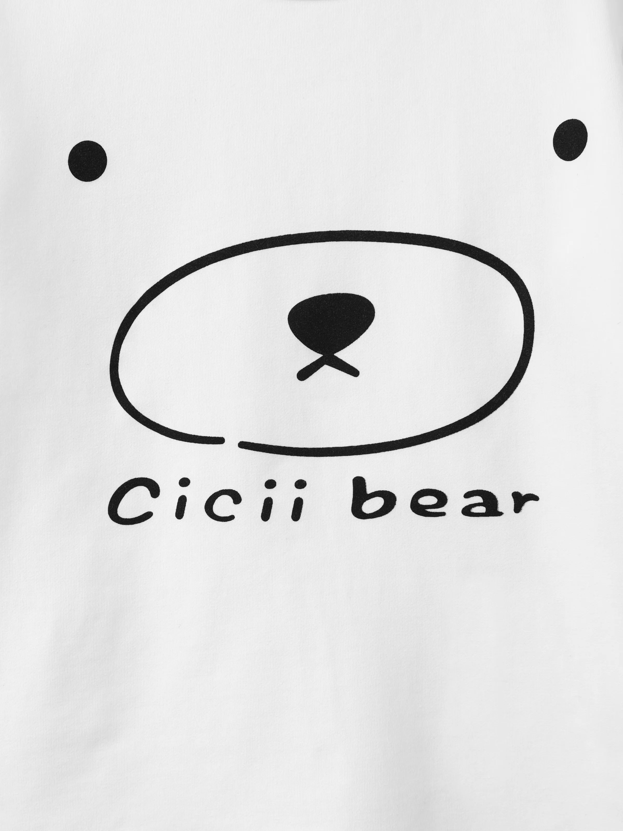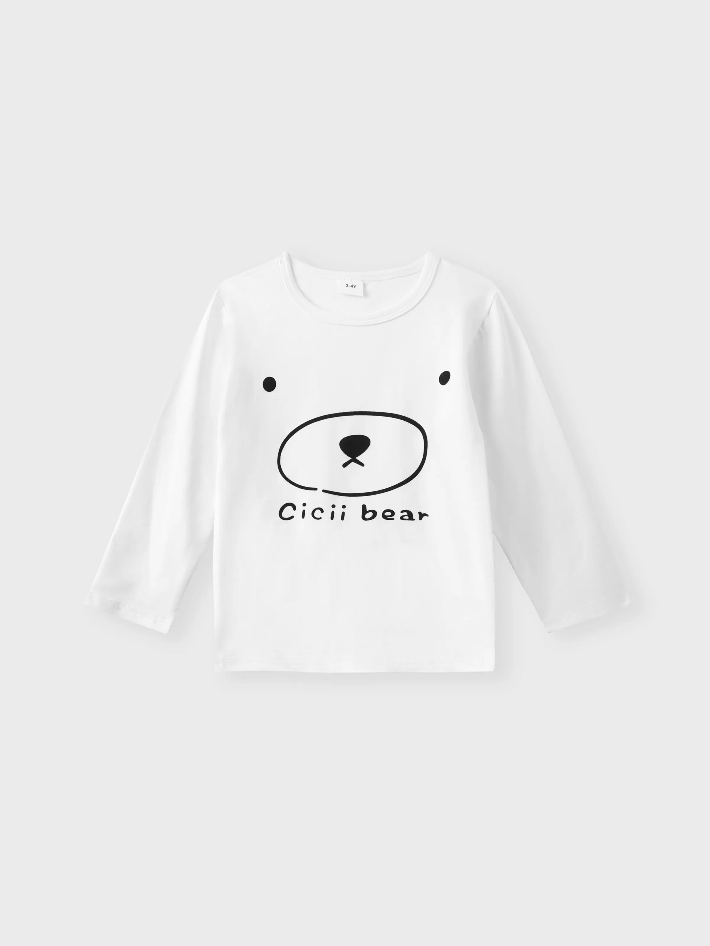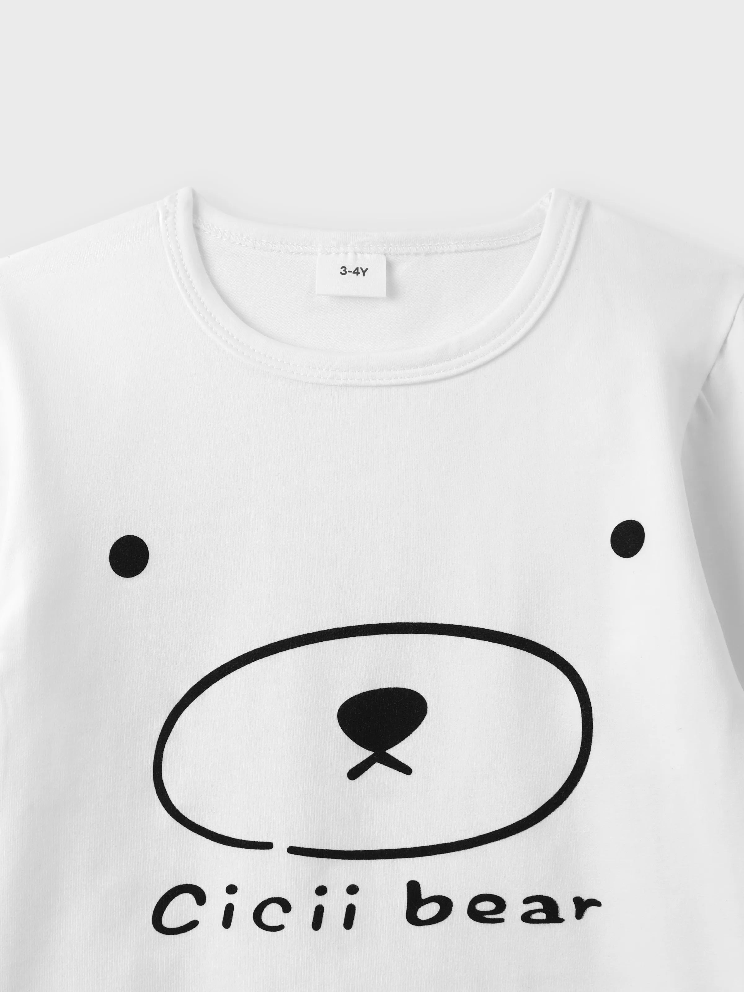 3-teilige Kind Junger Brief Bärendruck weißer Langarm-T-Shirt, Bomberjacke und elastische Hose Set khaki