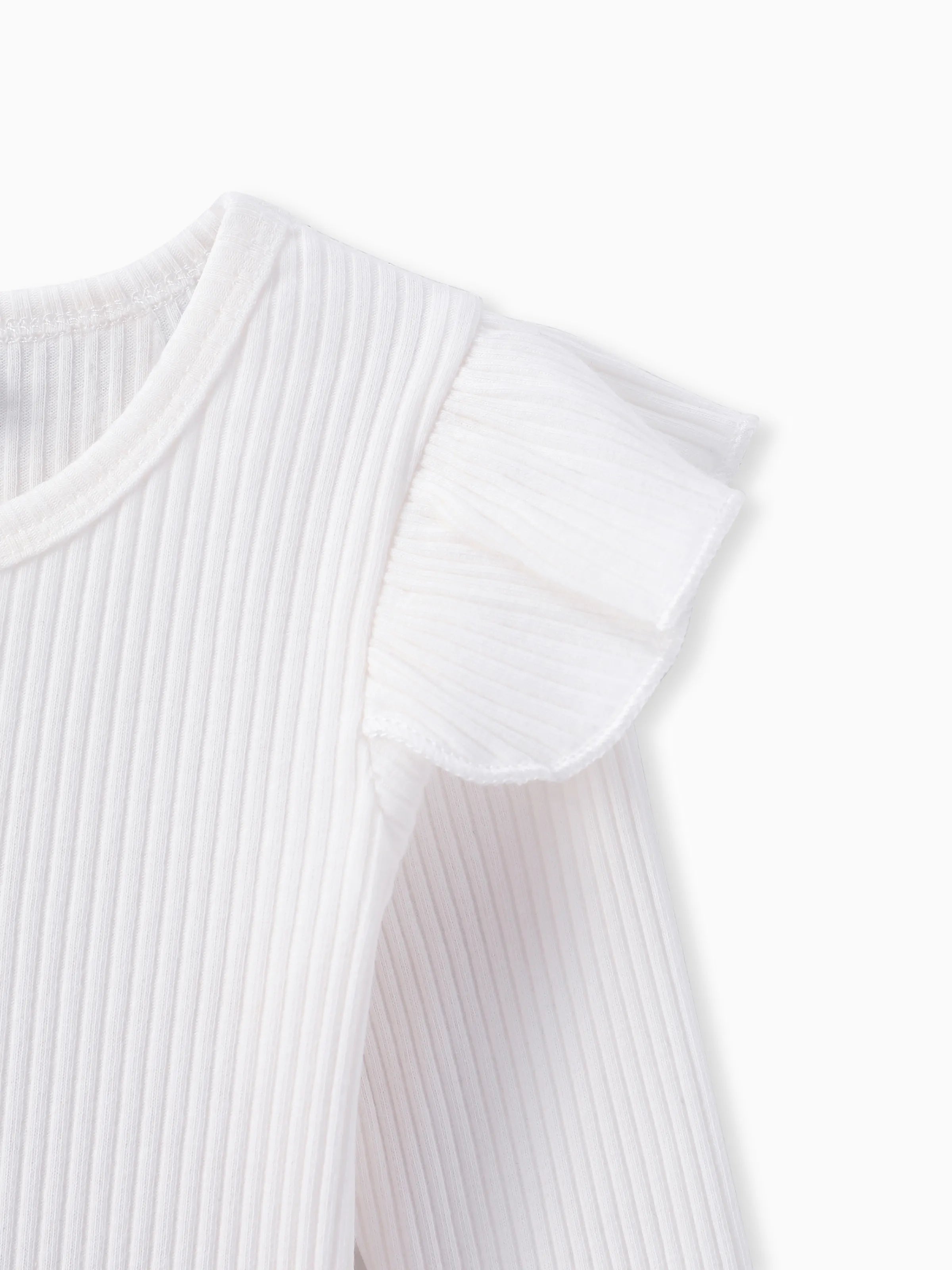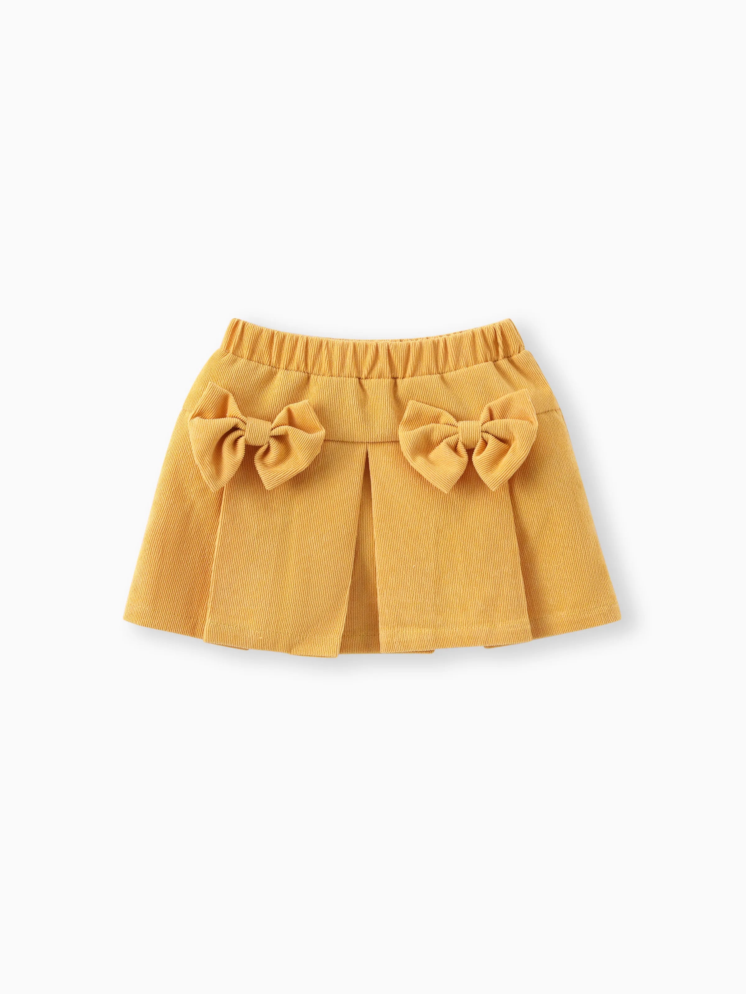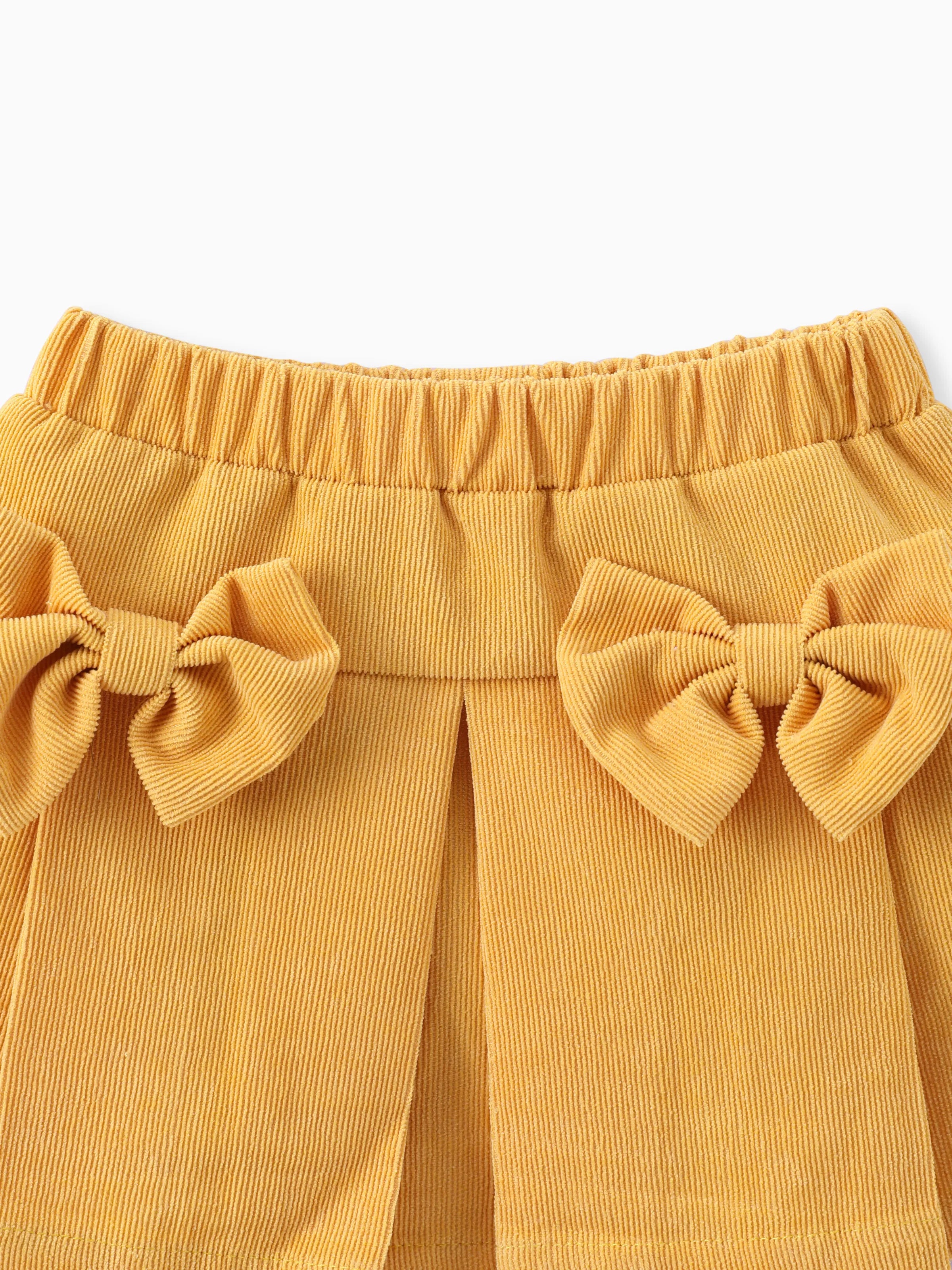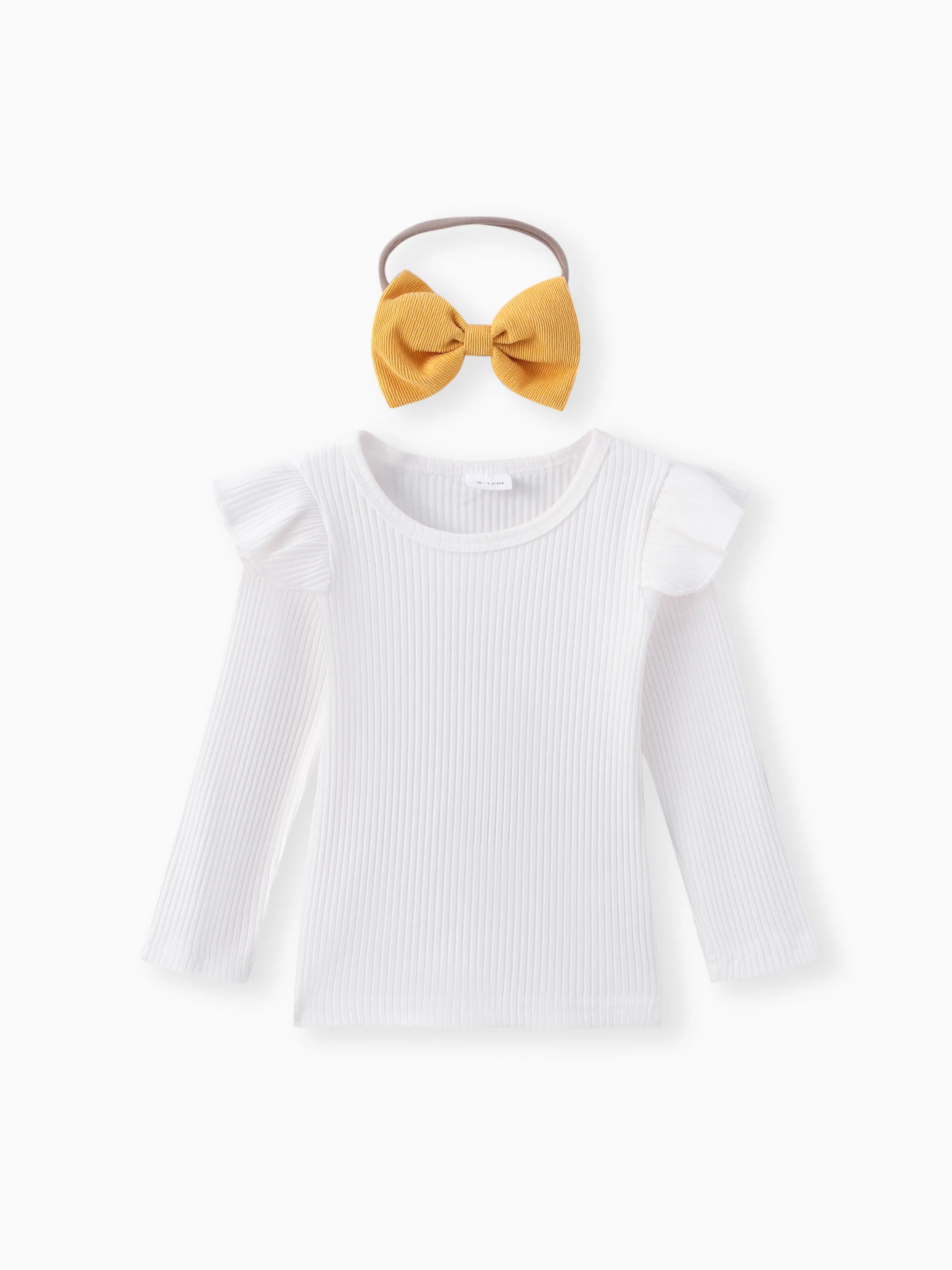 3-teiliges Baby-Mädchen-Set aus 95 % Baumwolle mit gerippten Rüschen und langen Ärmeln, Rock und Stirnband gelb
