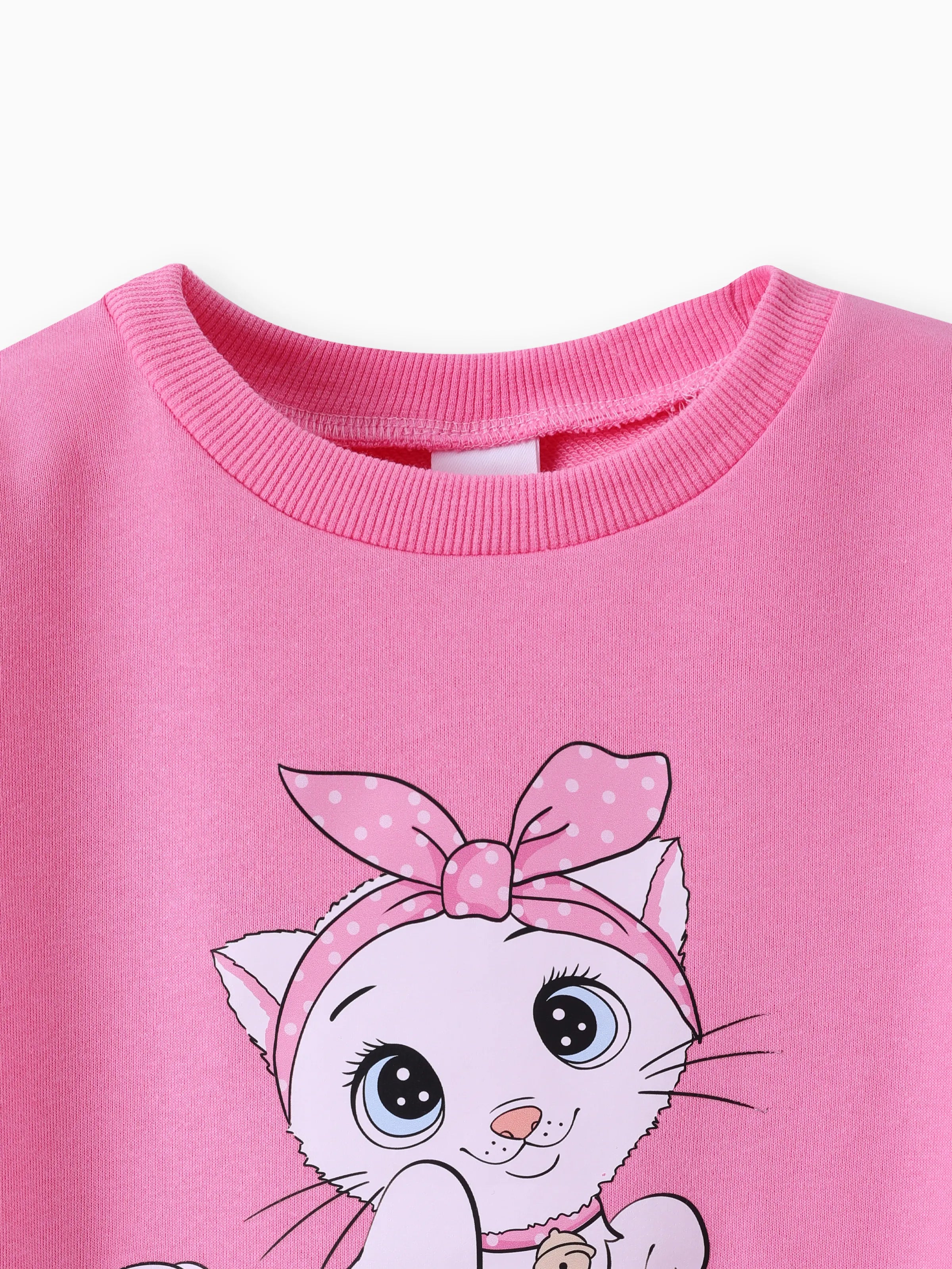 3 STÜCKE Kleinkind Mädchen Kindliche Katze Muster Distressed Patchwork Denim Jeans Set rosa