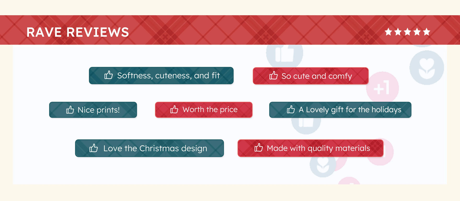 • Each pajama set includes a pair of festive buffalo plaid socks.
