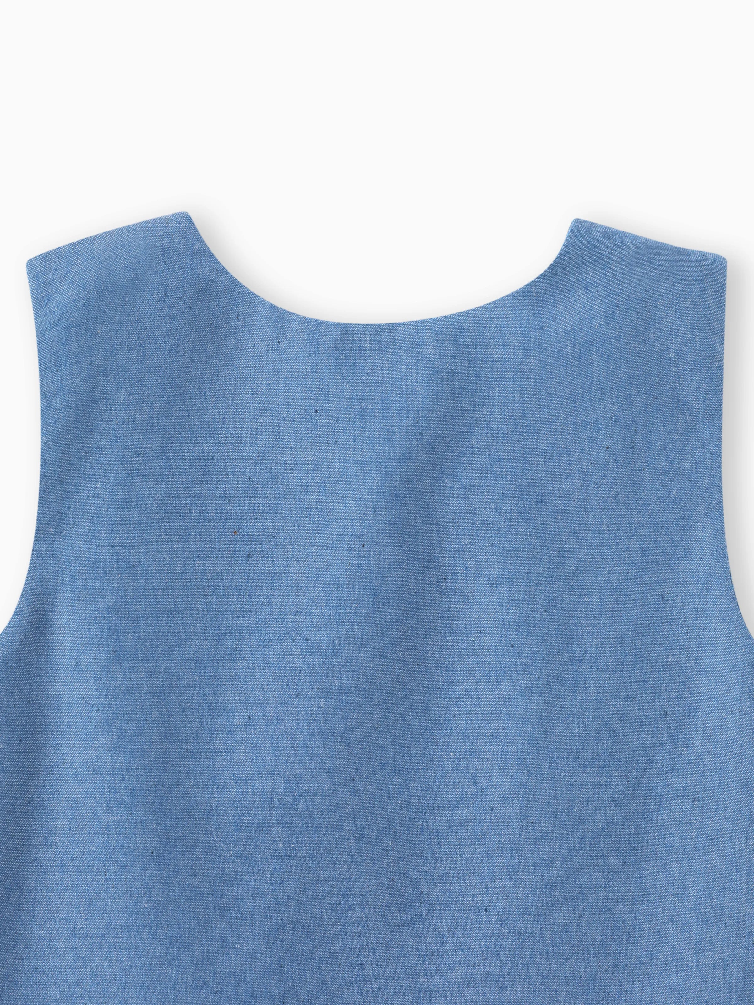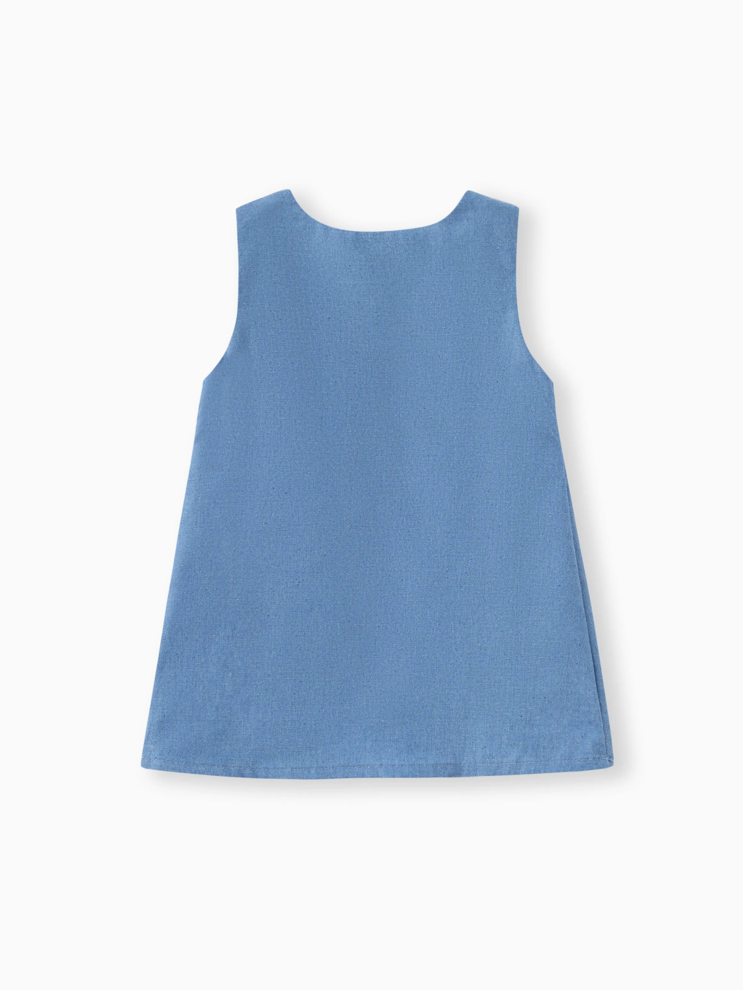 Baby Mädchen Giraffe Bowknot festes blaues Jeans-Behälterkleid Himmelblau