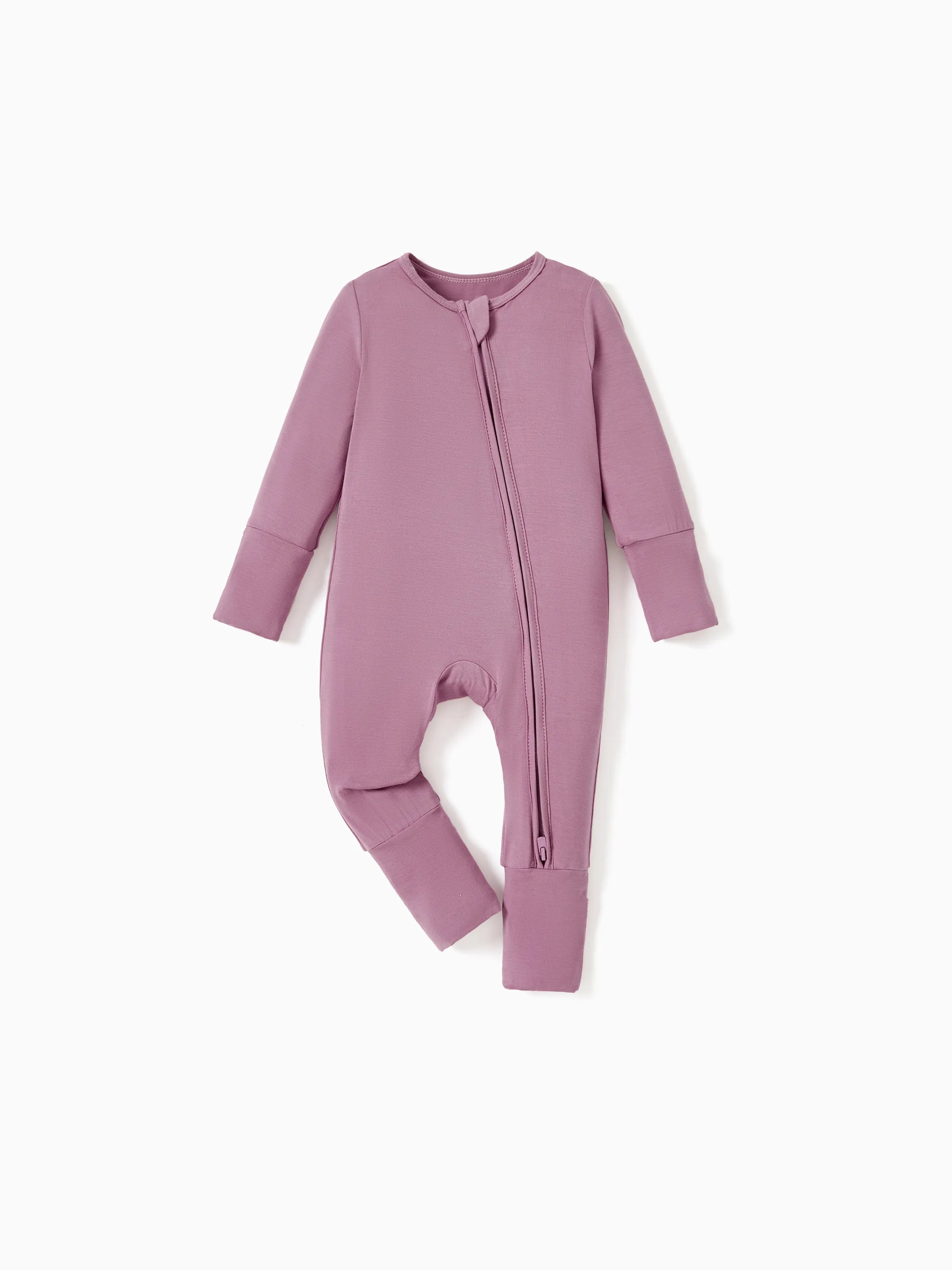 Bambus Baby Junge / Mädchen Kindliches Tiermuster 2-Wege-Reißverschluss Strampler Footie lila