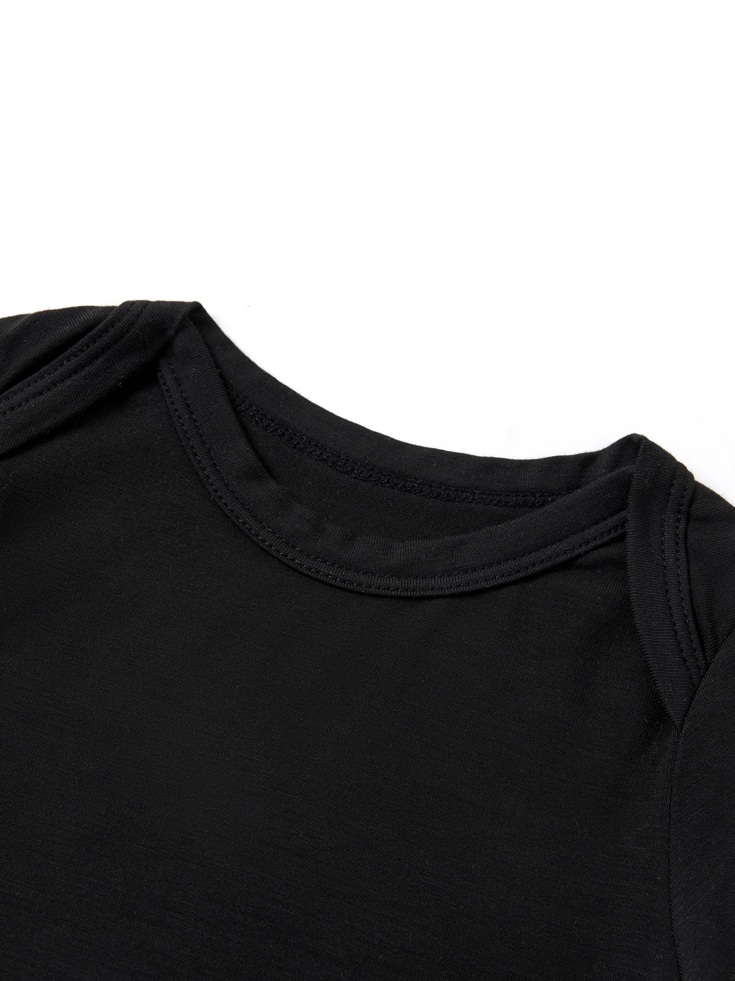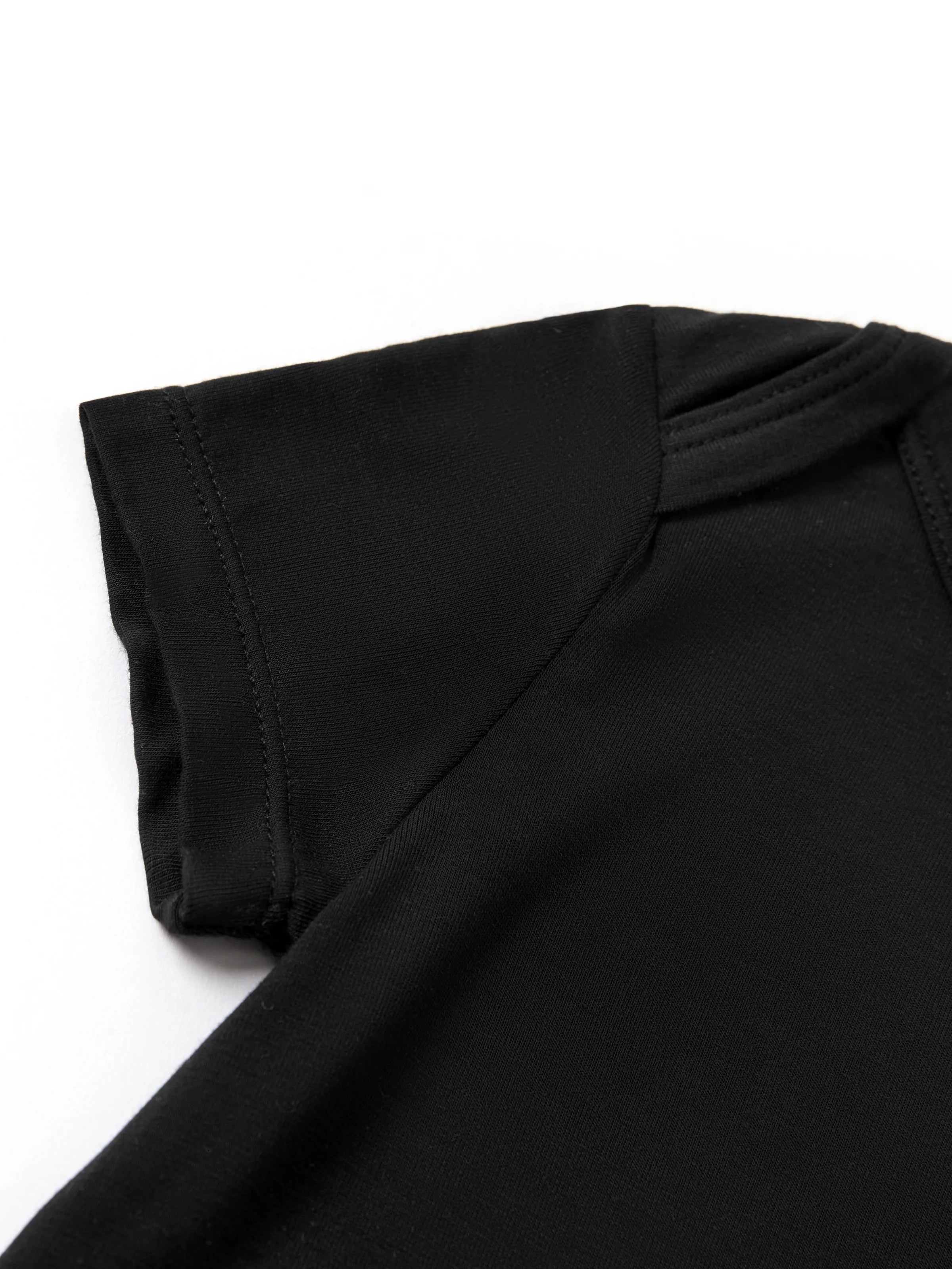 Einfarbig schwarz, Rundhals, kurze Ärmel und bequeme Passform – perfekt für Zuhause oder entspannte Ausflüge.