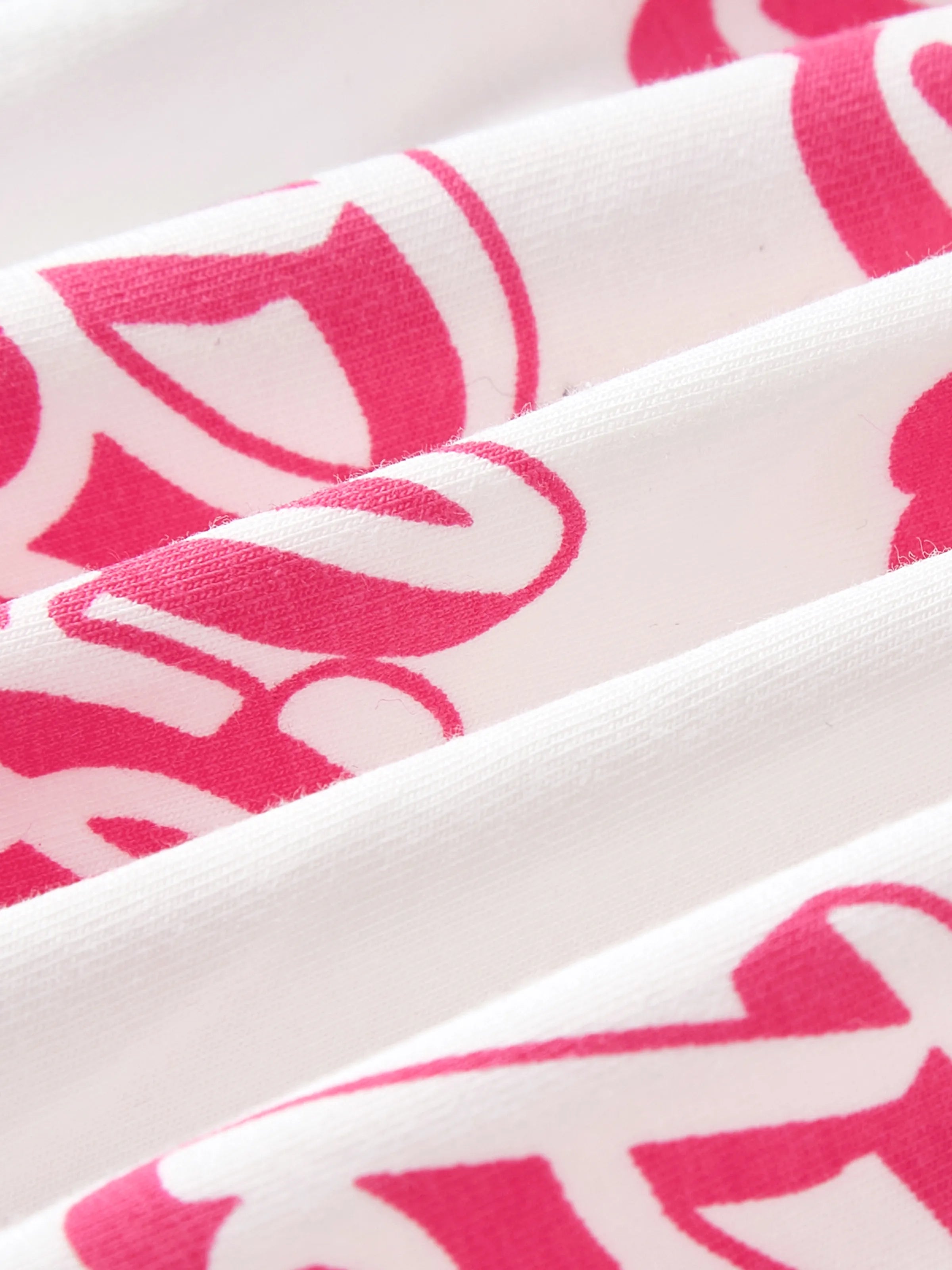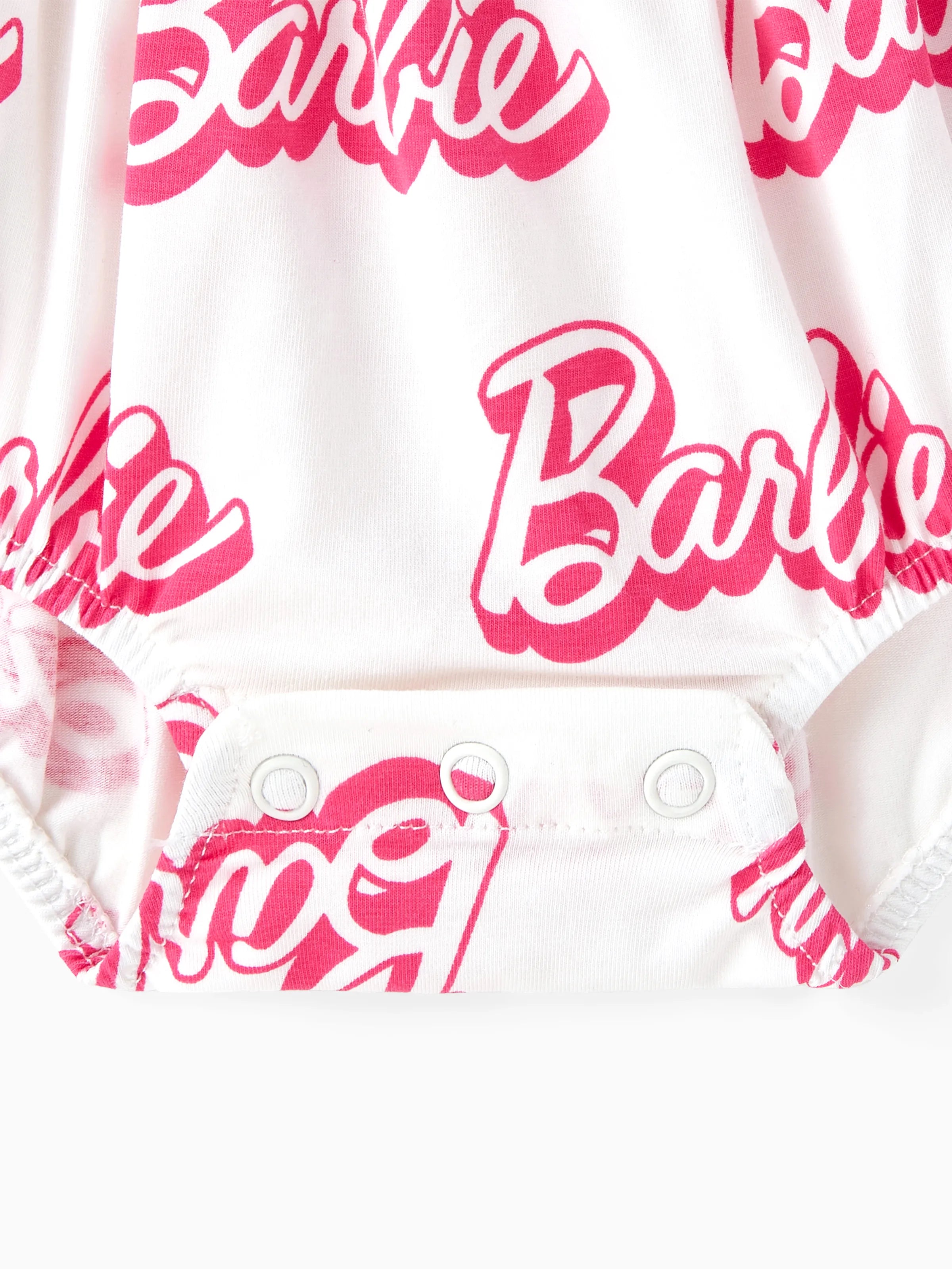 Barbie Baby Mädchen 1pc 95% Baumwolle Allover Briefdruck Schleife Front Cami Strampler Strampler pinkywhite