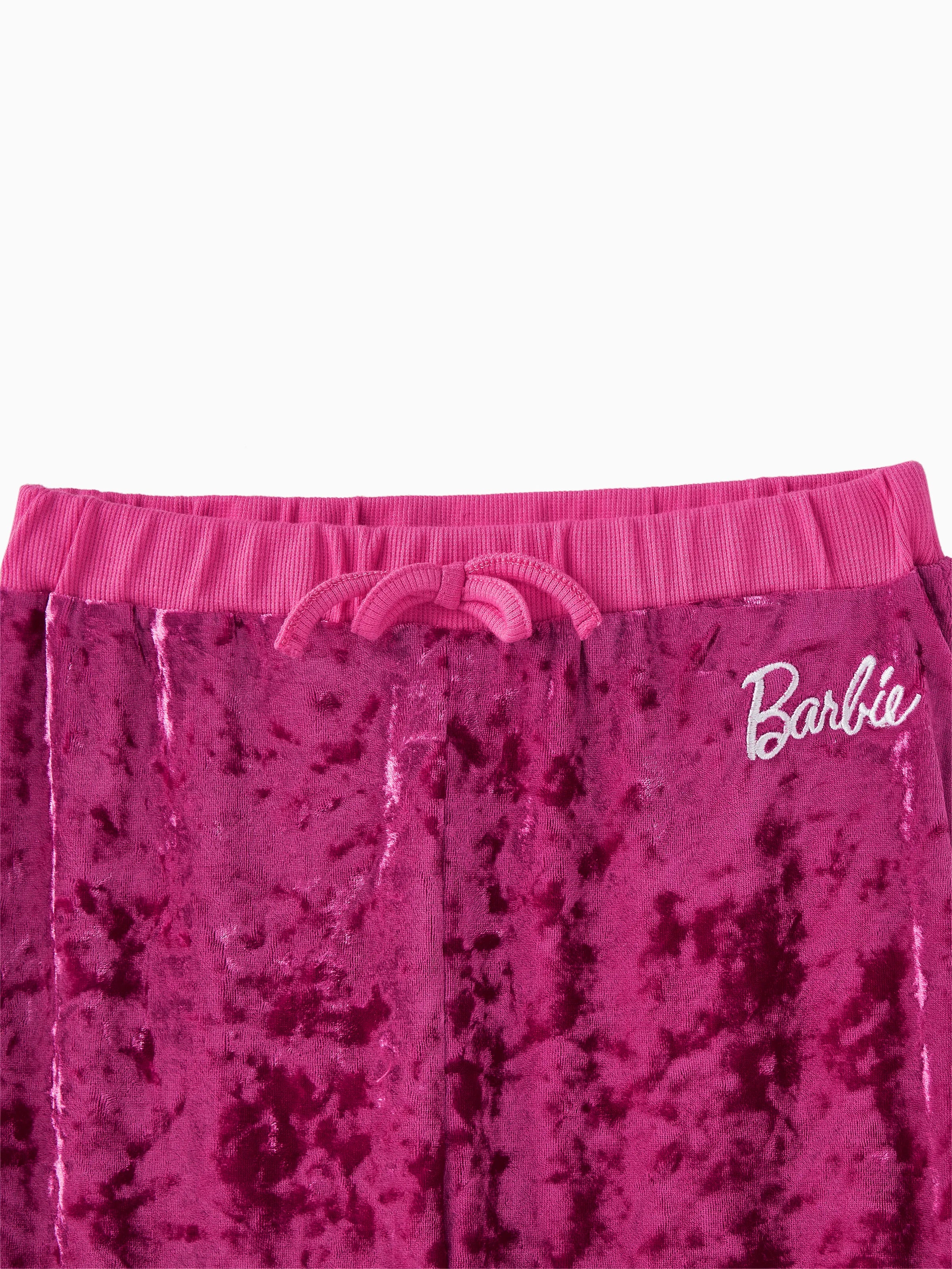 Barbie Kid Girl 2-teiliges langärmeliges Kapuzenpullover- und Hosenset mit Buchstabenstickerei Rosa