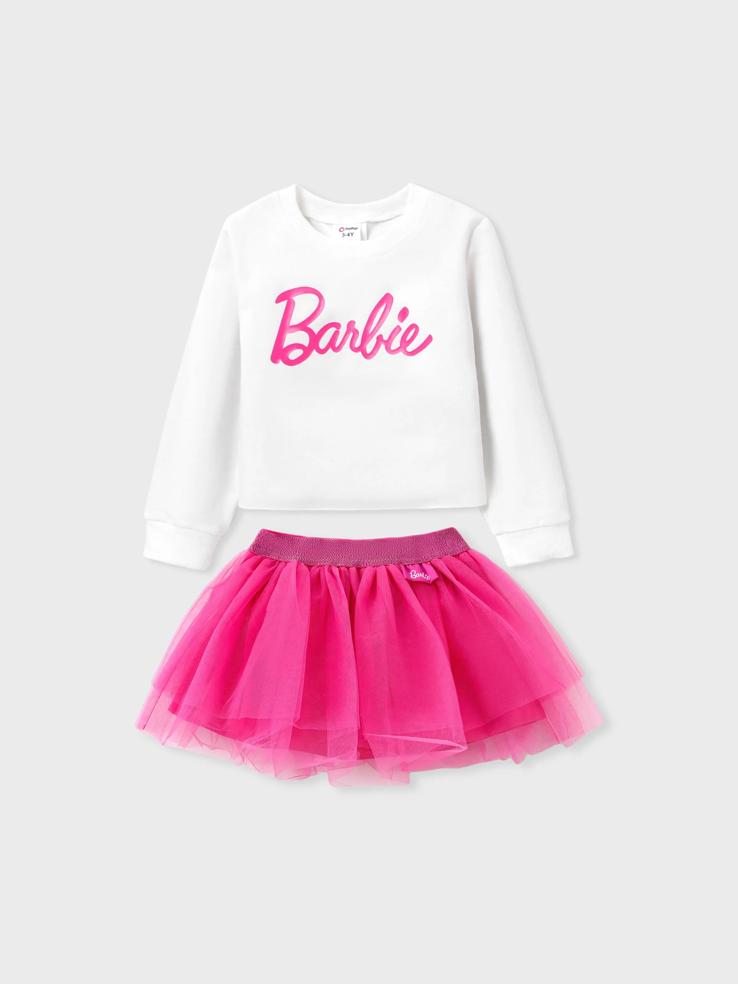 Kleiden Sie Ihr kleines Mädchen mit offiziell lizenziertem MAT Barbie Merchandise an, ein bezauberndes Set mit einem langärmeligen T-Shirt oder einem Mesh-Rock für Kleinkinder, das mit einem kindlichen Zopf-Design aufwartet und perfekt für Ihre süße kleine Barbie-Mädchen ist.