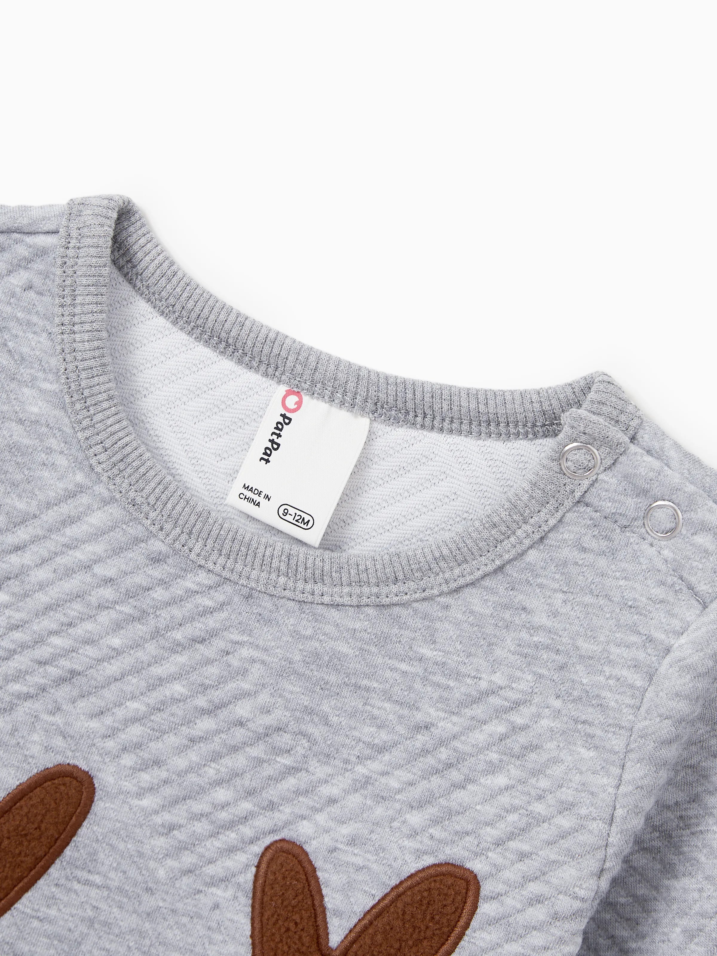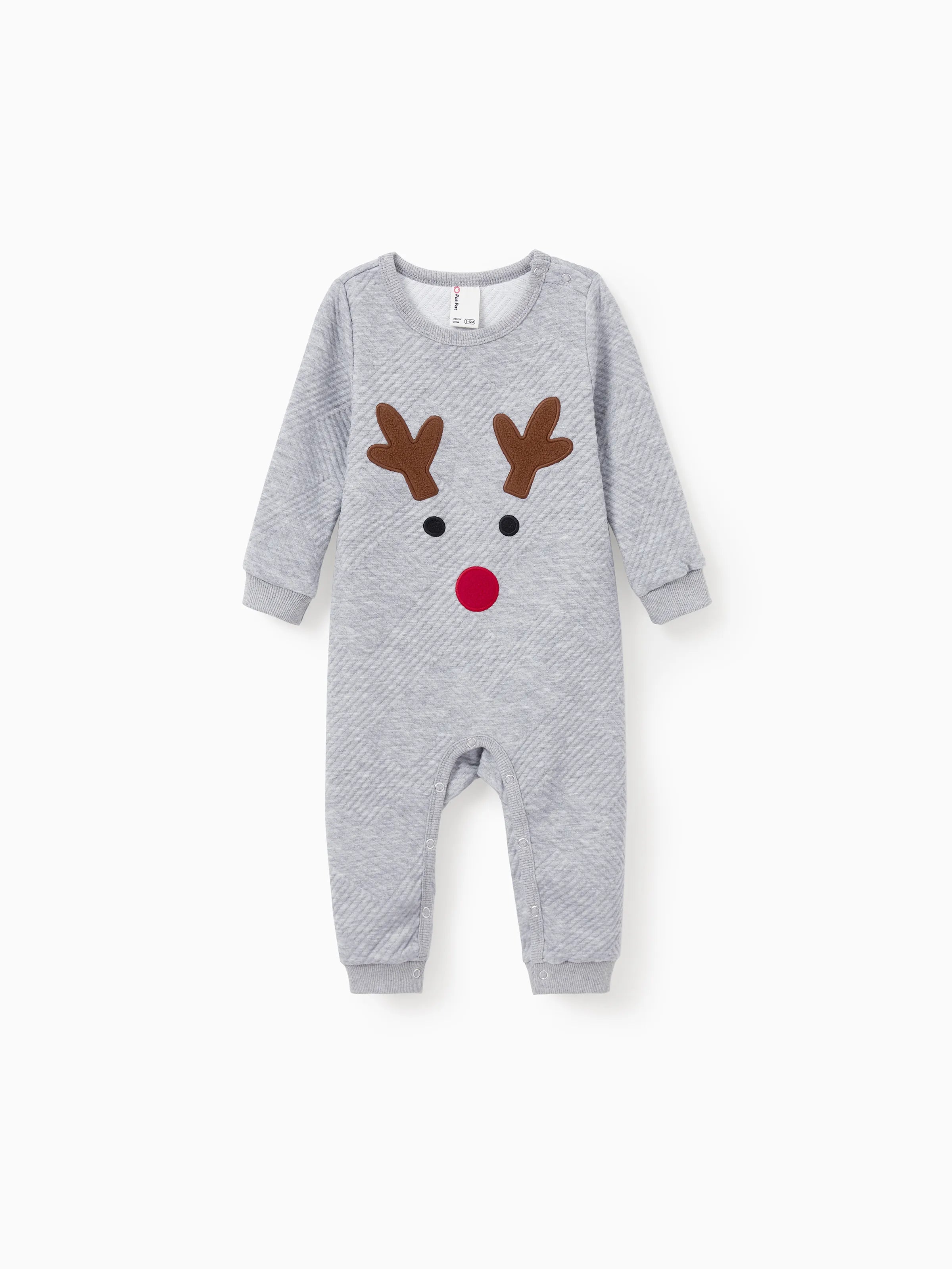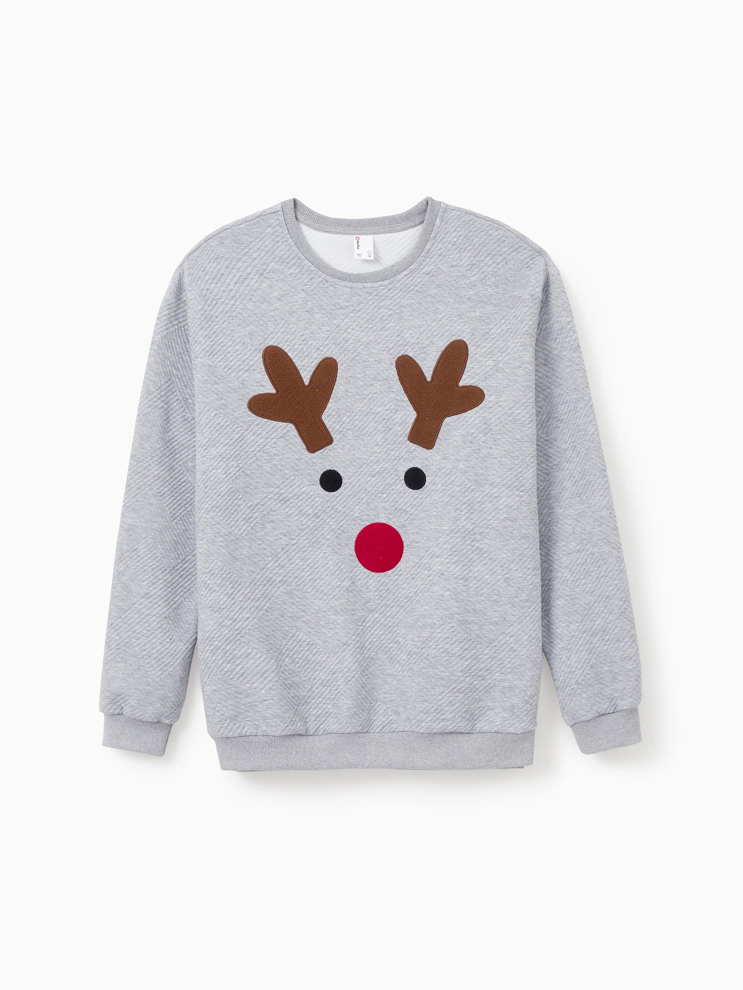 Weihnachten Passendes Familien-Langarm-Top Niedliches Rentier-Sweatshirt mit besticktem Design grau