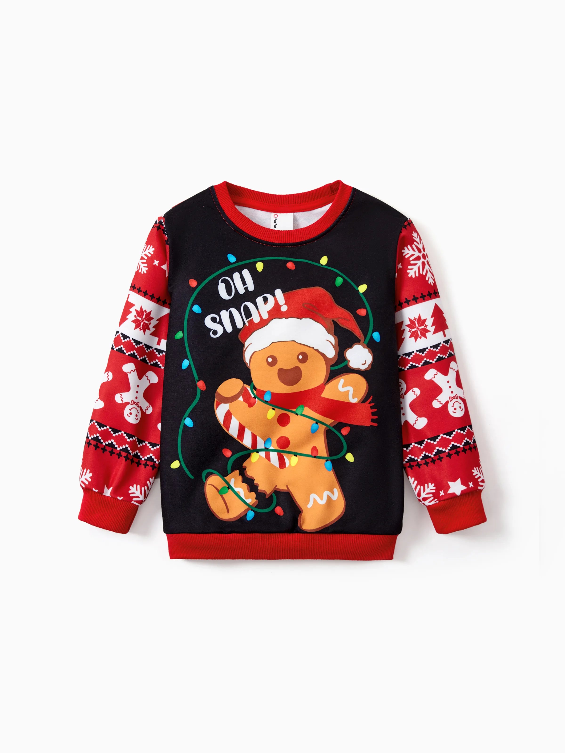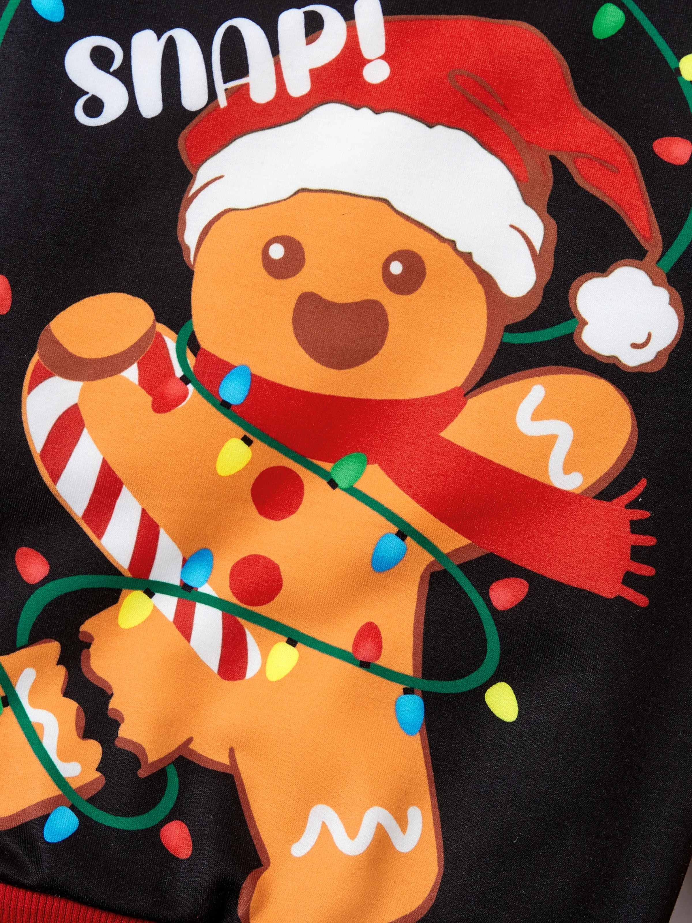 Weihnachten Passende Familie Tops Lebkuchen Mann Print Casual Langarm Sweatshirt rot
