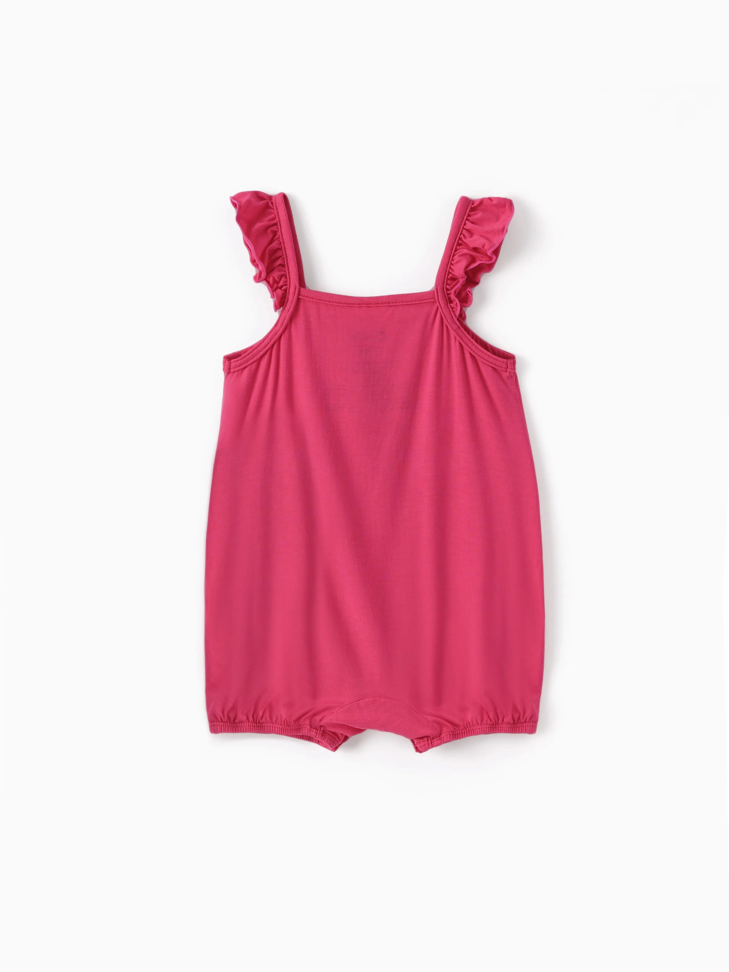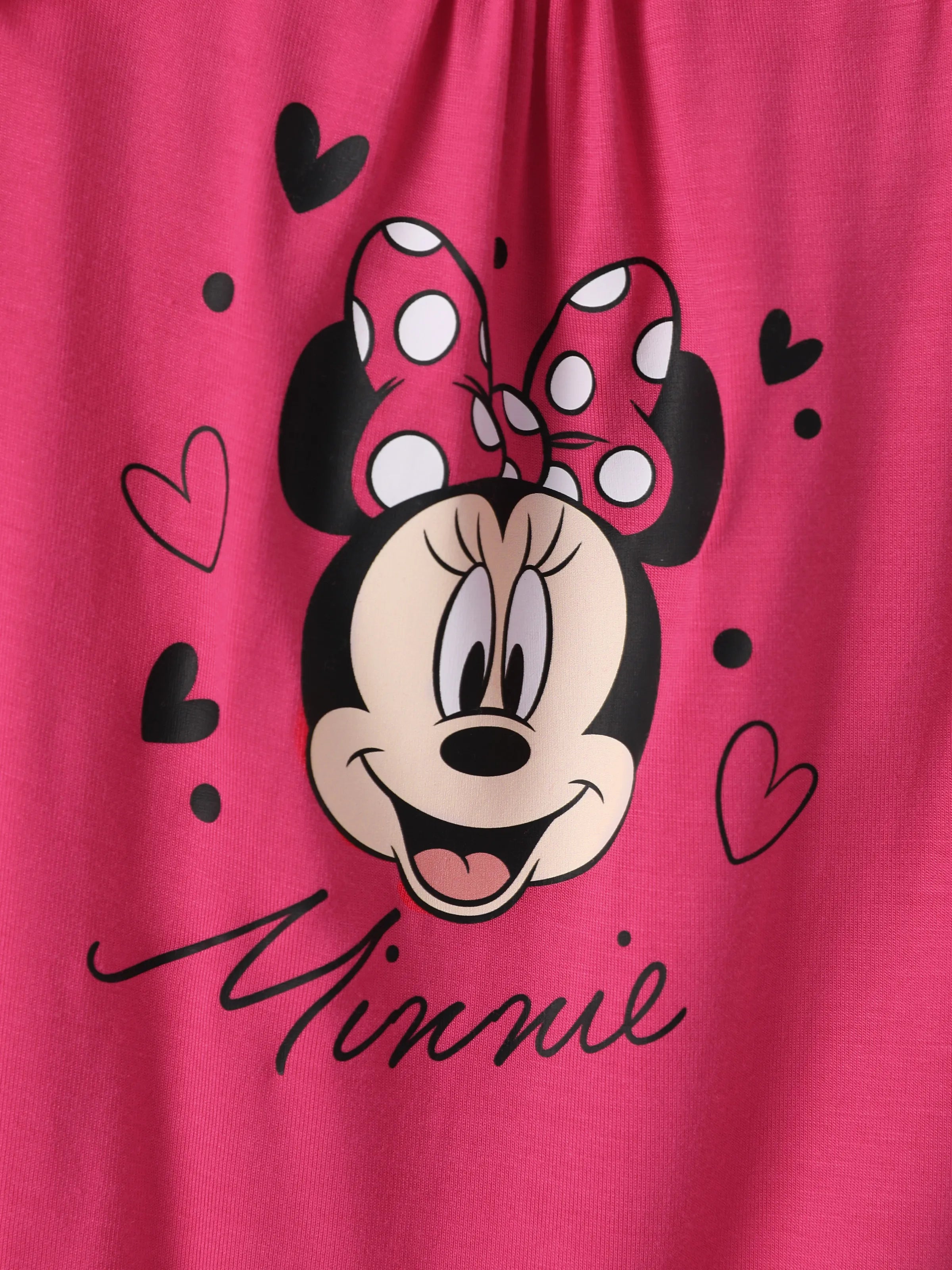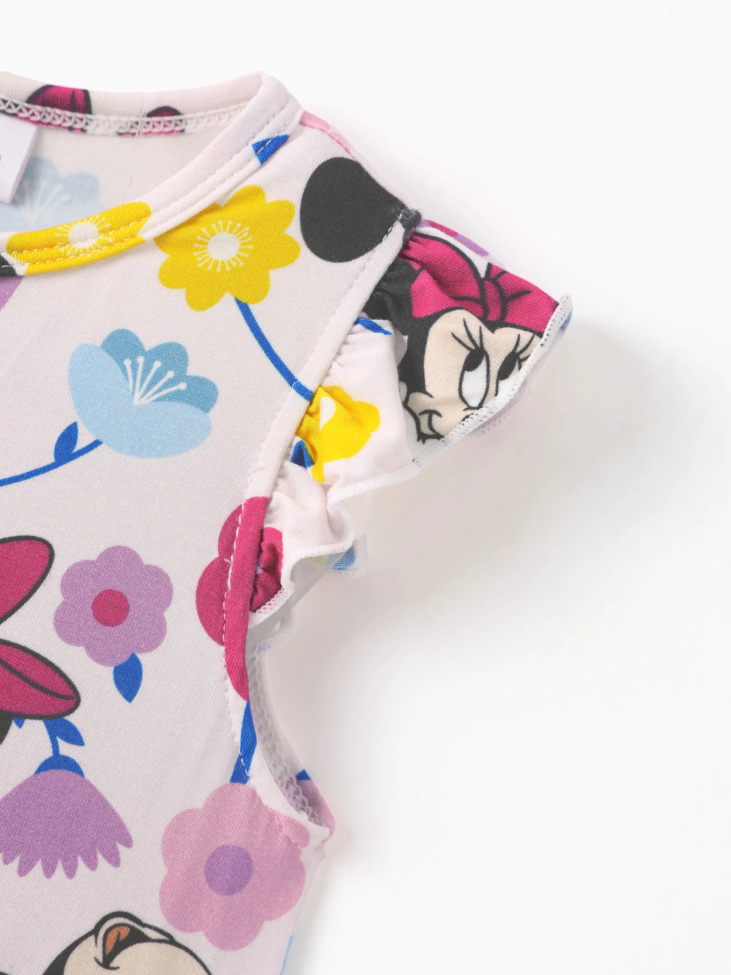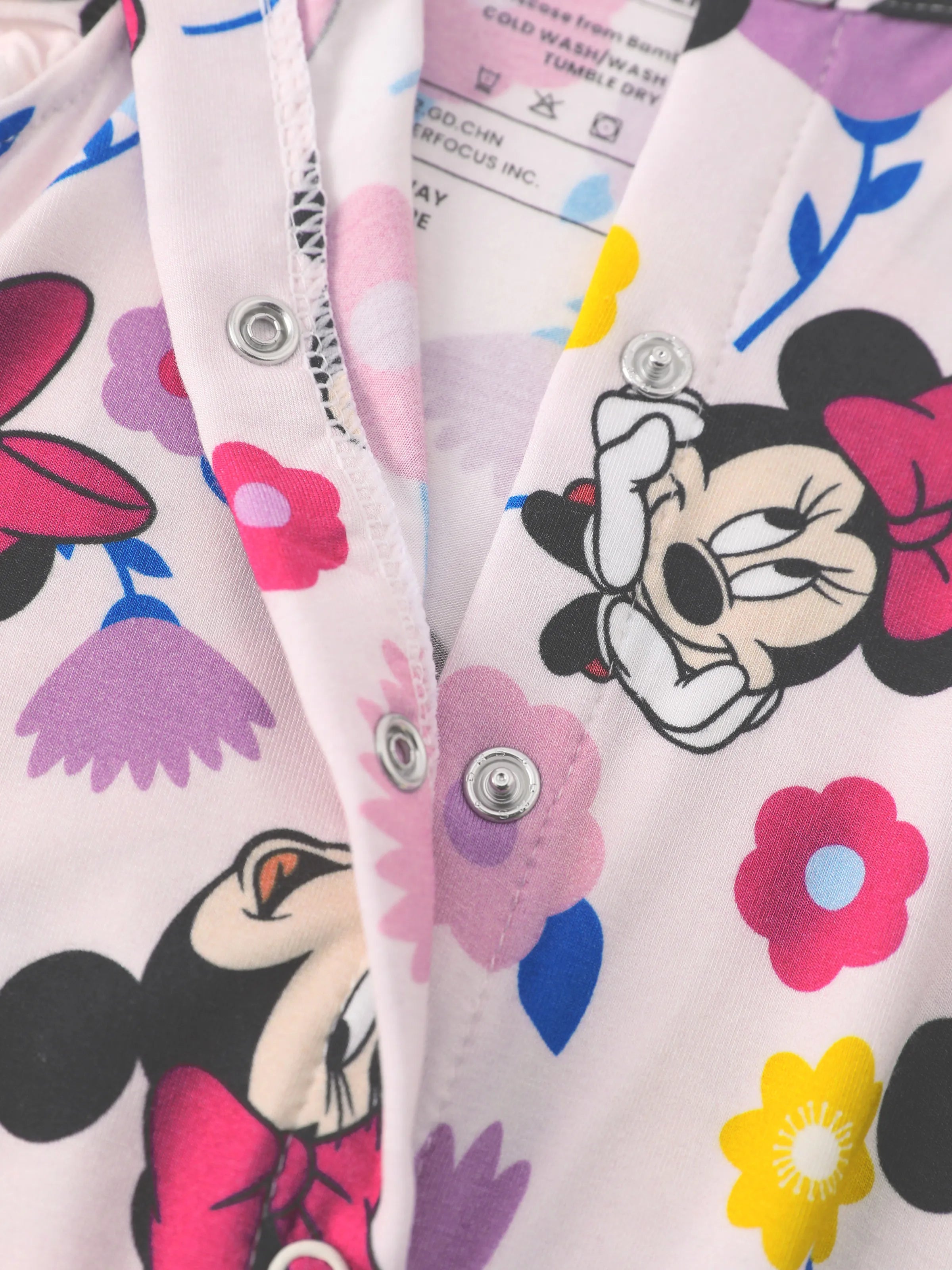 Disney Mickey and Friends Baby Girl 2pcs Minnie Bamboo Ruffled Allover Print Romper Hot Pink
