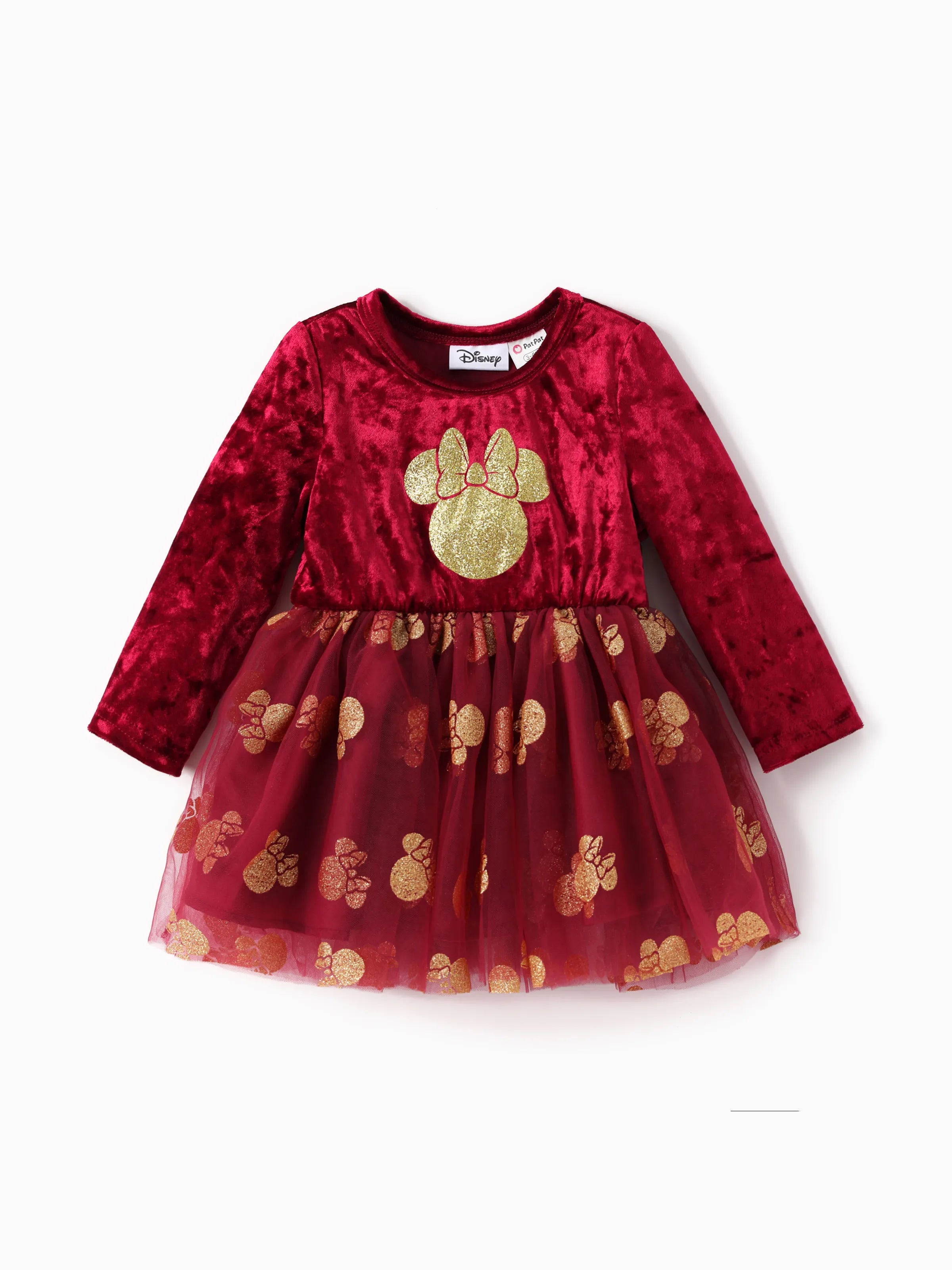 Disney Micky und Freunde Baby/Todder Mädchen 1 Stück Charakter Minnie Maus Velet Tüllkleid Weinrot
