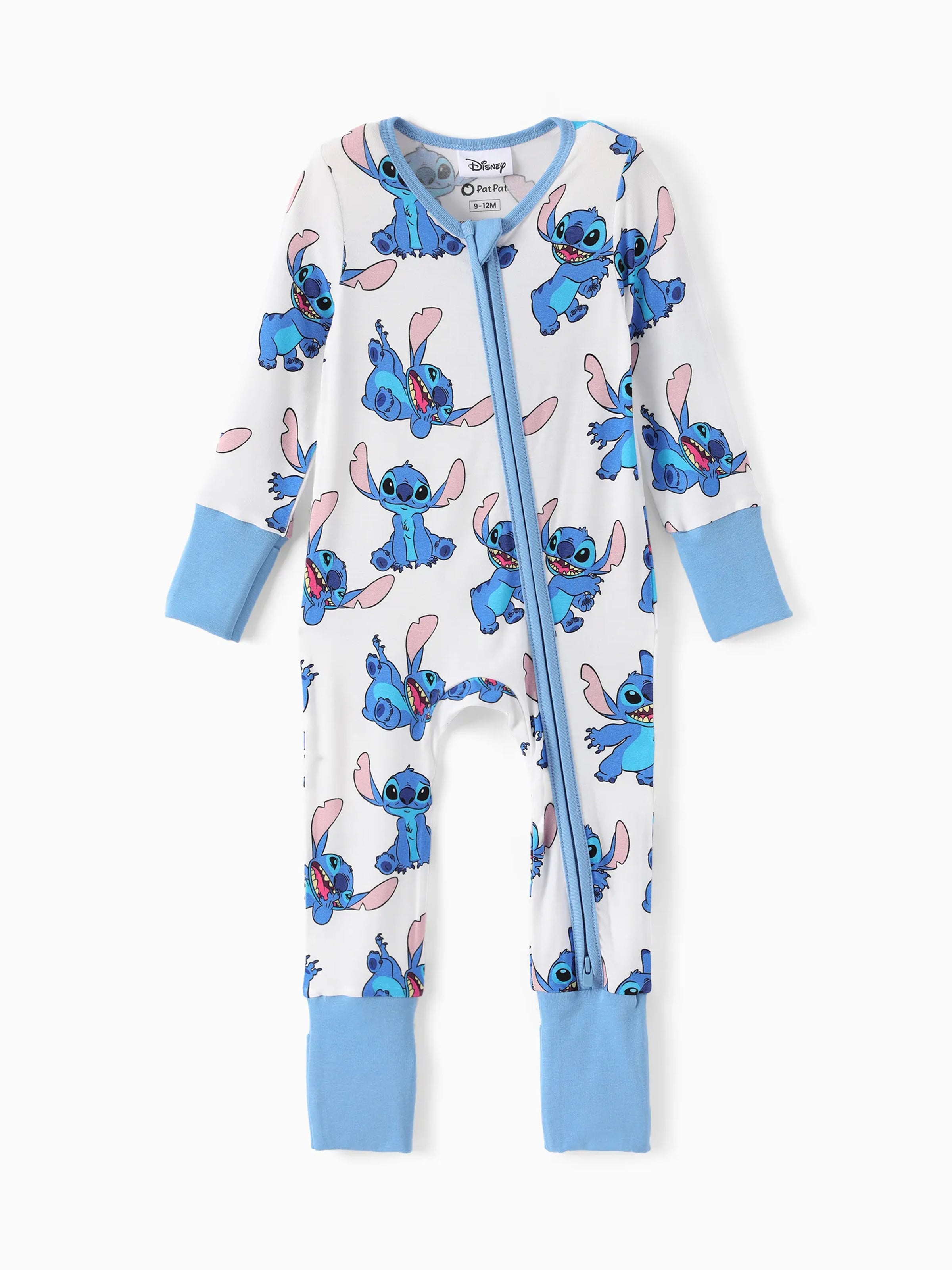 Disney Stitch Bamboo Baby Boy/Girl 2-Way Zip Onesies Anti Slip Long-sleeve Footie Blue