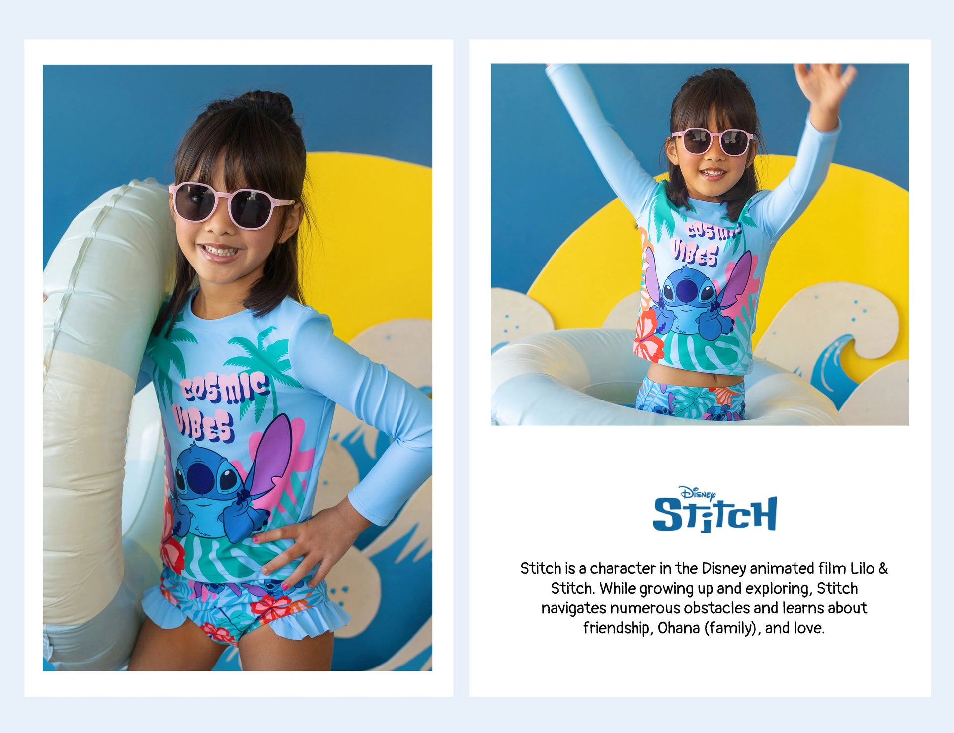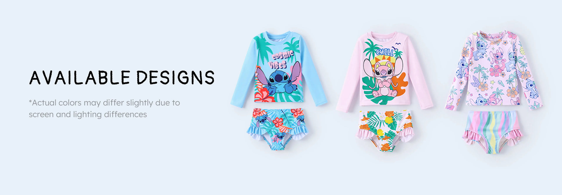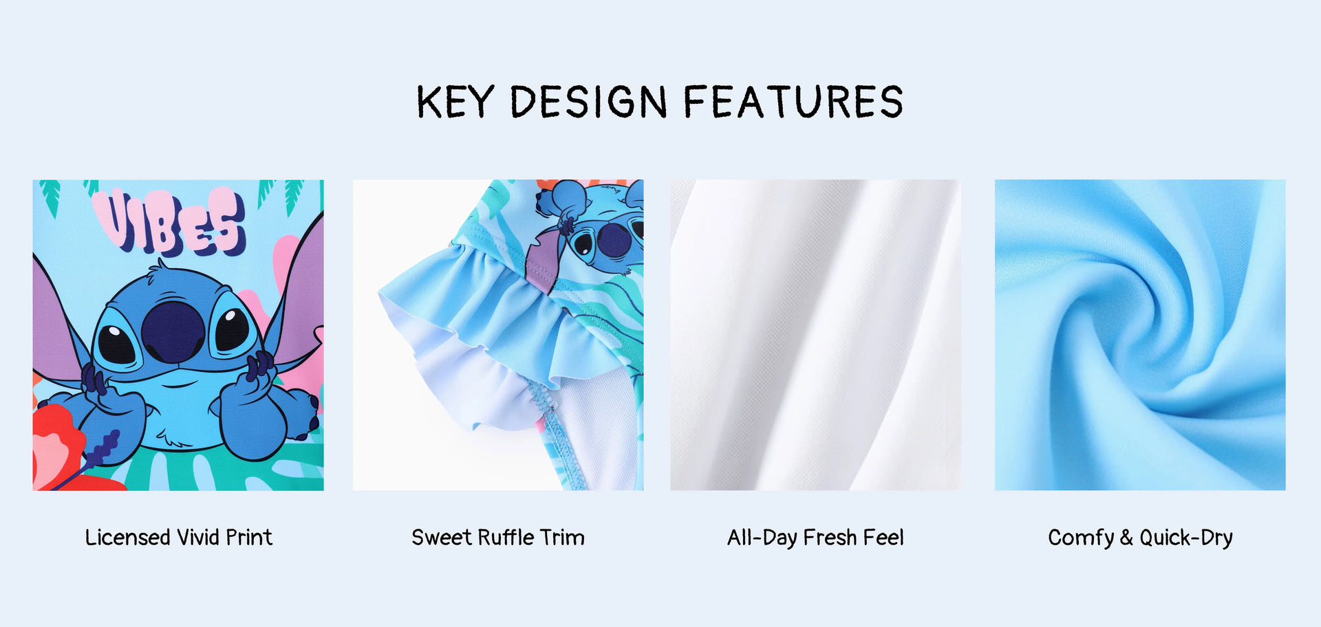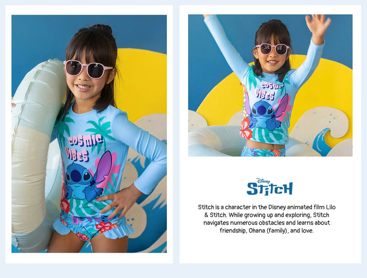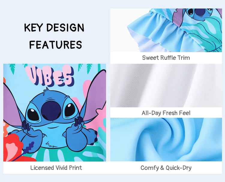 Disney Stitch Kleinkind/Kind Mädchen Tropische Pflanze Rüschen 2 Stück UPF 50+ Badeanzug blau