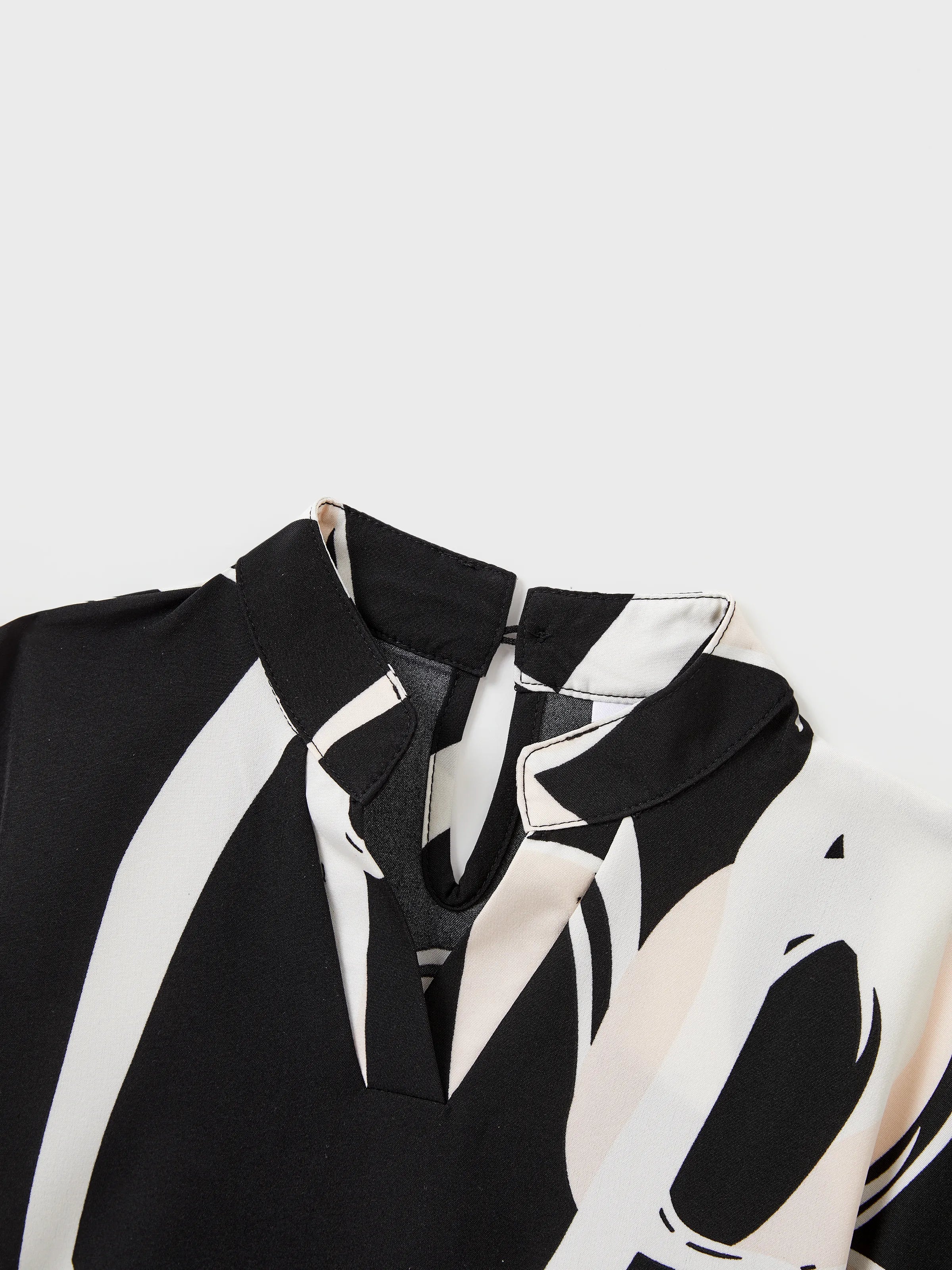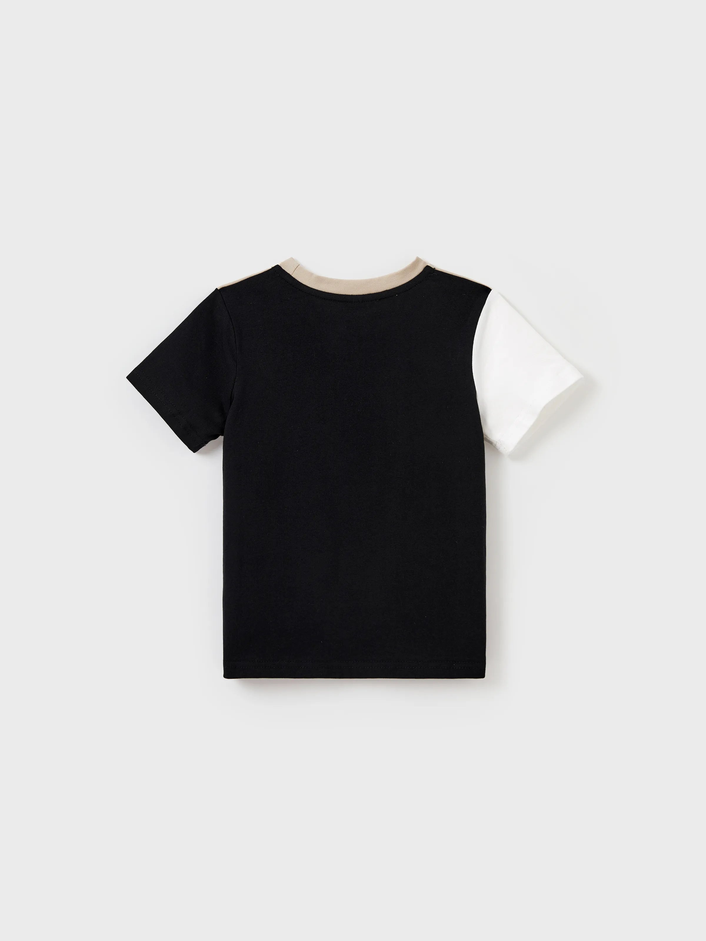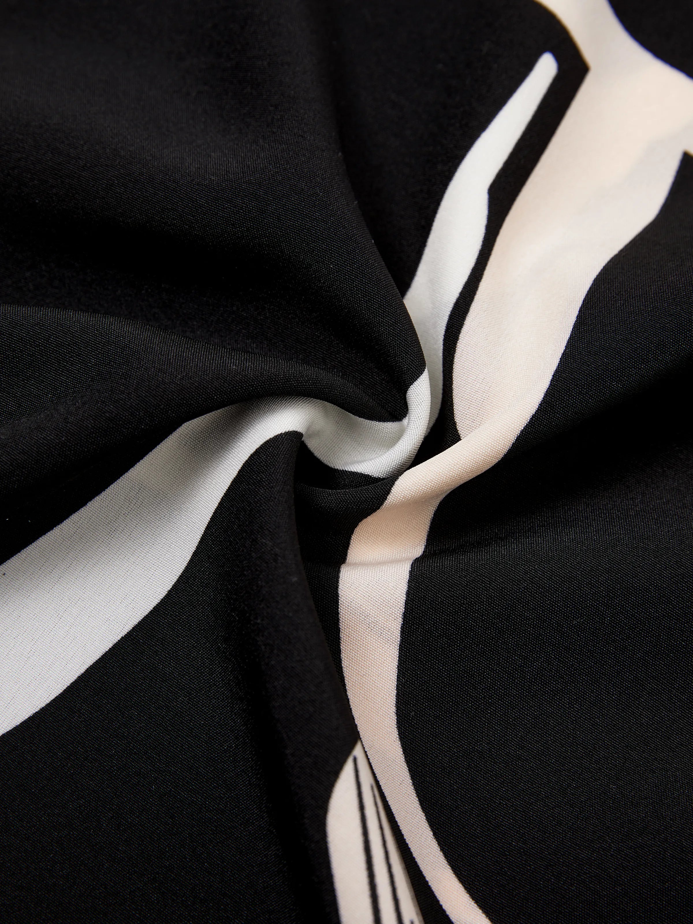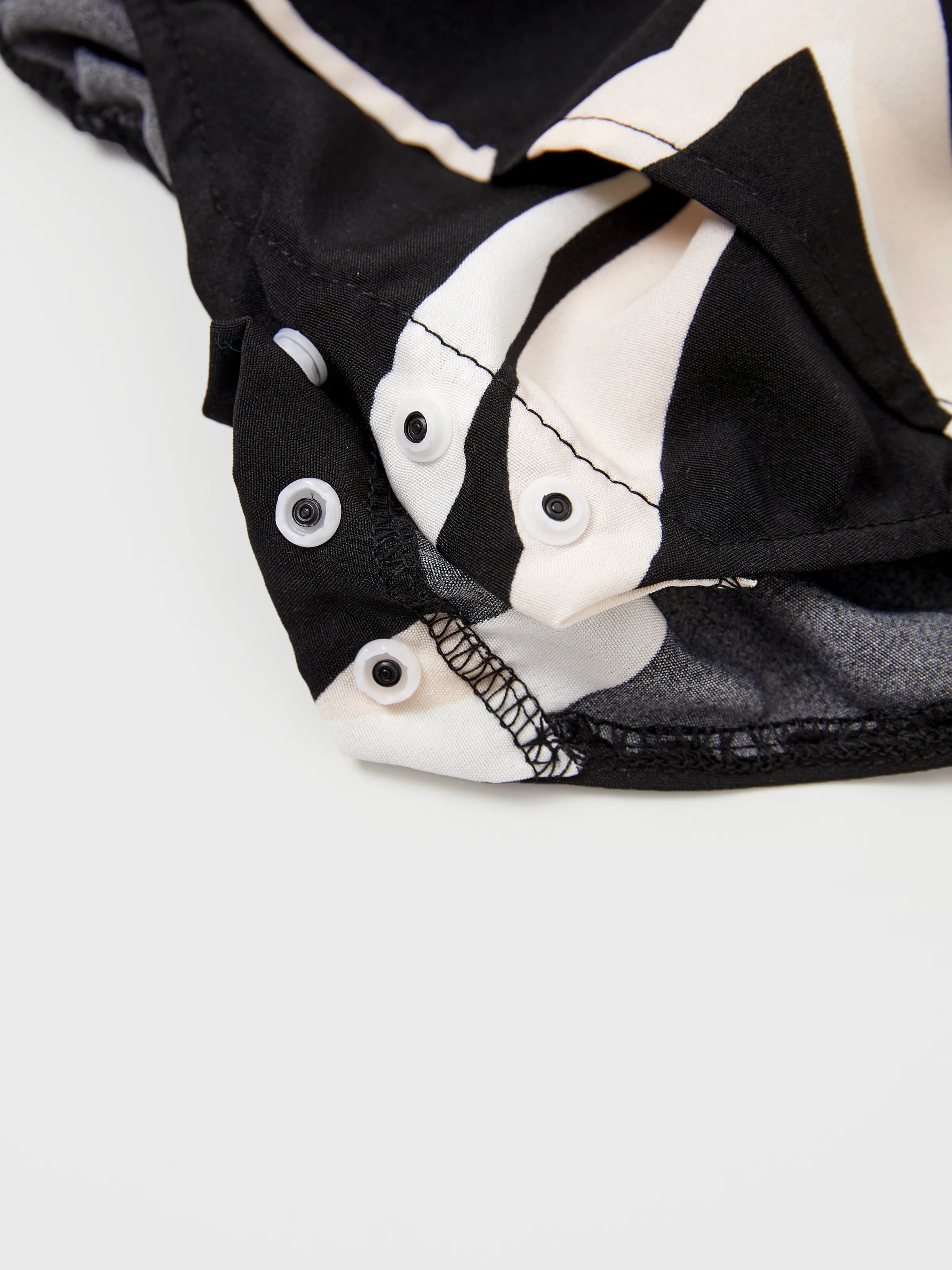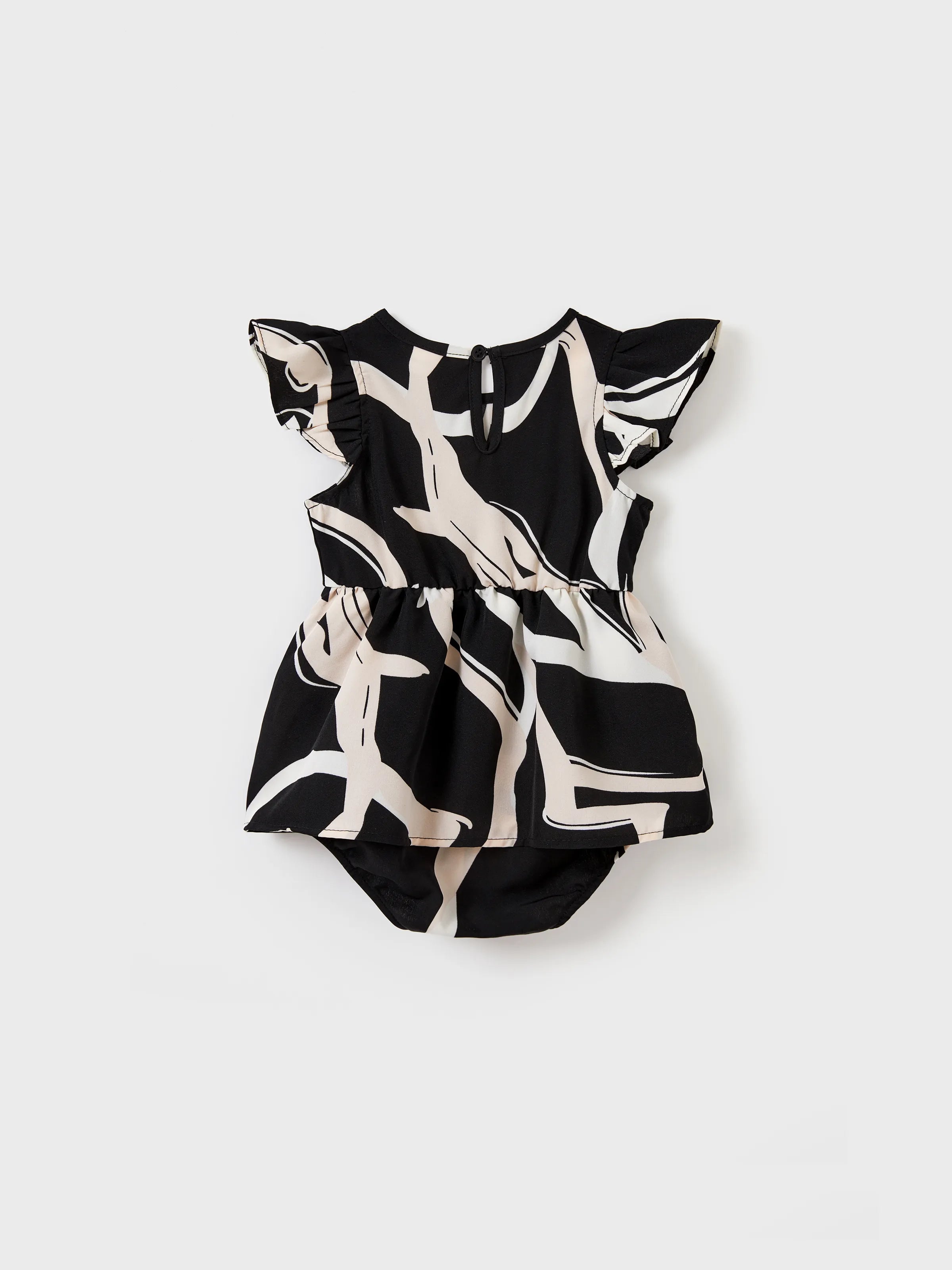 Familienpassendes Farbblock-Baumwoll-T-Shirt oder modernes Kurzarmkleid mit abstraktem Druck und Taillengürtel schwarz