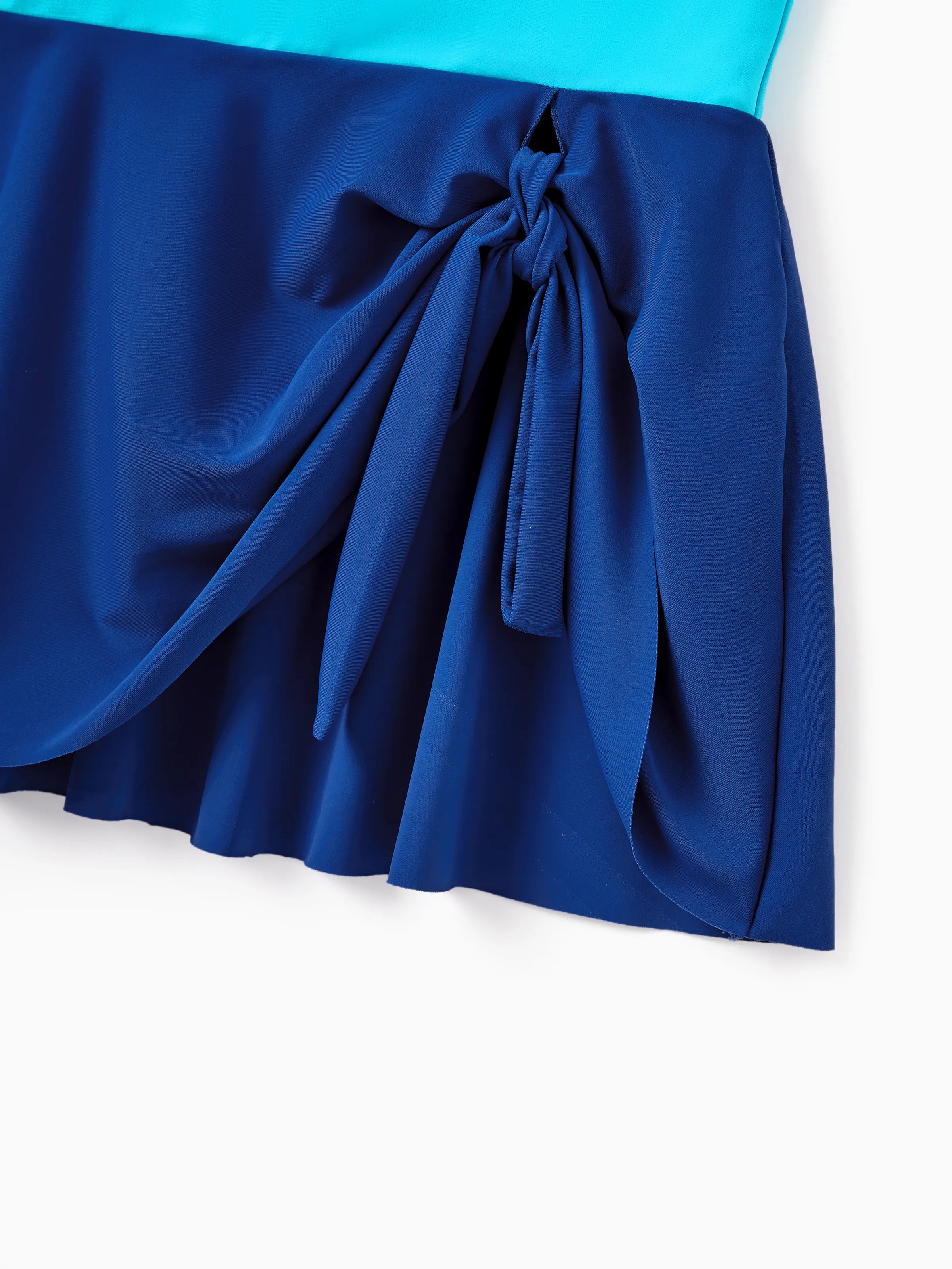 Stylish blue color-block swimwear for the whole family’s summer fun.