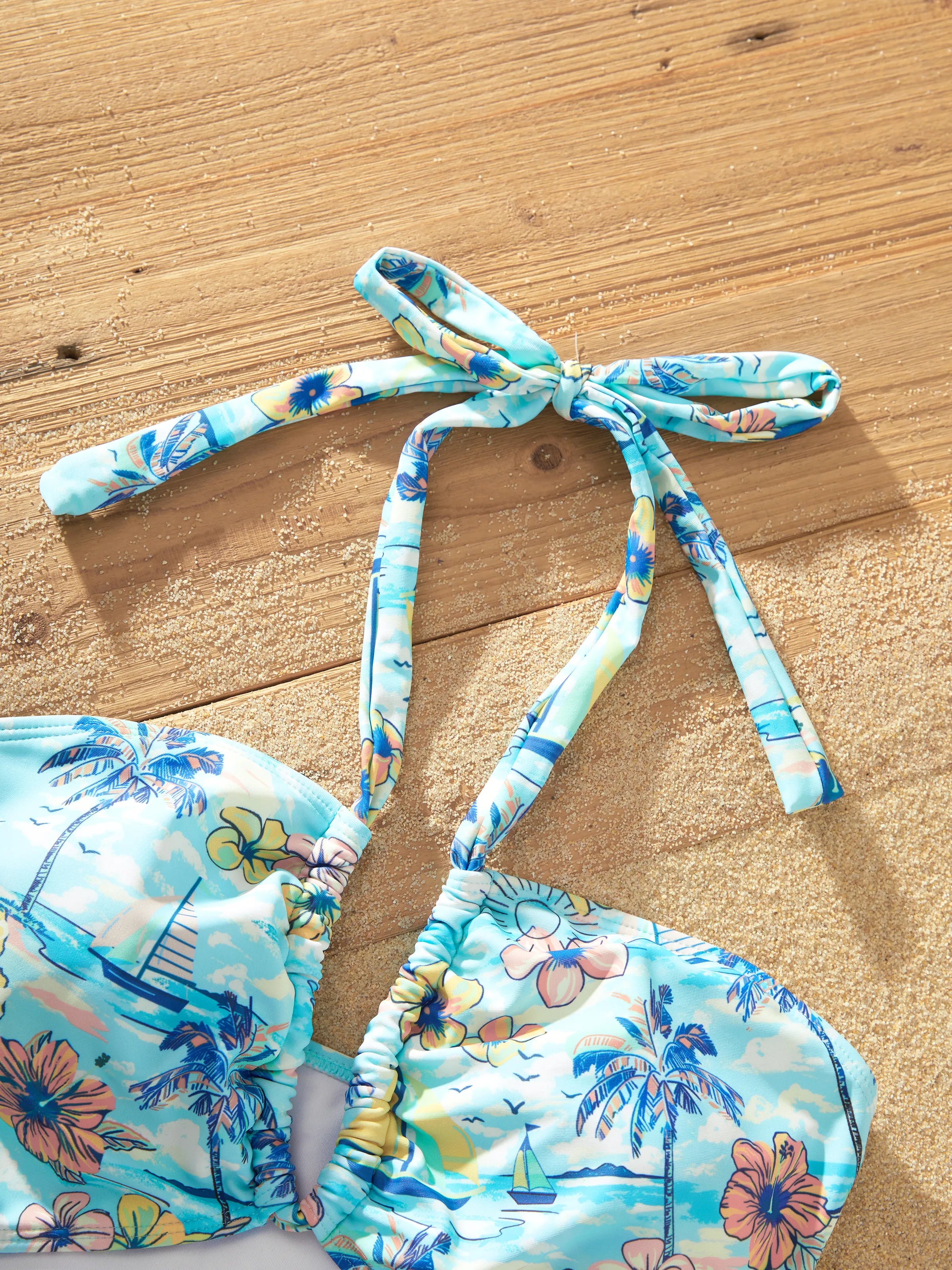 • Neckline: Halter or bandeau for mom; double-shoulder with adjustable buckle for girls