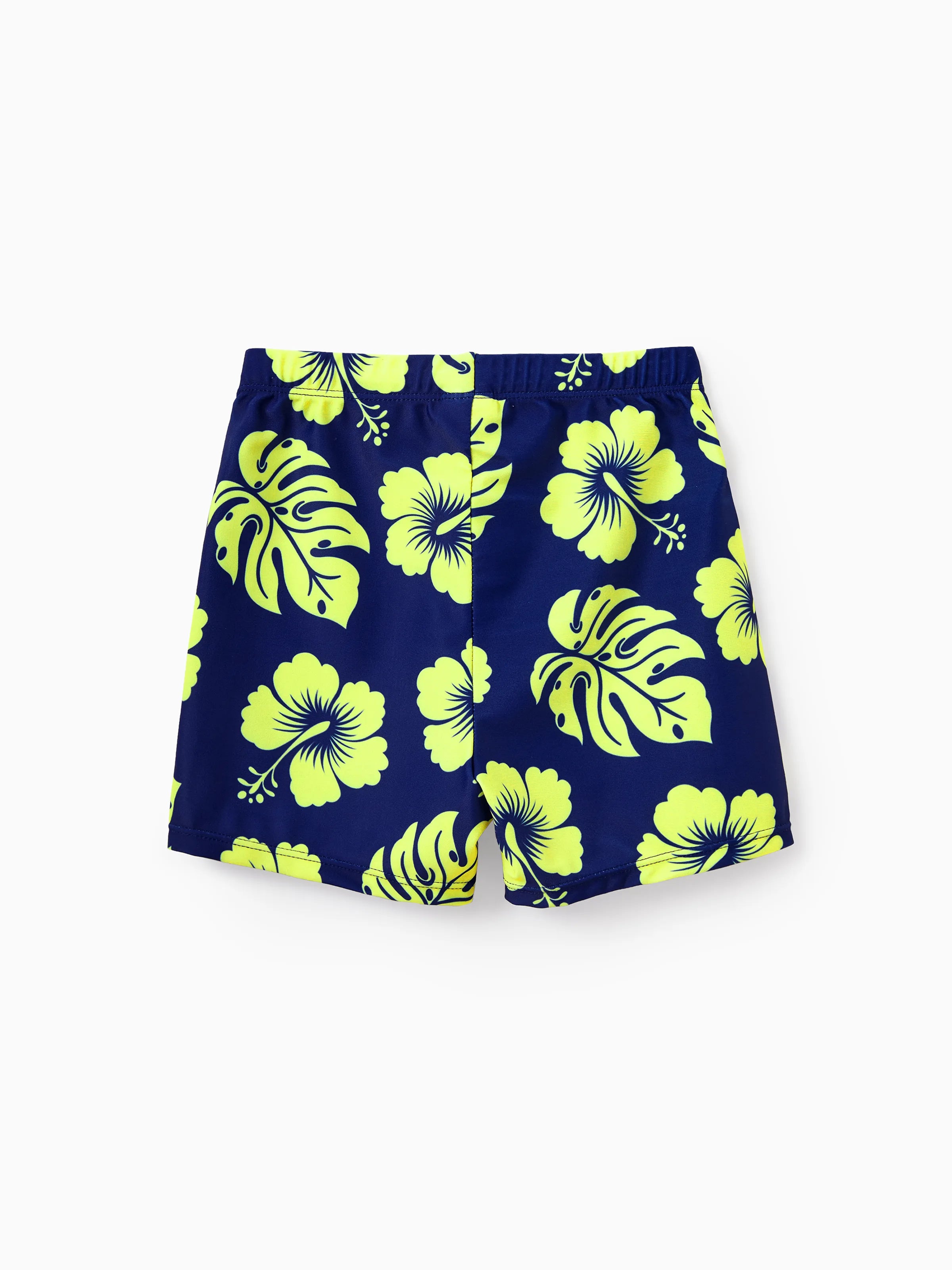 • Boys’ Swim Trunks: A mini version of dad’s trunks, with the same tropical print and a soft elastic waistband for active play.