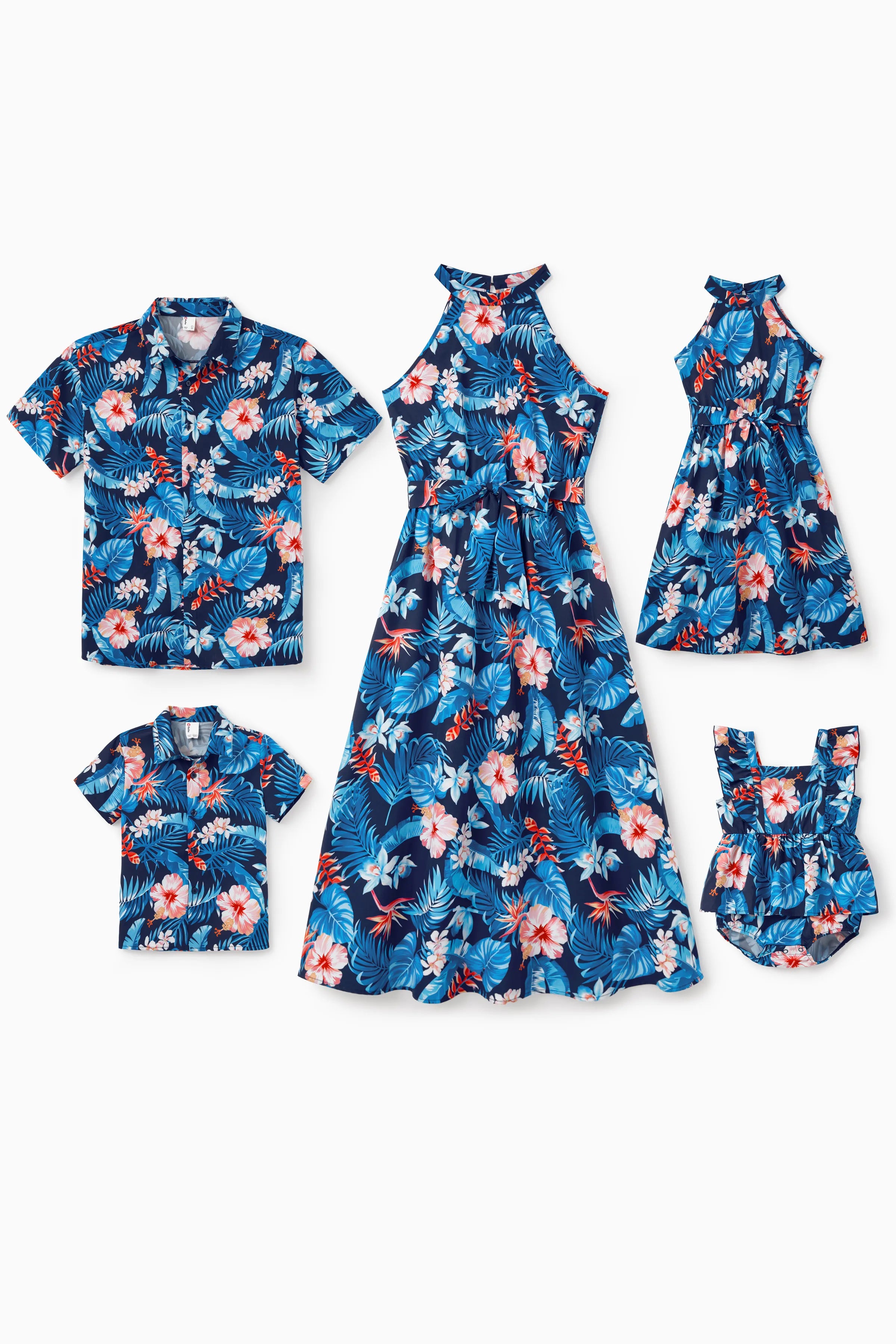 • Product features: Matching family outfits with tropical floral prints