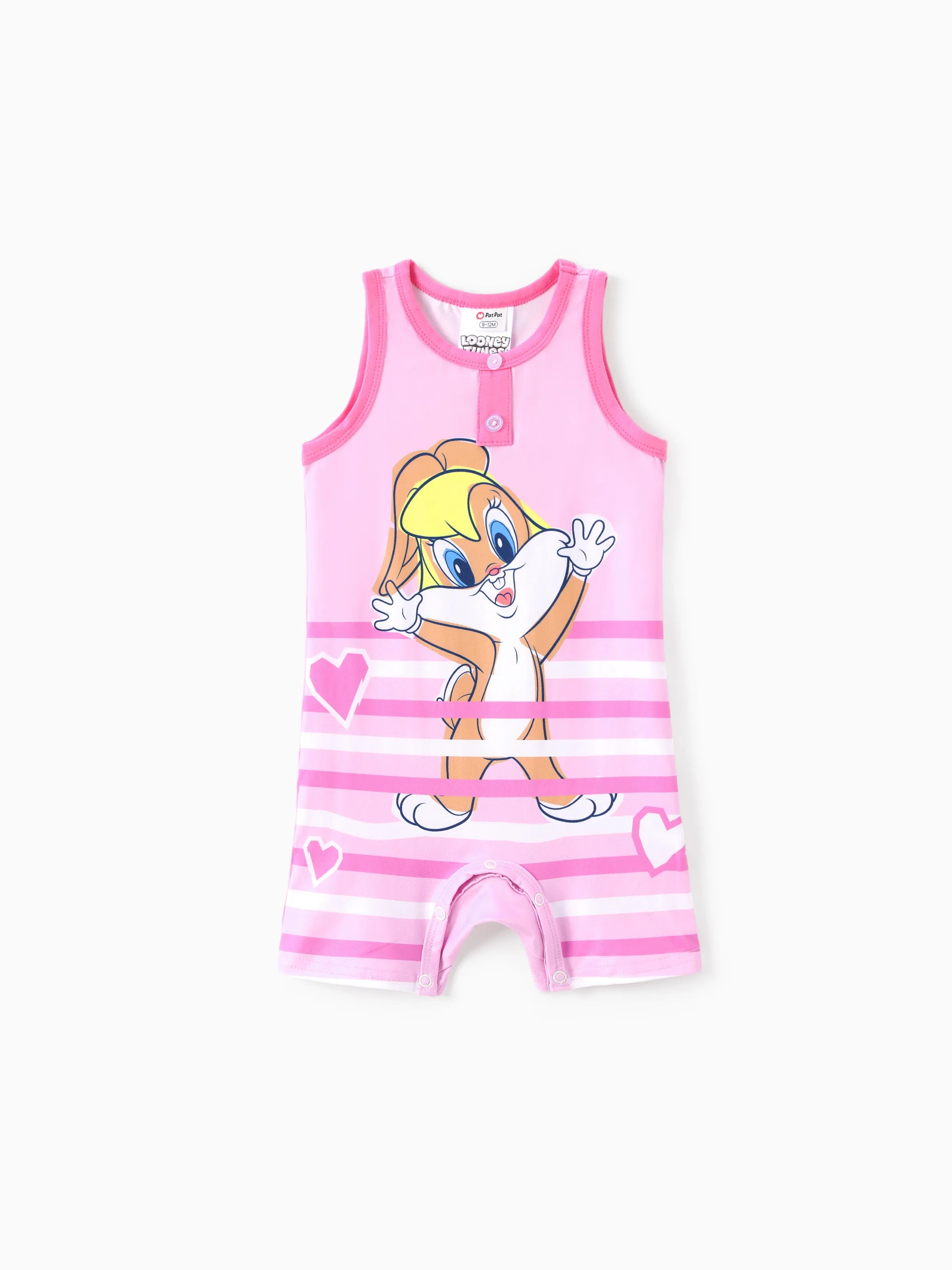Looney Tunes Baby Junge/Mädchen 1 Stück Charakter Gestreifter Print Ärmelloser Jumpsuit rosa