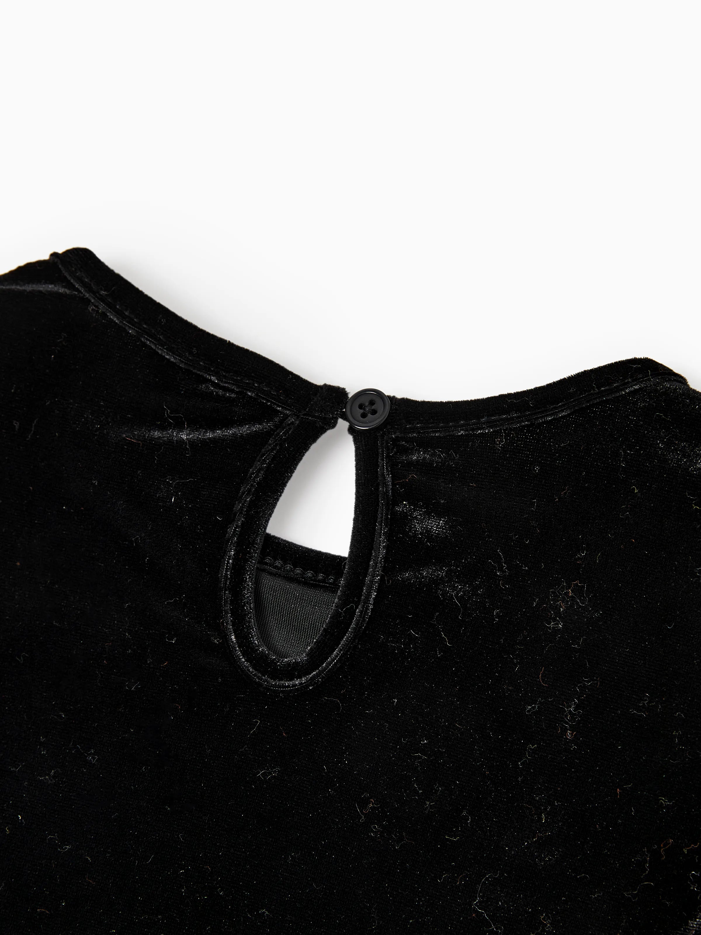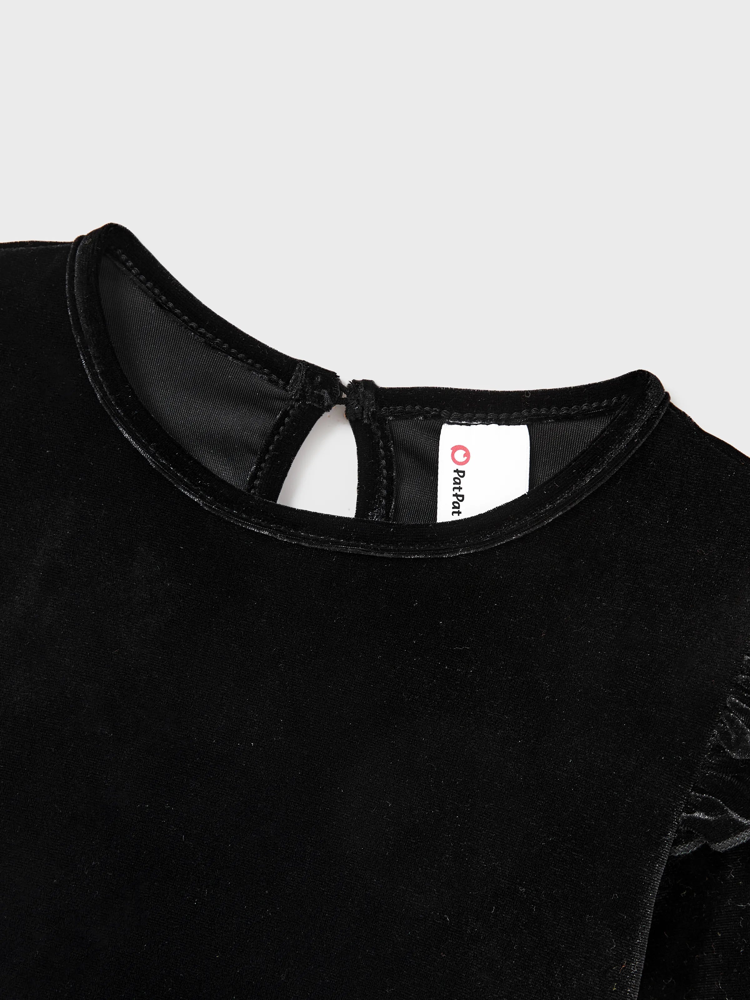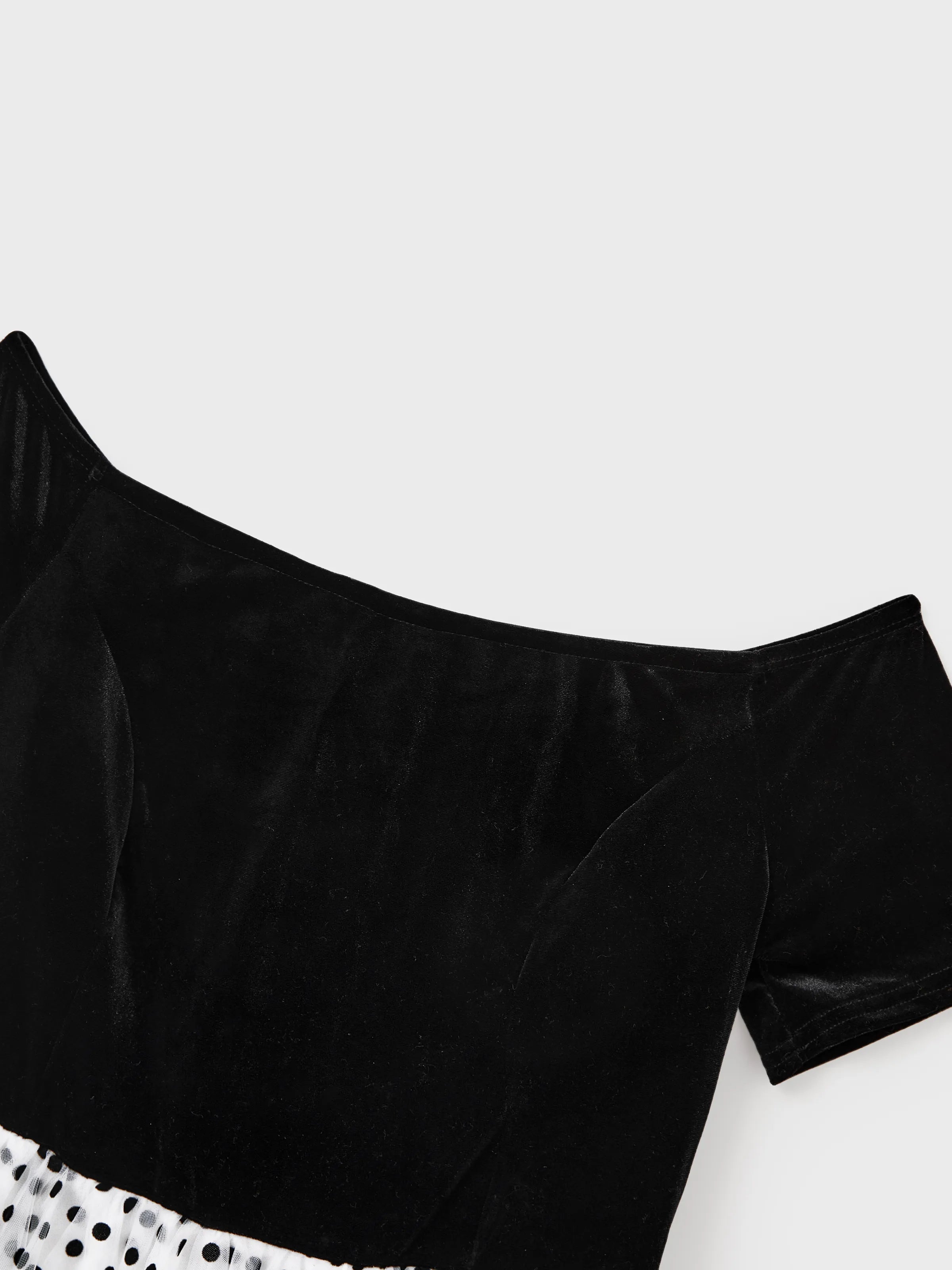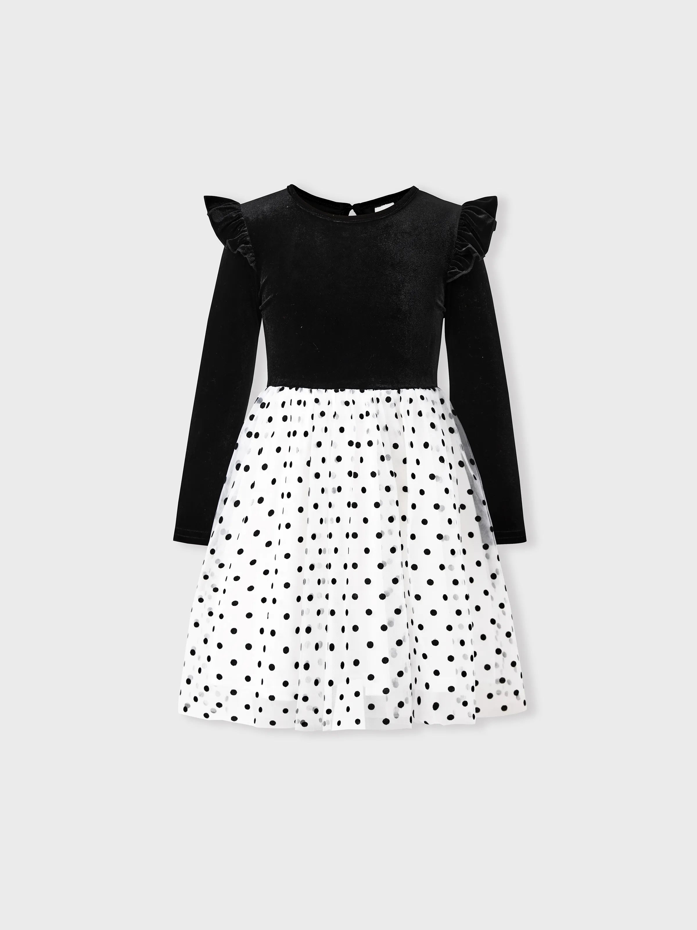 Mommy and Me Kleider - Schwarzes Samttop gespleißte Polka Dot Tüll Kleider Schwarz+Weiß