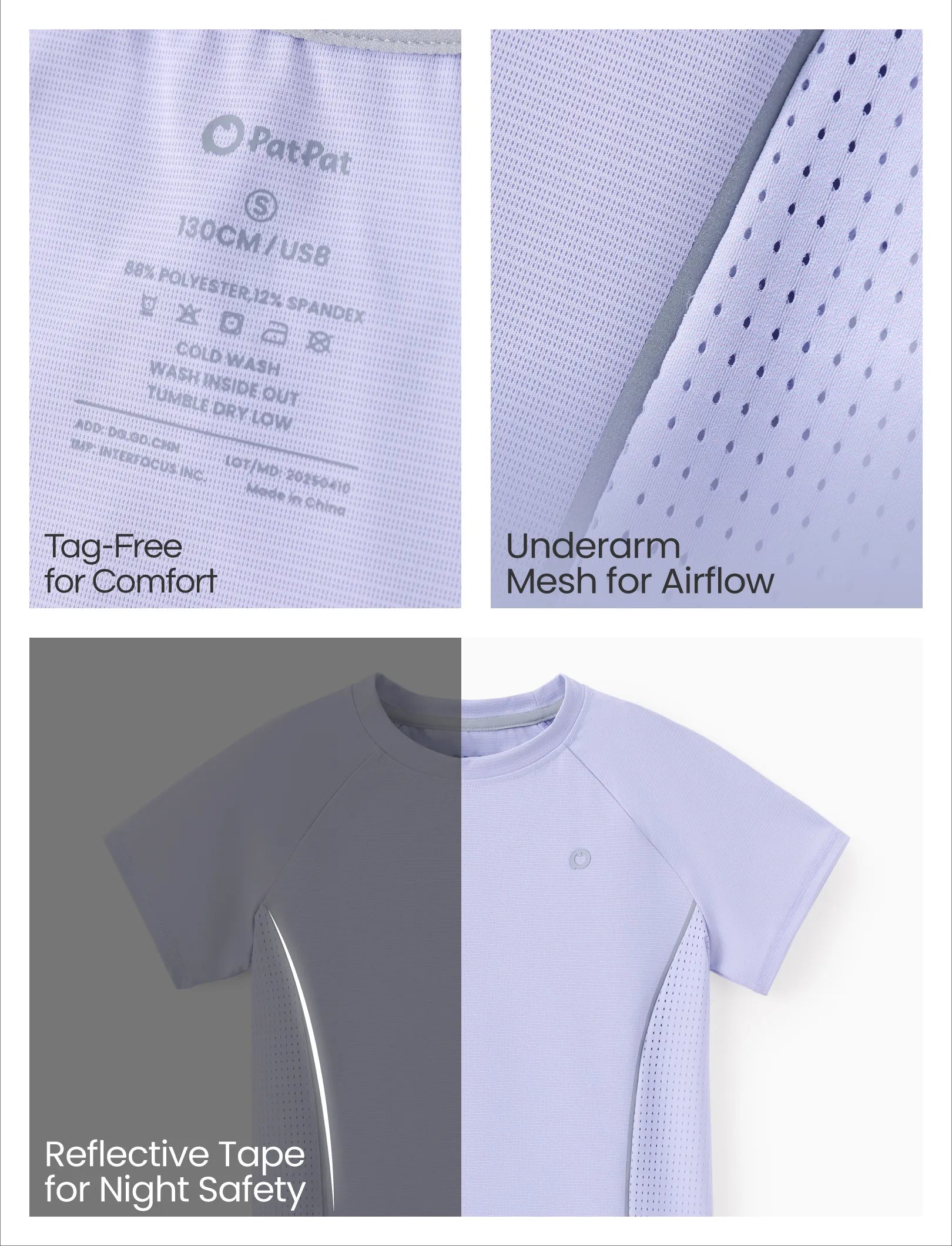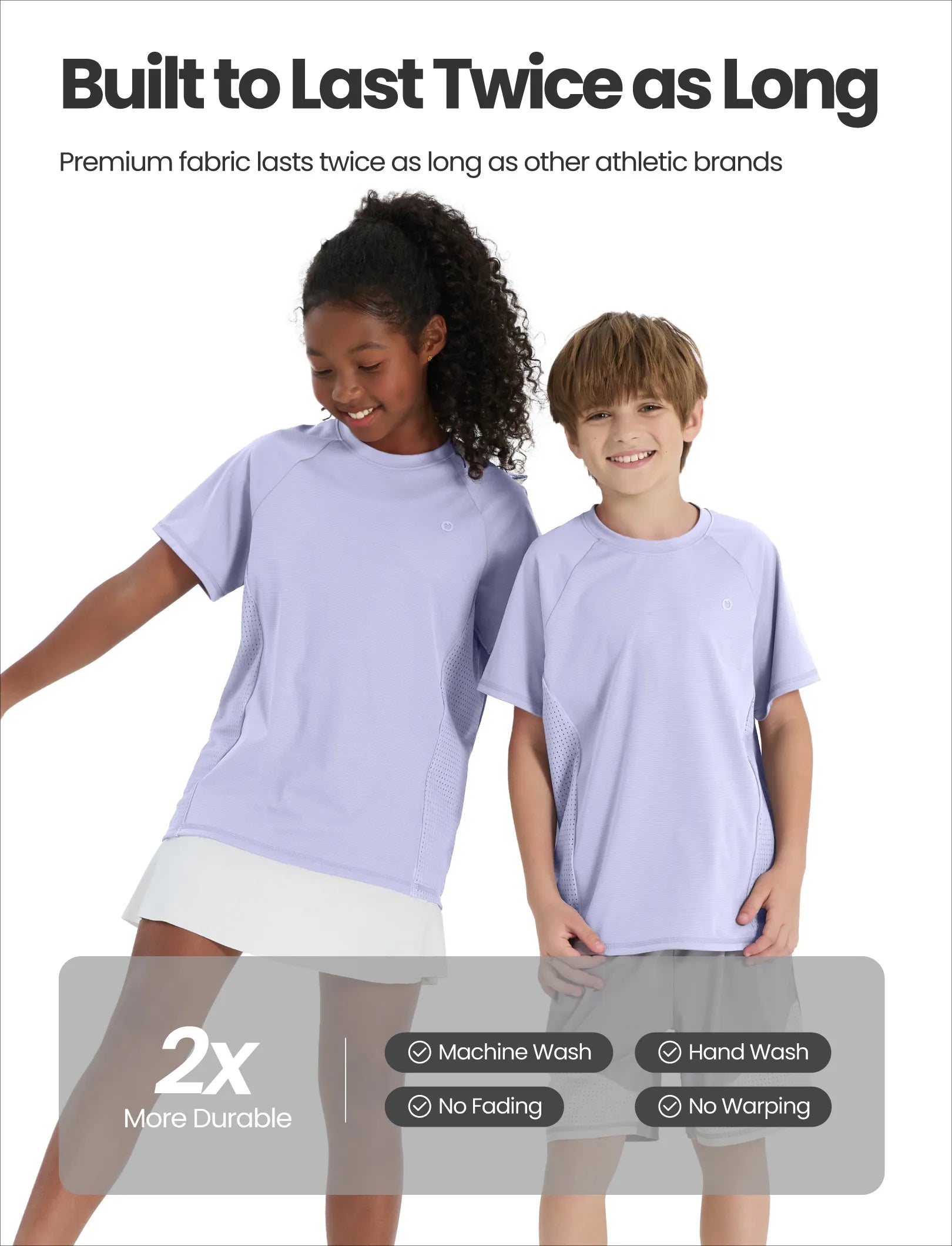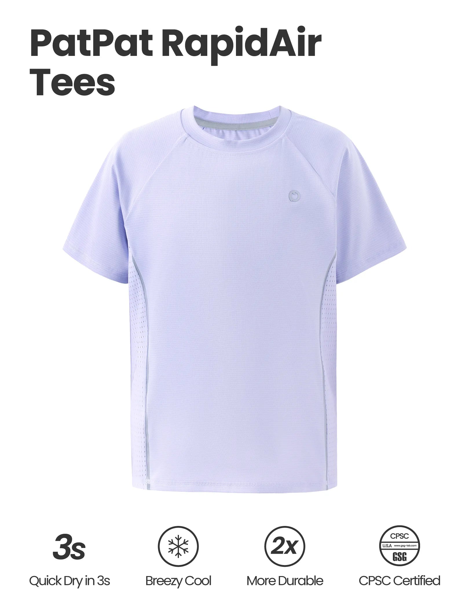 PatPat Rapidair™ Activewear Kinder Jungen/Mädchen Athletic Schnelltrocknendes und sofort kühlendes UPF 100+ Rash Guard T-Shirt helles lila