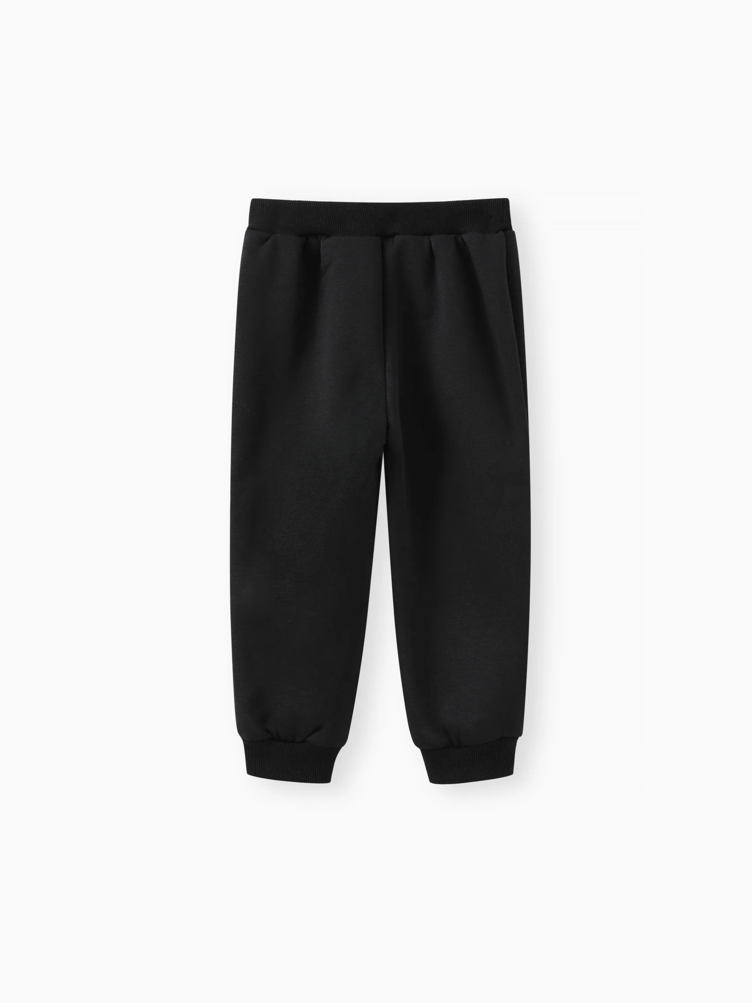 Einfarbige, mit Fleece gefütterte, elastische Hose für Kleinkinder schwarz