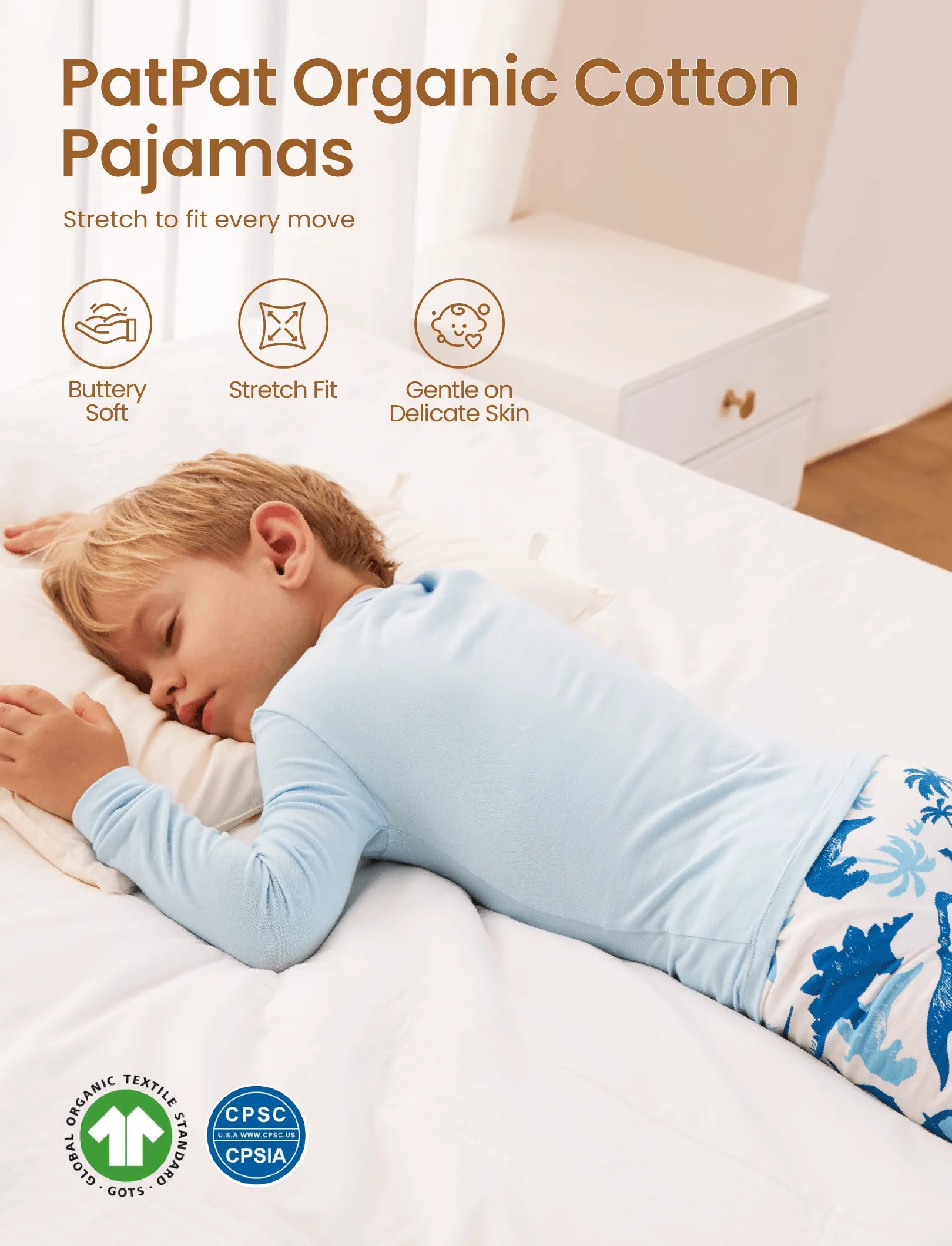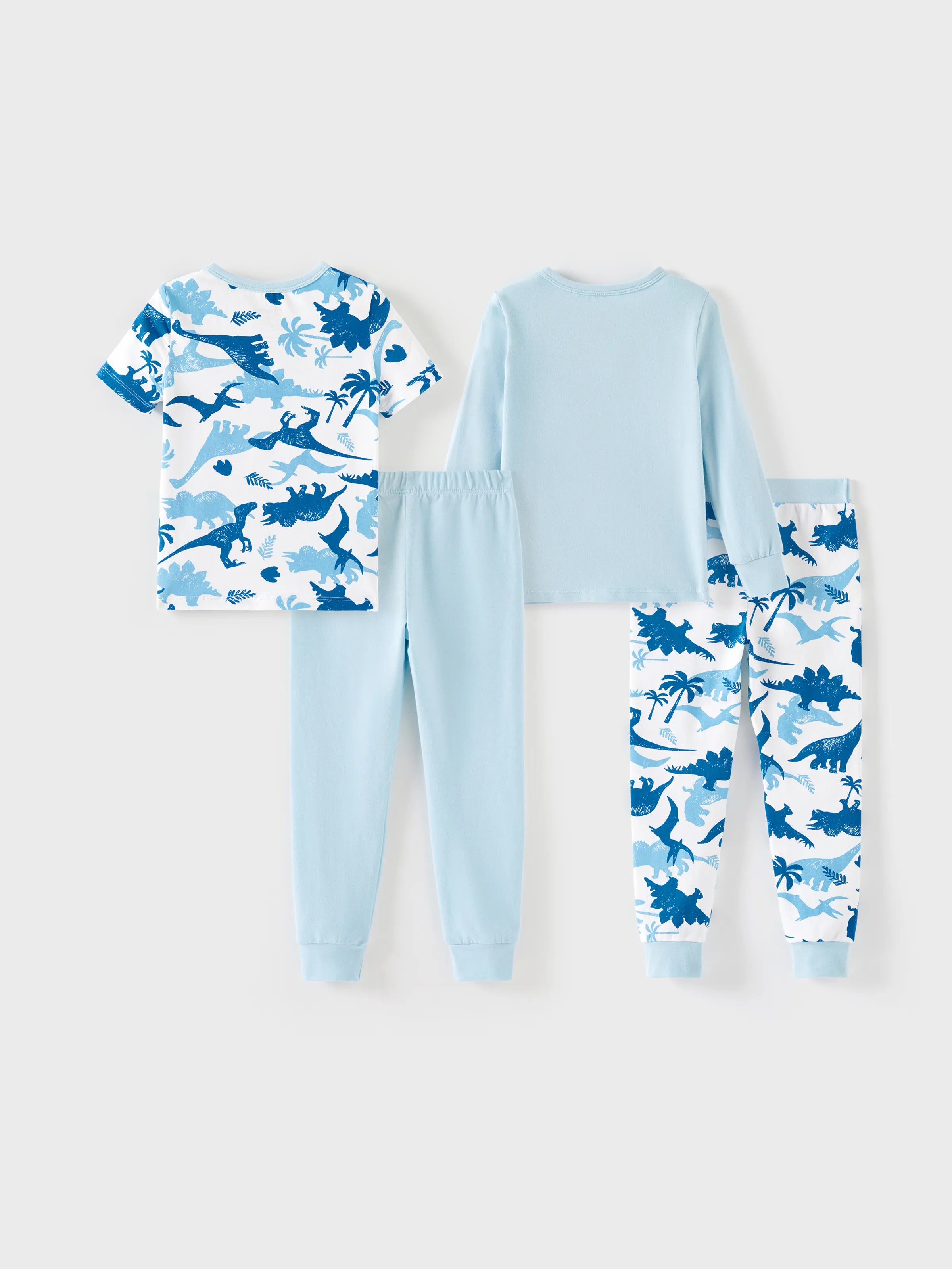 Kleinkind / Kinder 4-teiliger Pyjama aus Bio-Baumwolle 4-in-1 PJ Snug Fit Pjs für Mädchen / Jungen hellblau