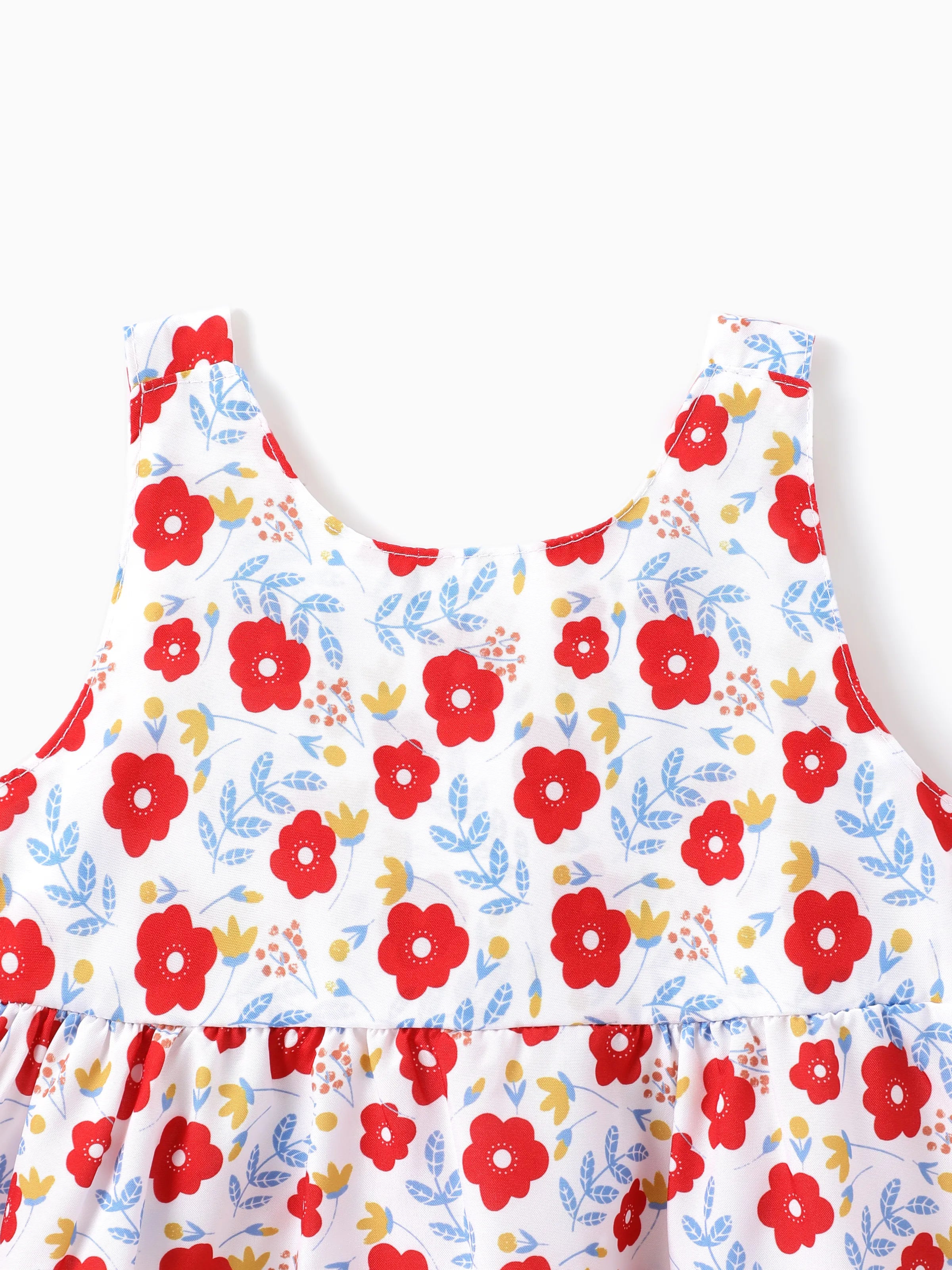 Conjunto de 2 piezas de vestido con lazo de margaritas para niña pequeña, color rojo