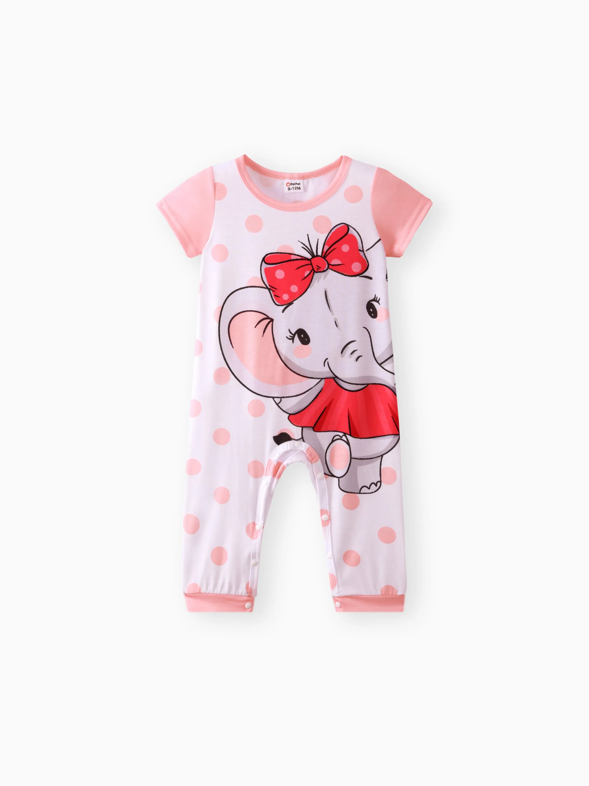 Mono de manga corta con estampado de elefante de dibujos animados para niña, color rosa