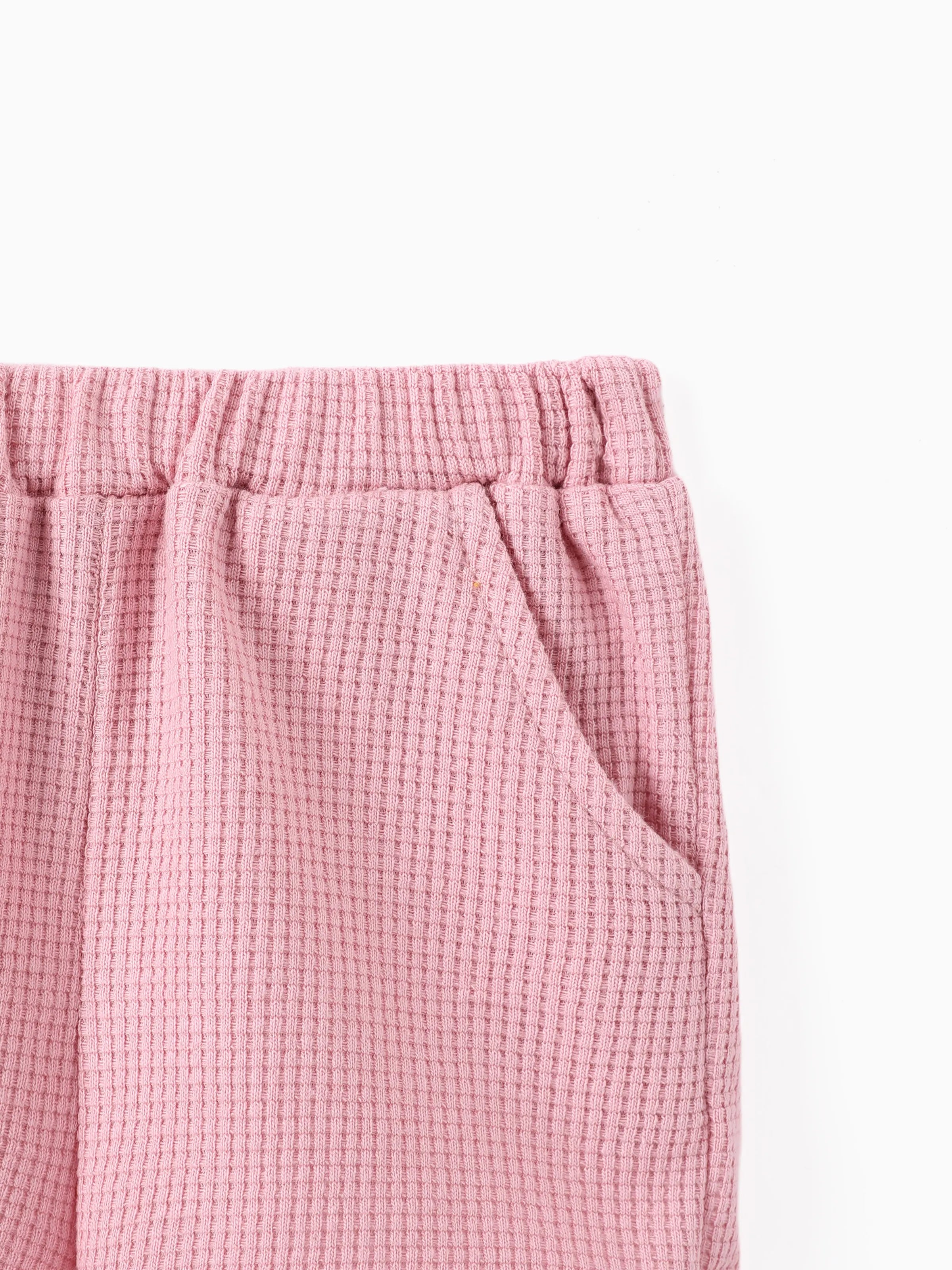 Conjunto de 2 piezas de camiseta y pantalones cortos con bordado de oso para bebé/niña pequeña, color rosa