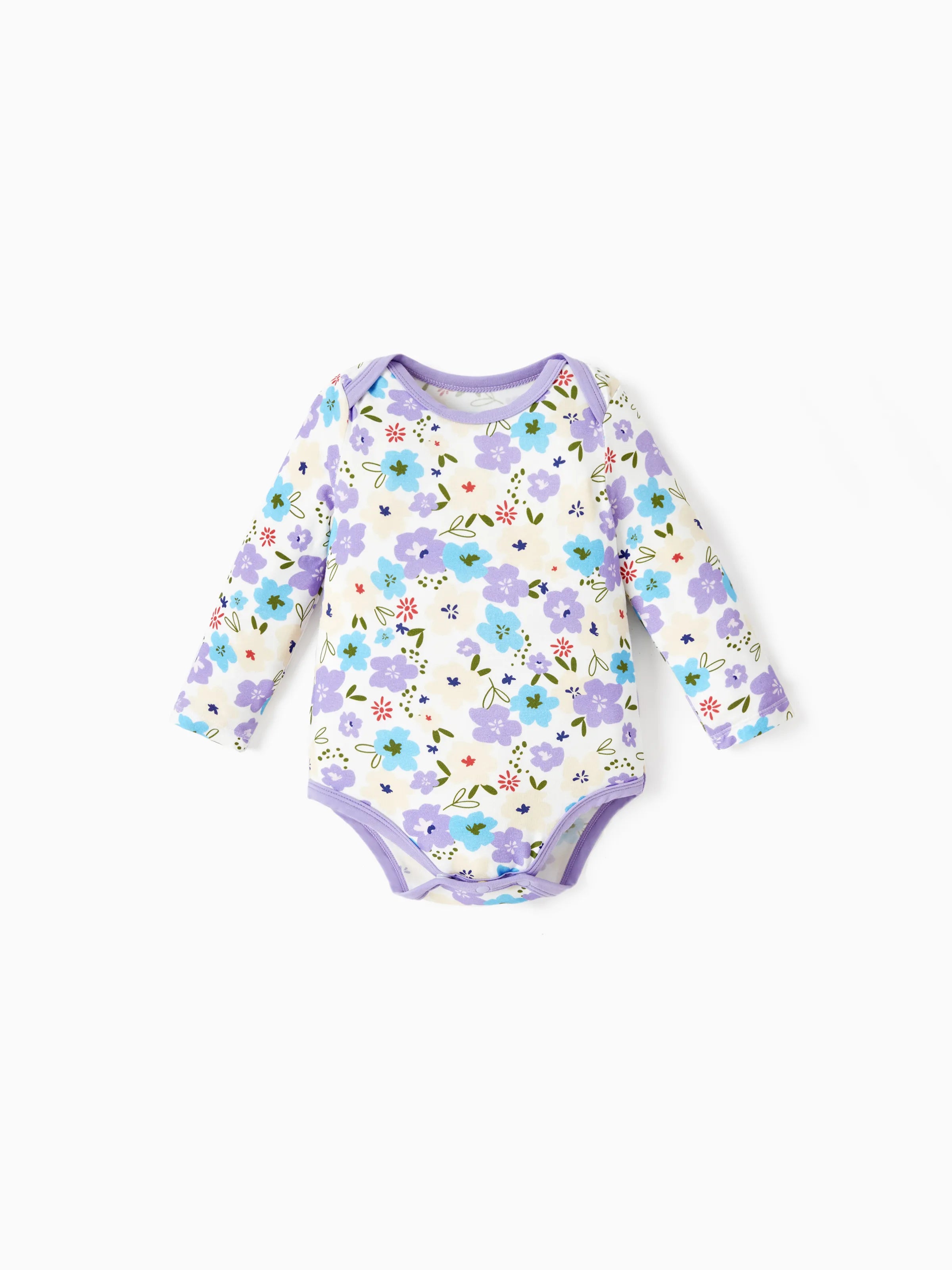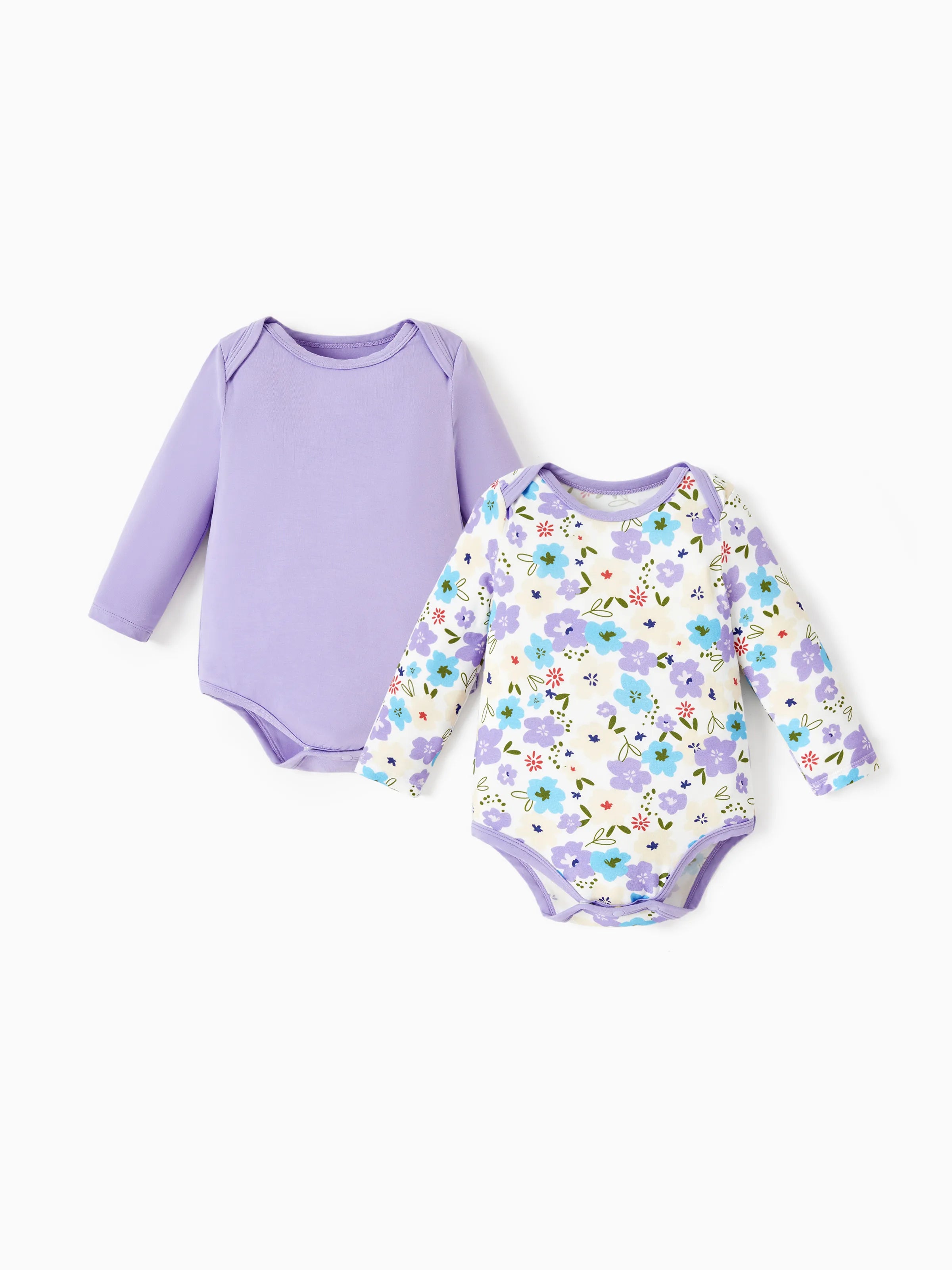 Bamboo Baby Bodysuits 2-piece Flora Long Sleeve Rompers for Baby Girls Infant Purple