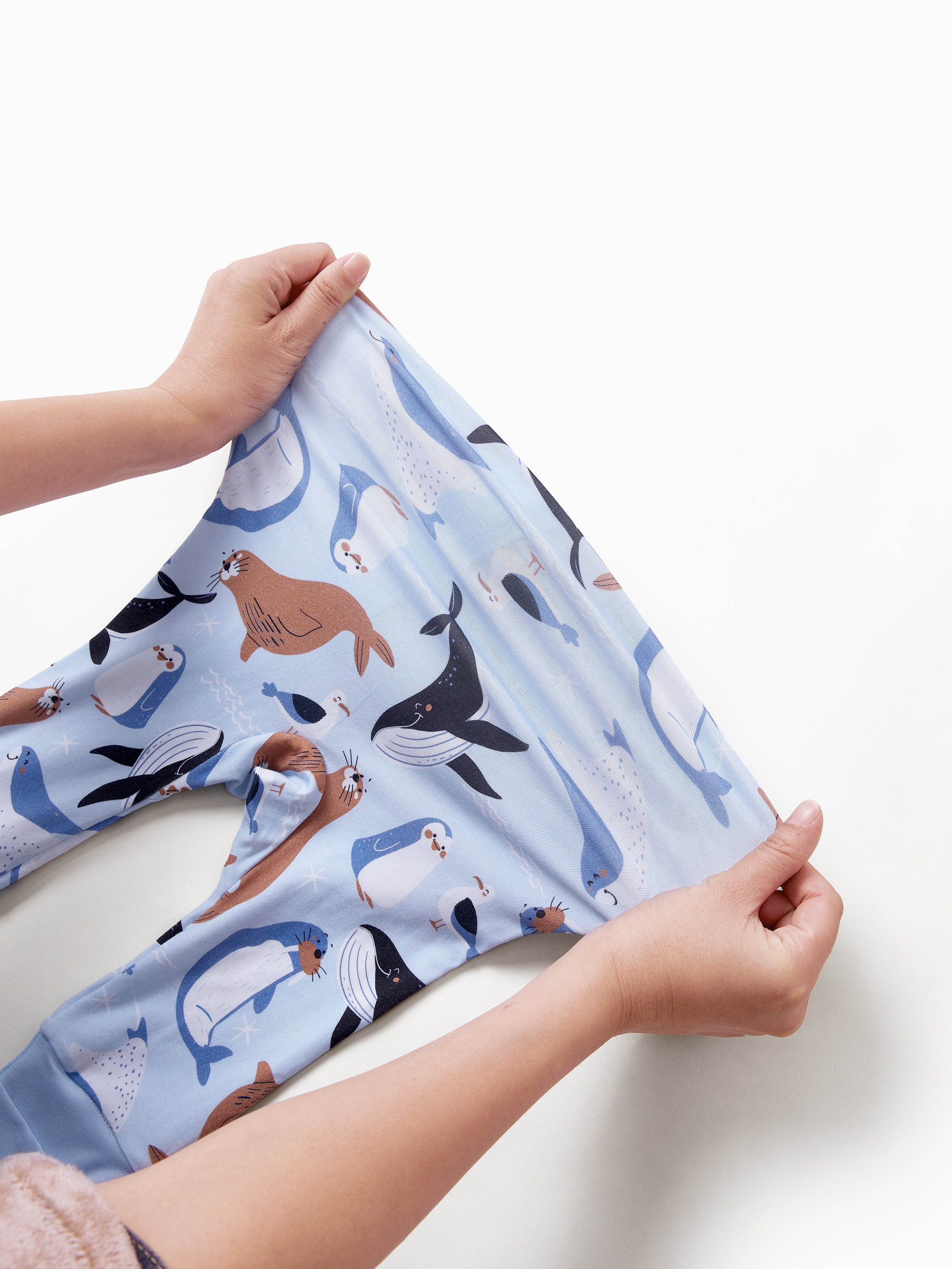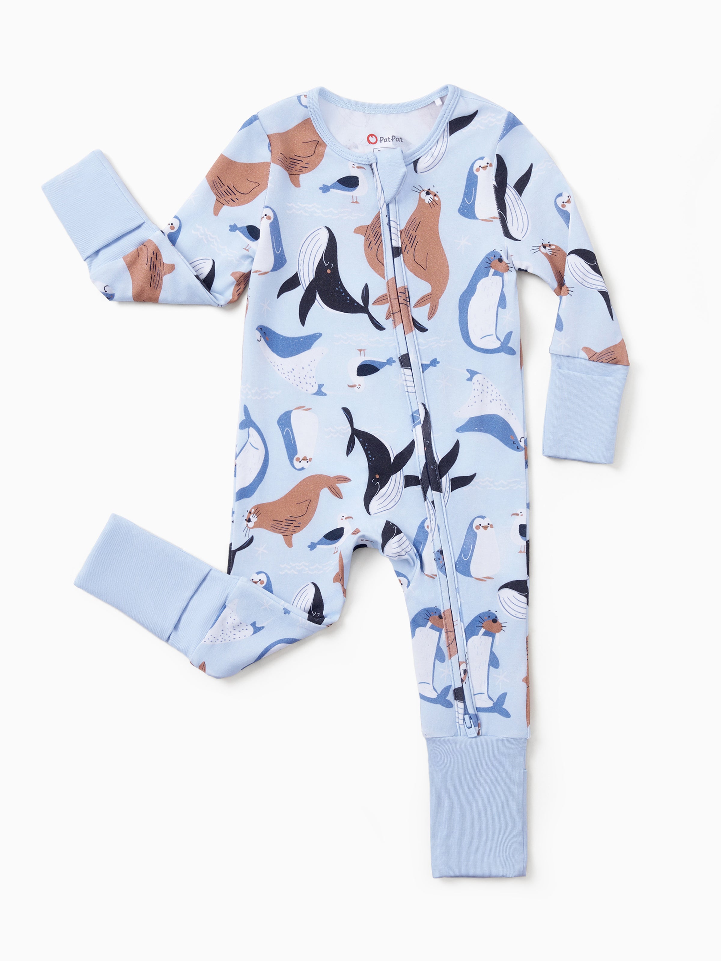 Bamboo Baby Boy/Girl Animal Printed 2-Way Zip Onesies Anti Slip Long-sleeve Footie with Hairband Royal Blue