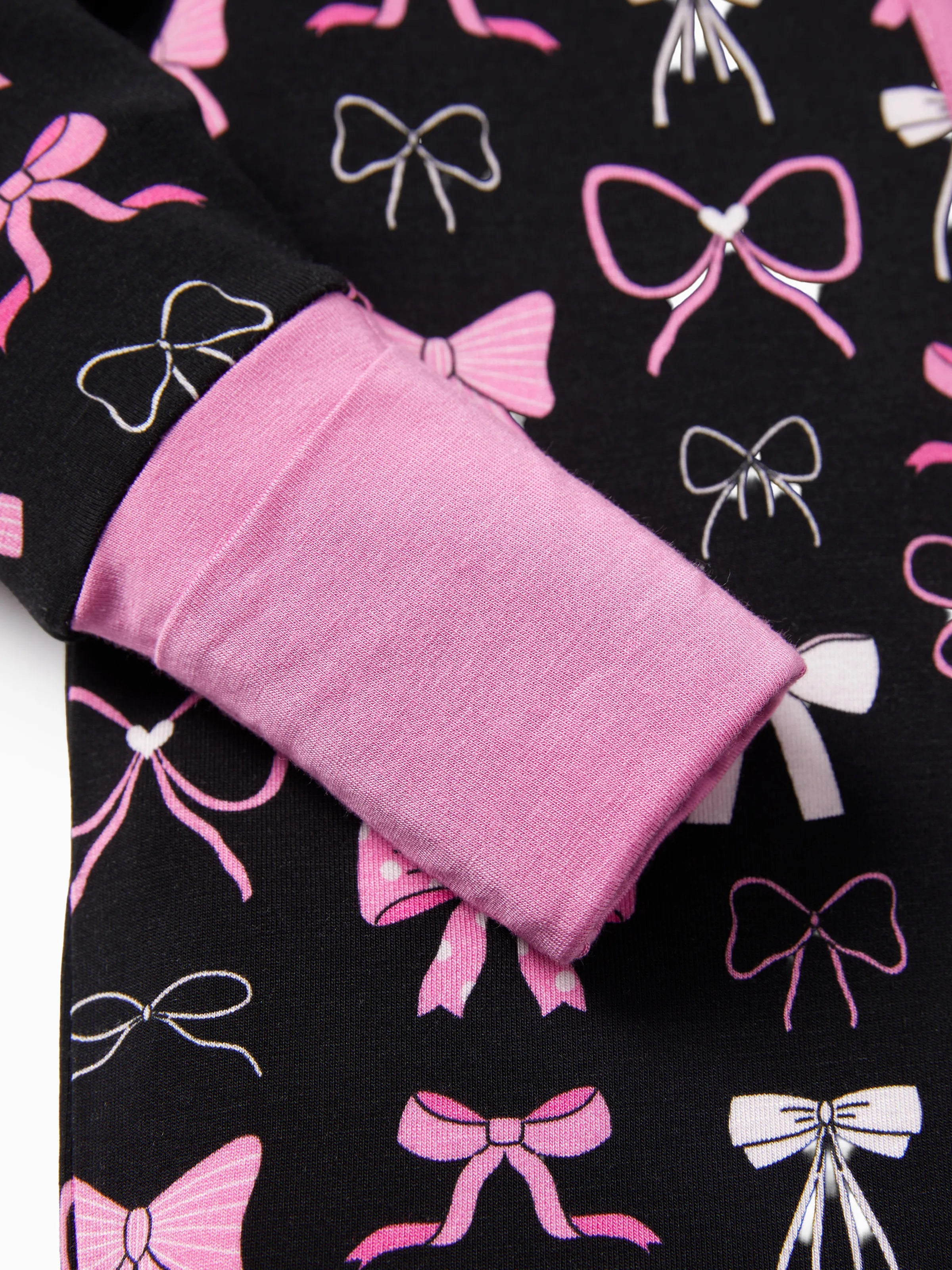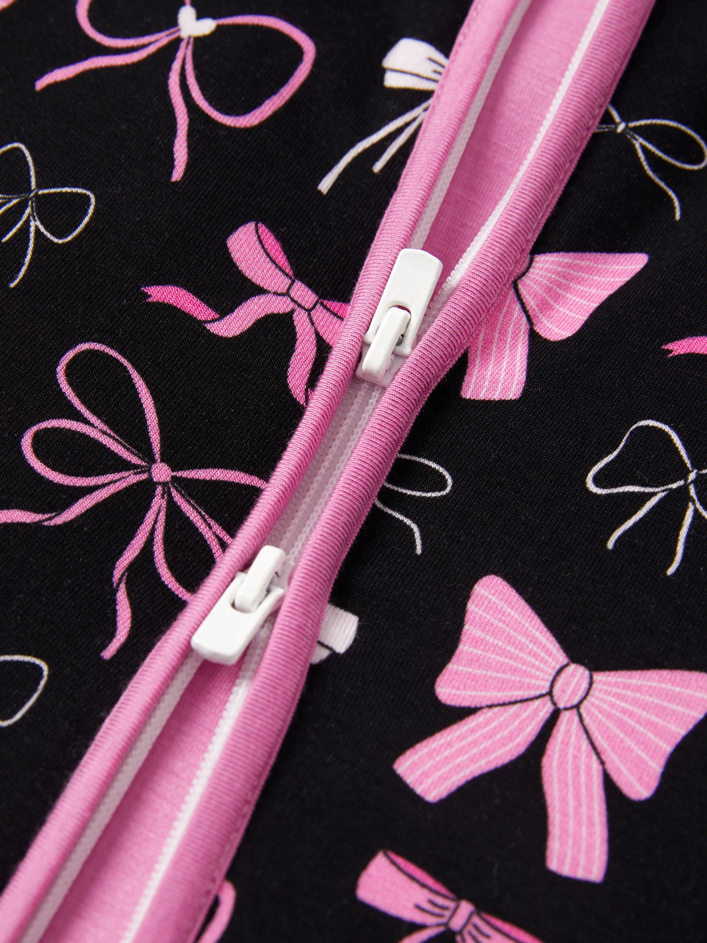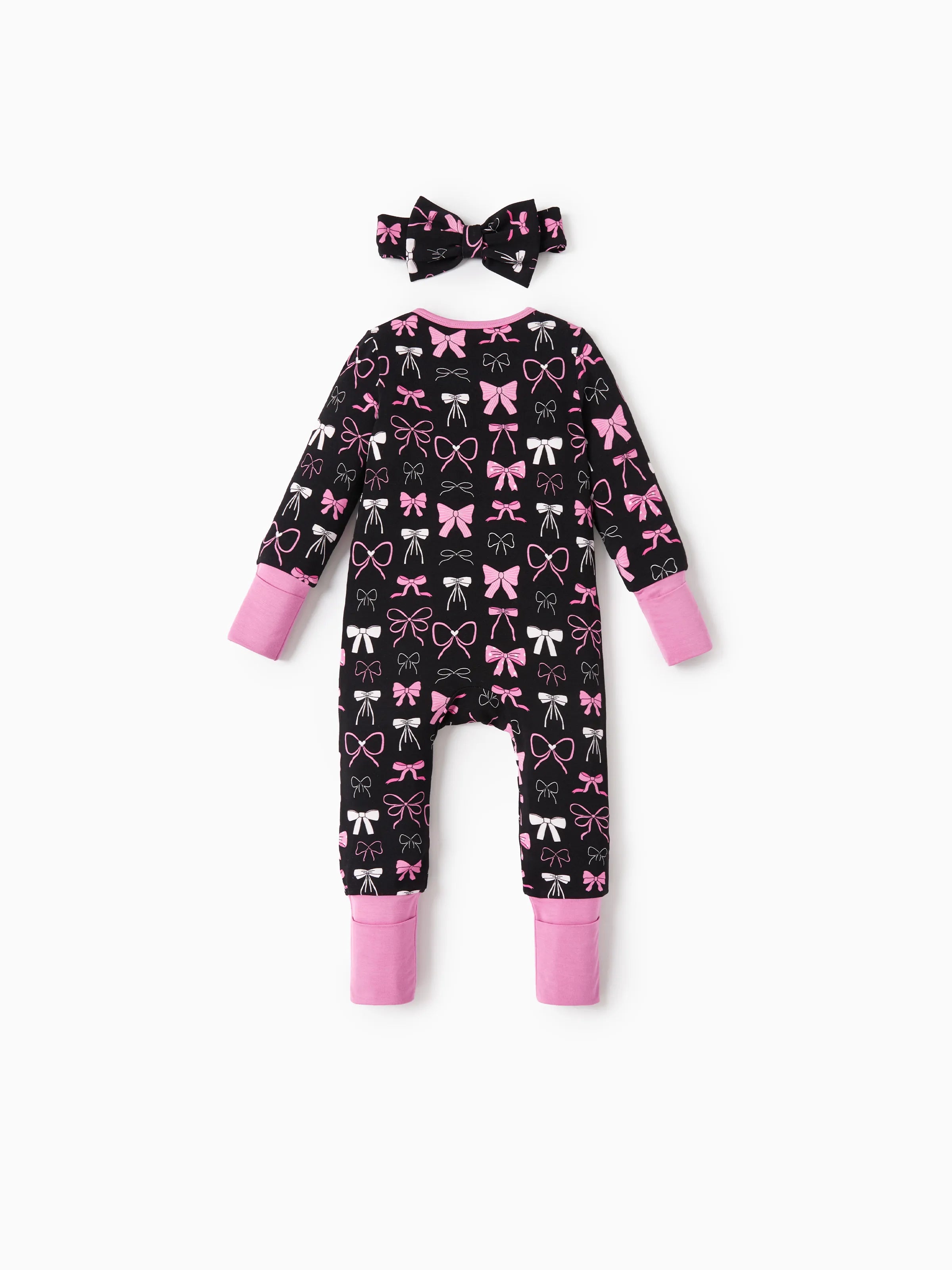 Bamboo Baby Girl Elegant Printed 2-Way Zip Onesies Anti Slip Long-sleeve Footie with Hairband Pink purple