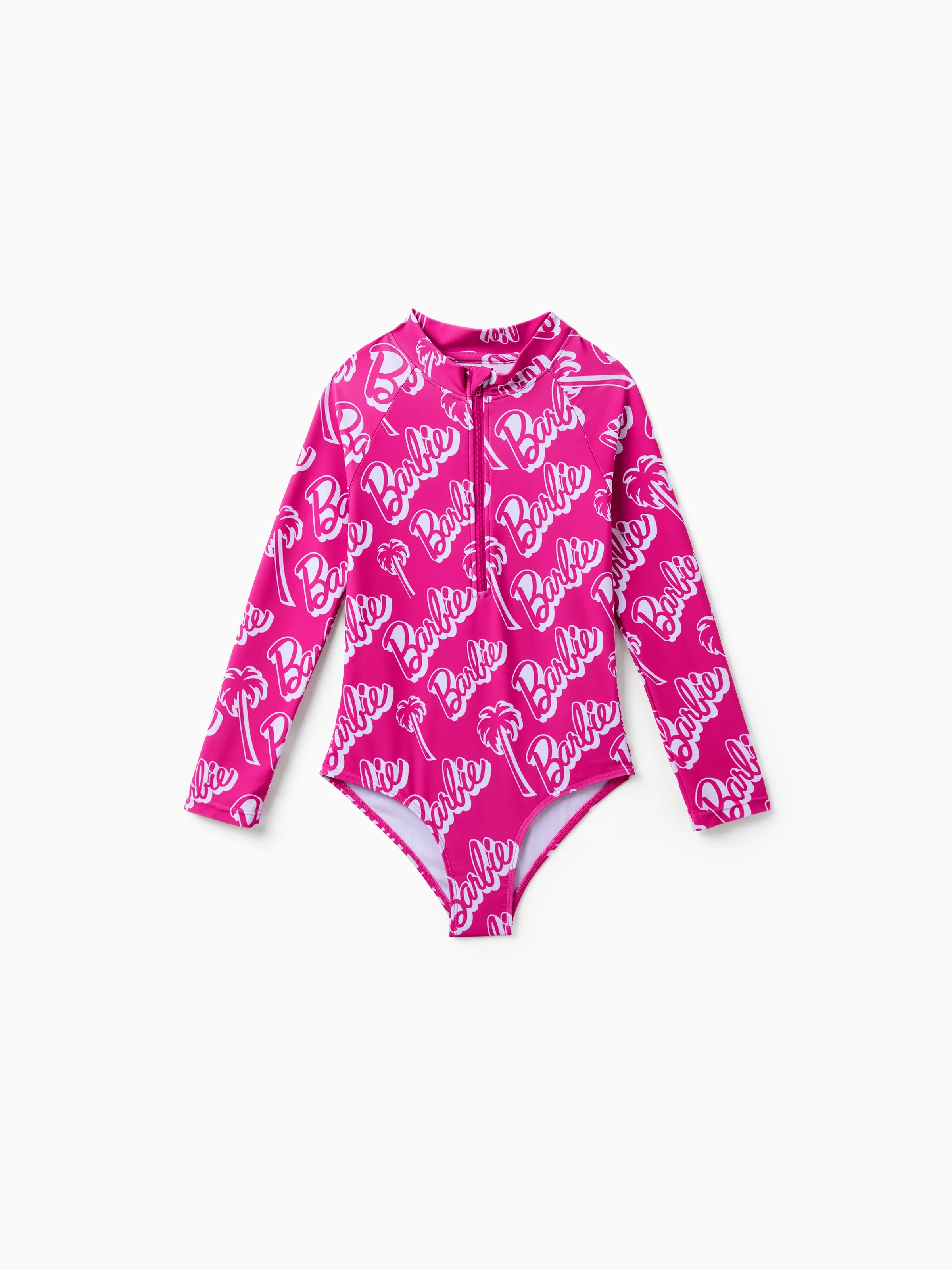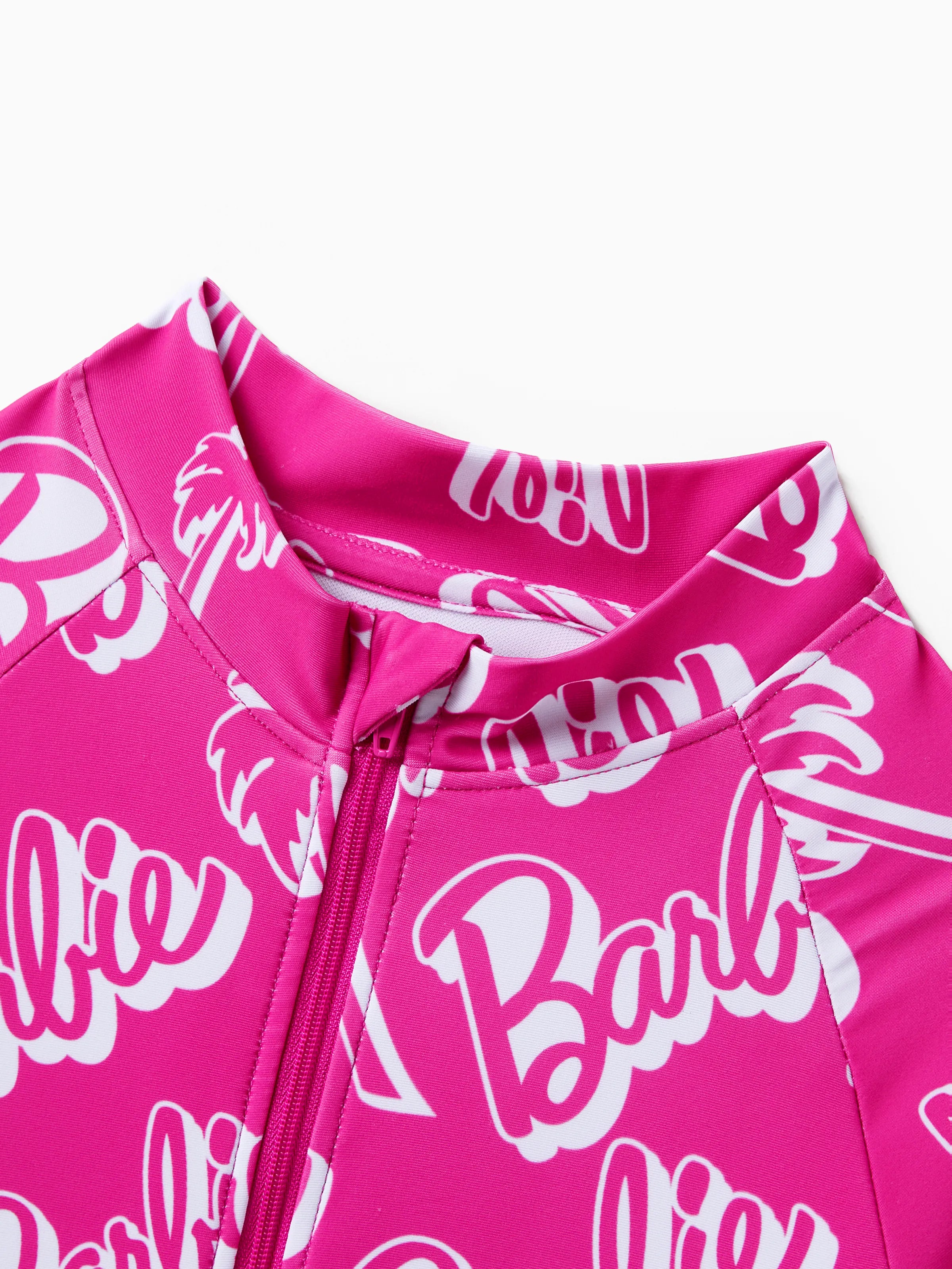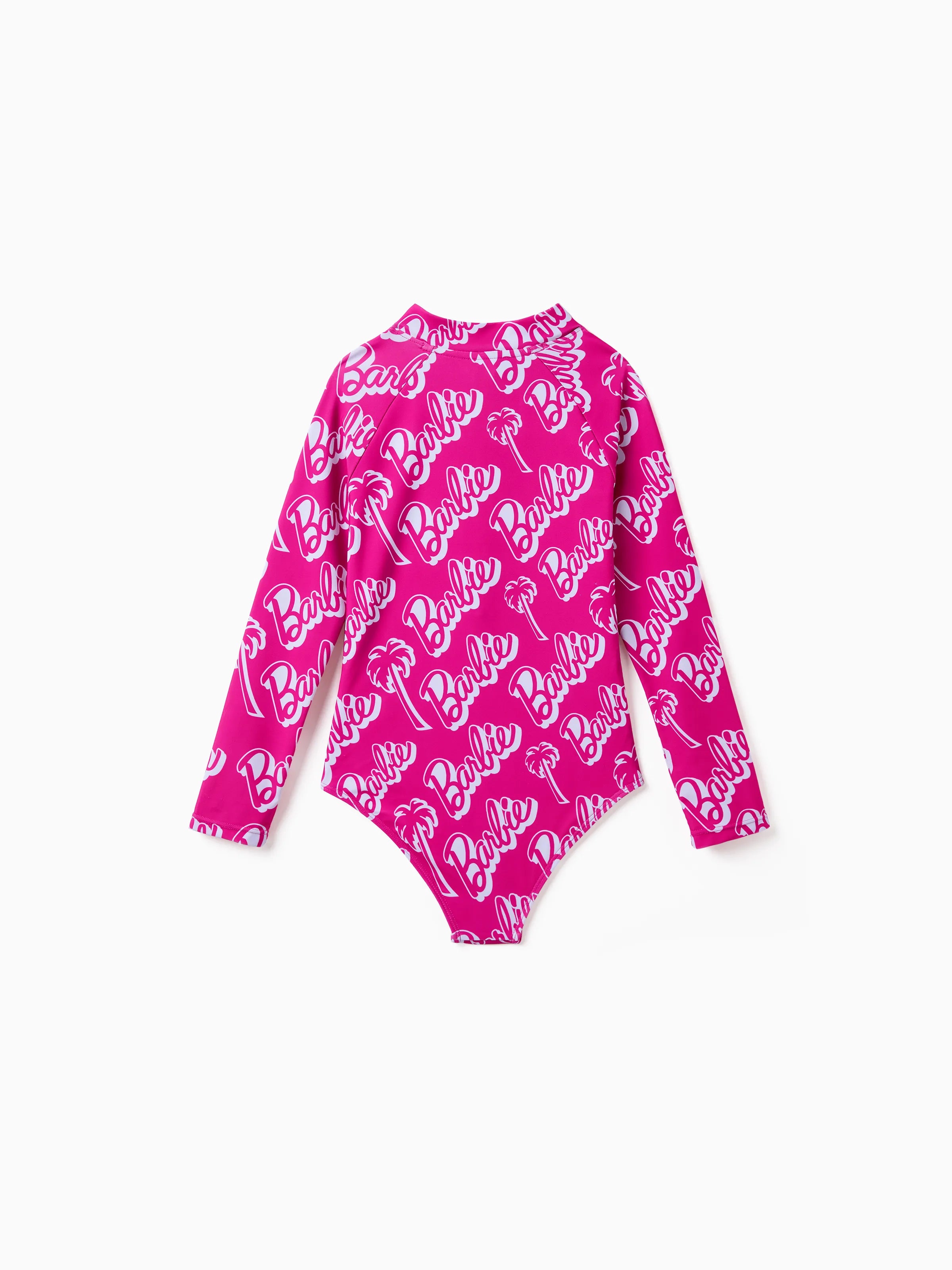 Barbie Toddler/Kid Girl 1pc Zip-up Front All-over Print Swimsuit Hot Pink