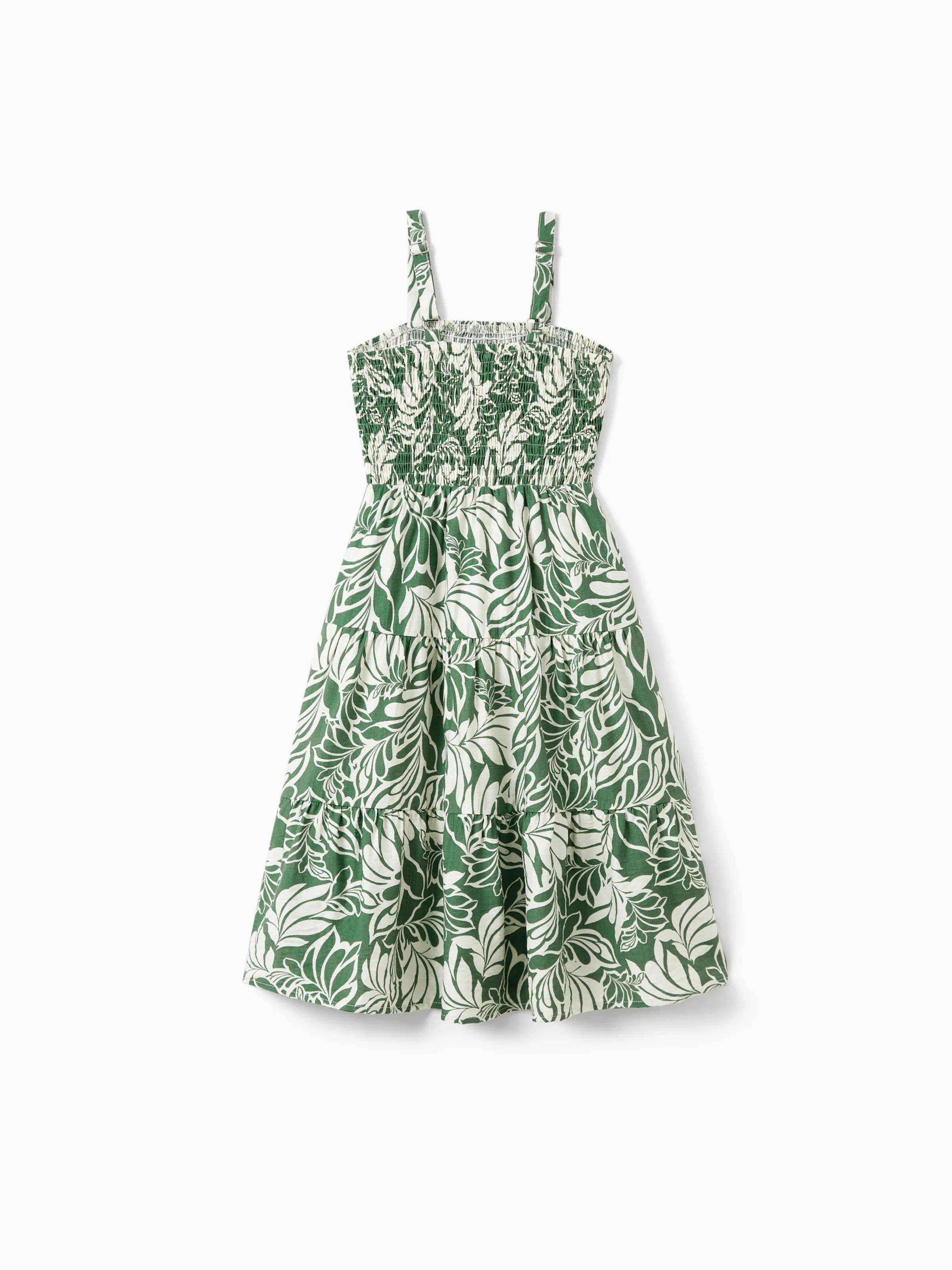 Daddy & Daughter Leaf Print Short-sleeve Shirt or Halter Dress Green Set Green