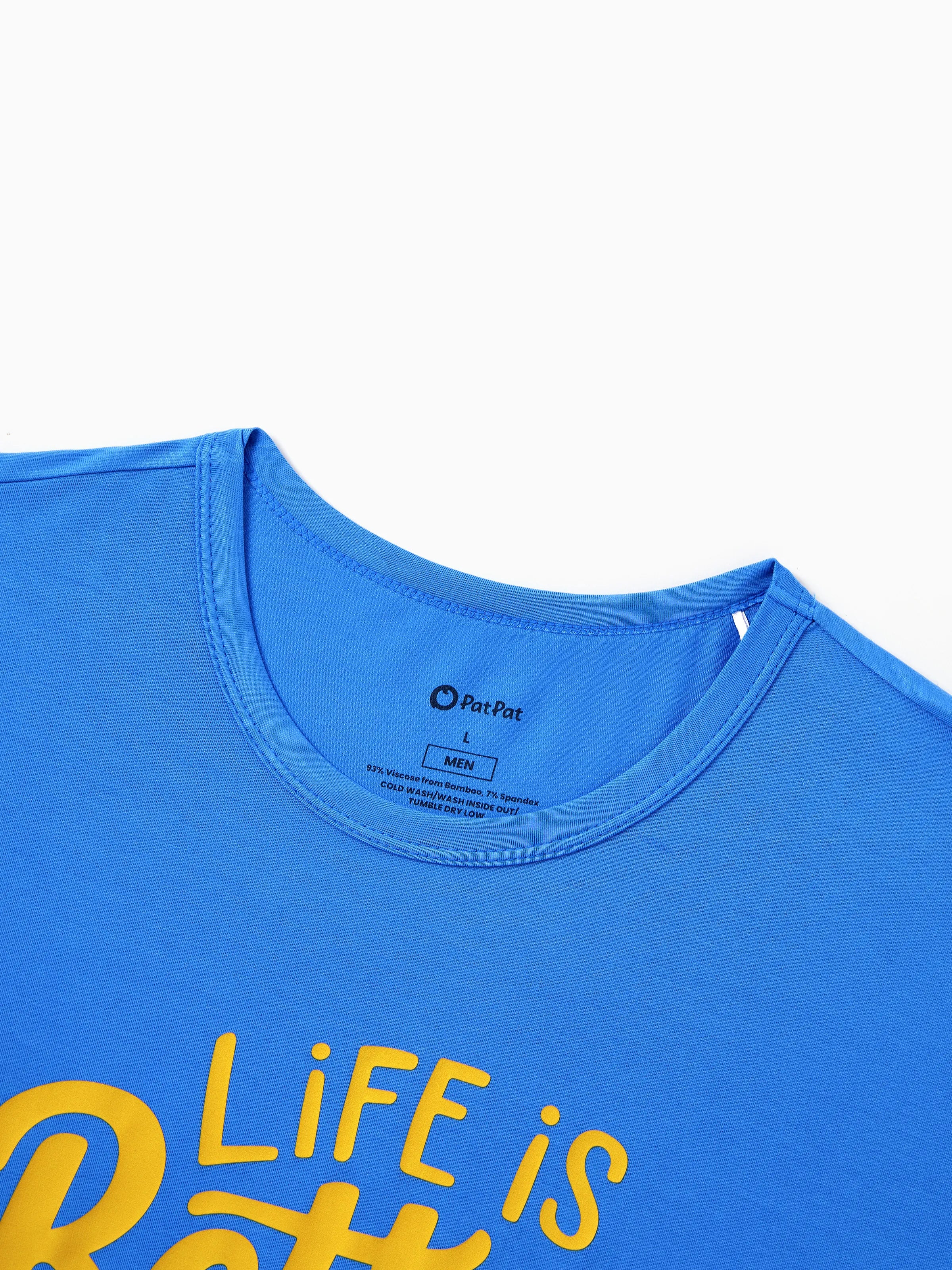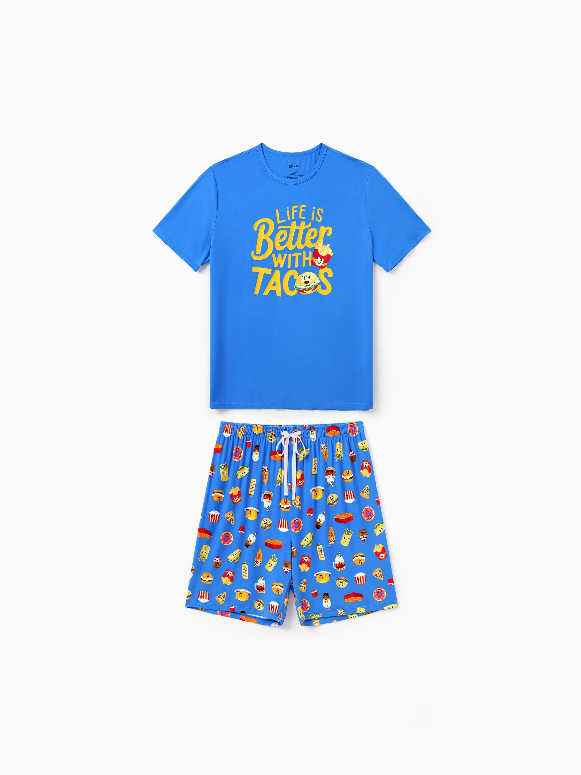 Daddy & Son Bamboo Pajamas Buttery Soft Bamboo PJs for Men Women Kids Toddler, Cute Burger & Fries Print Short Sleeve Sleepwear (Snug-Fitting for Children) Royal Blue