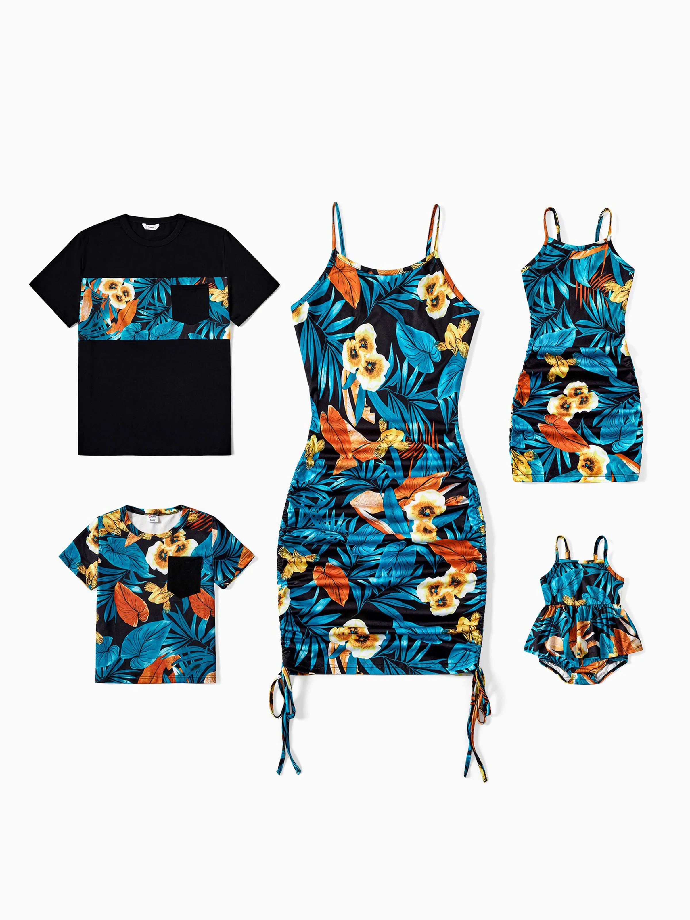 Daddy & Son Floral Panel T-shirt Sets Black
