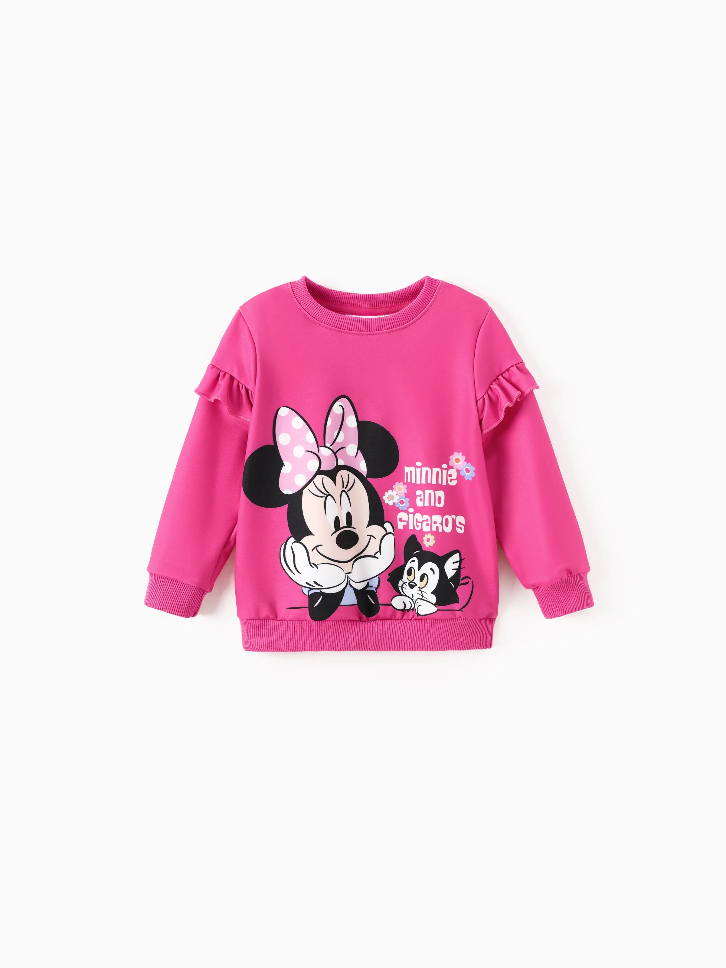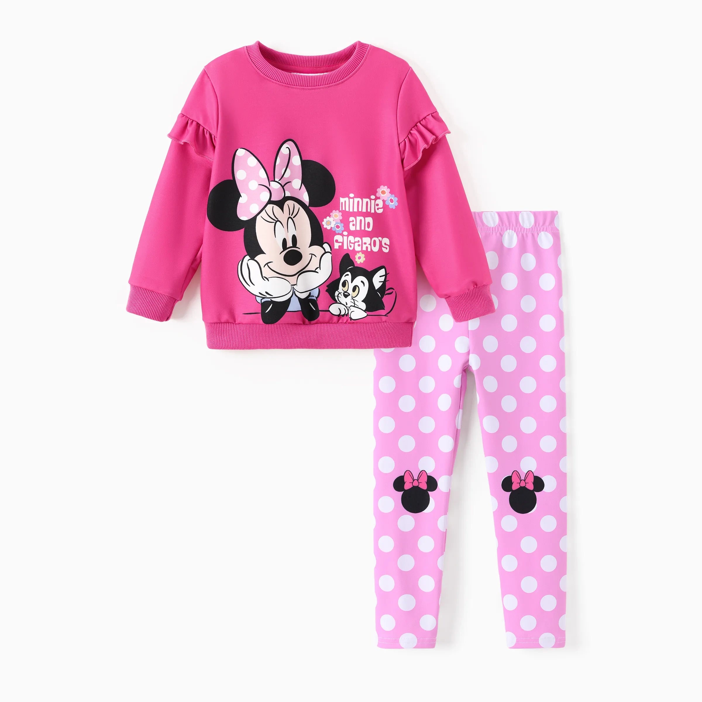 Conjunto de sudadera y leggings con volantes de 2 piezas de Minnie de Mickey y sus amigos de Disney, color rosa intenso