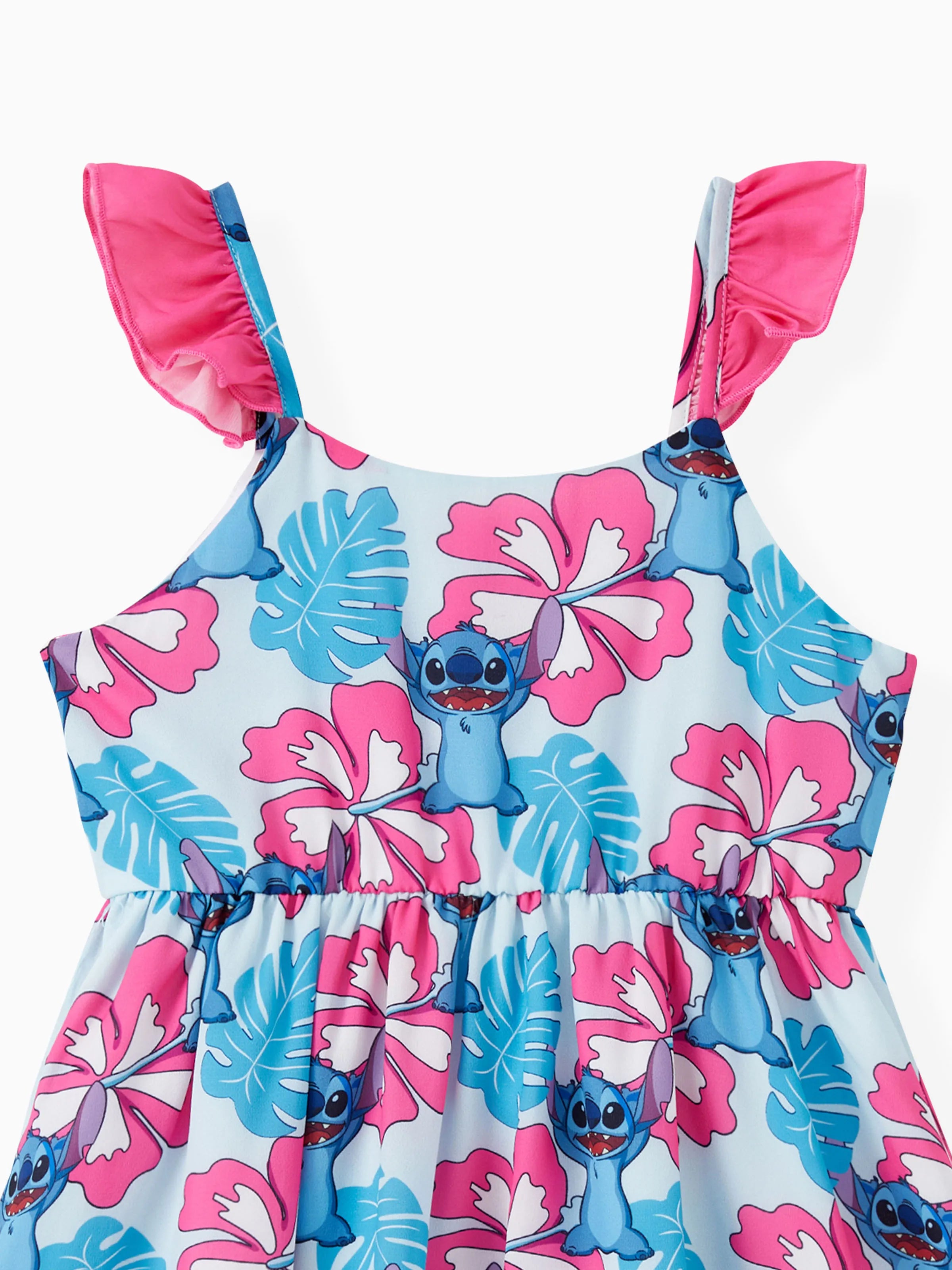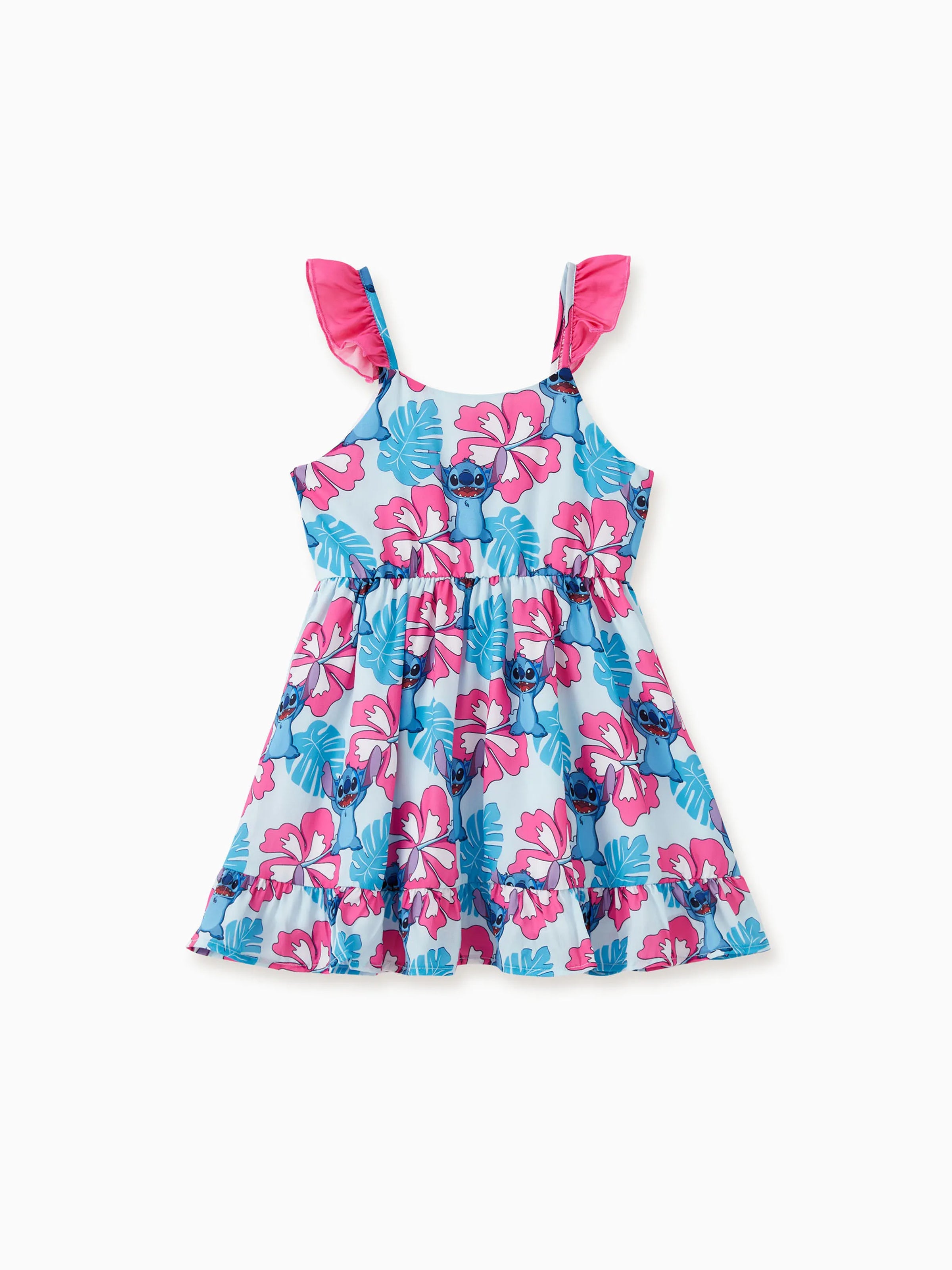 Disney Stitch Toddler/Kid Girl Naia™ Stitch and Hawaii Style Floral Print Sleeveless Dress Multi-color
