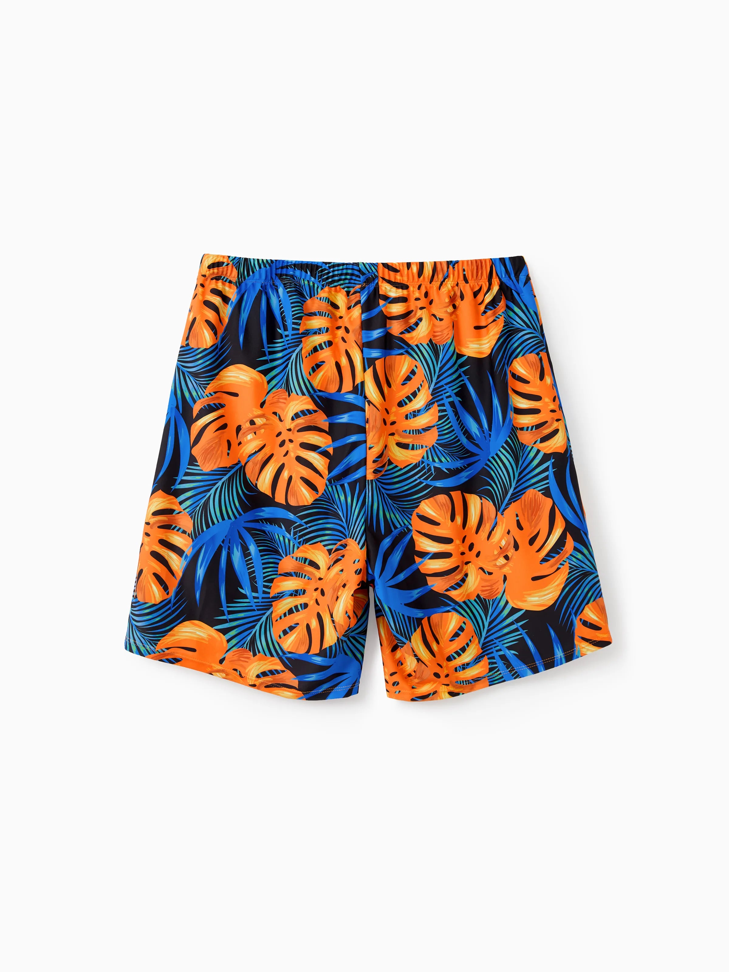 Traje de baño familiar a juego con cordón floral o traje de baño de una pieza de malla fluida con empalmes, color naranja