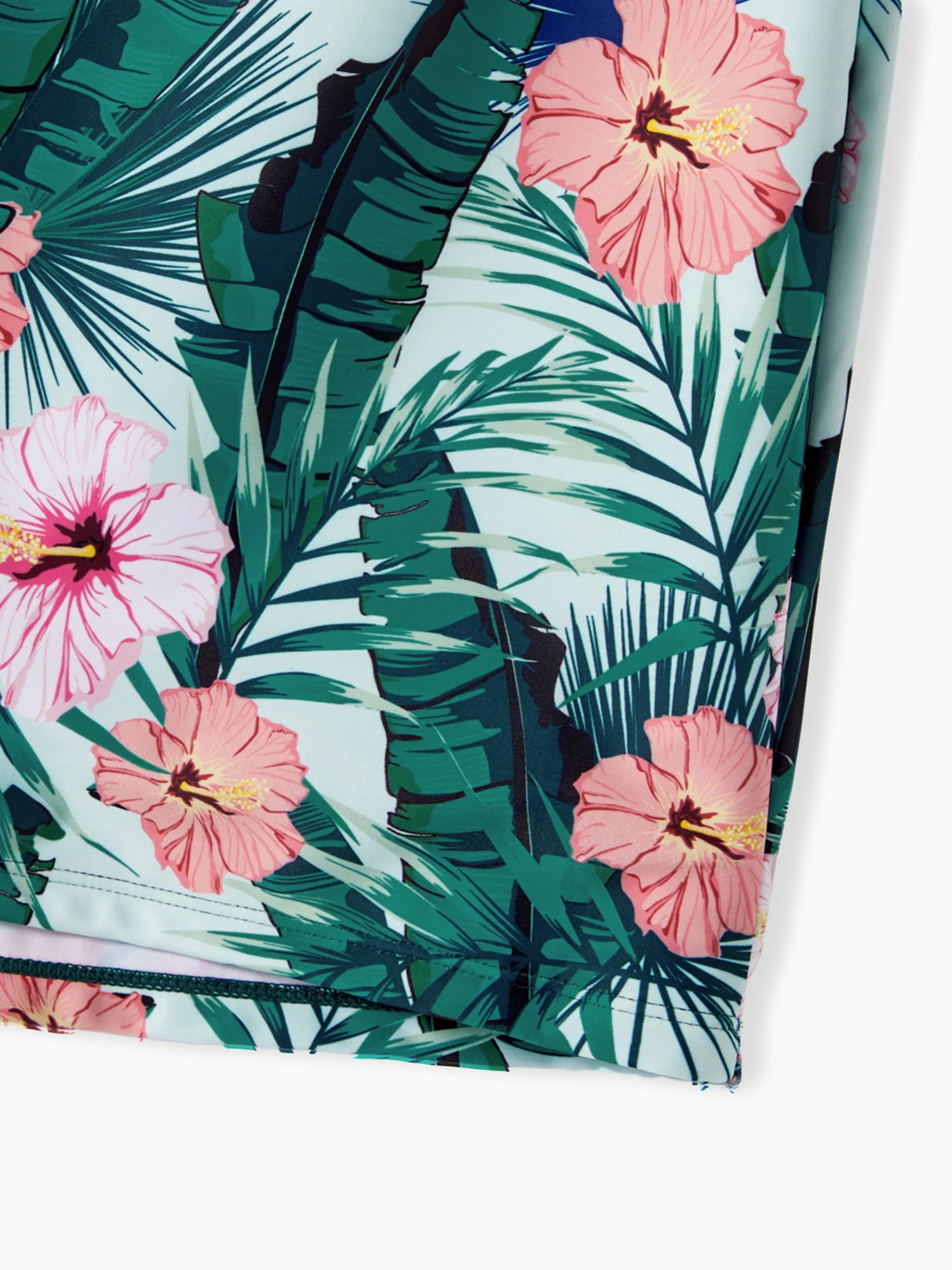 Family Matching Plant Print Ruffle Trim Spliced One-piece Swimsuit or Swim Trunks Green
