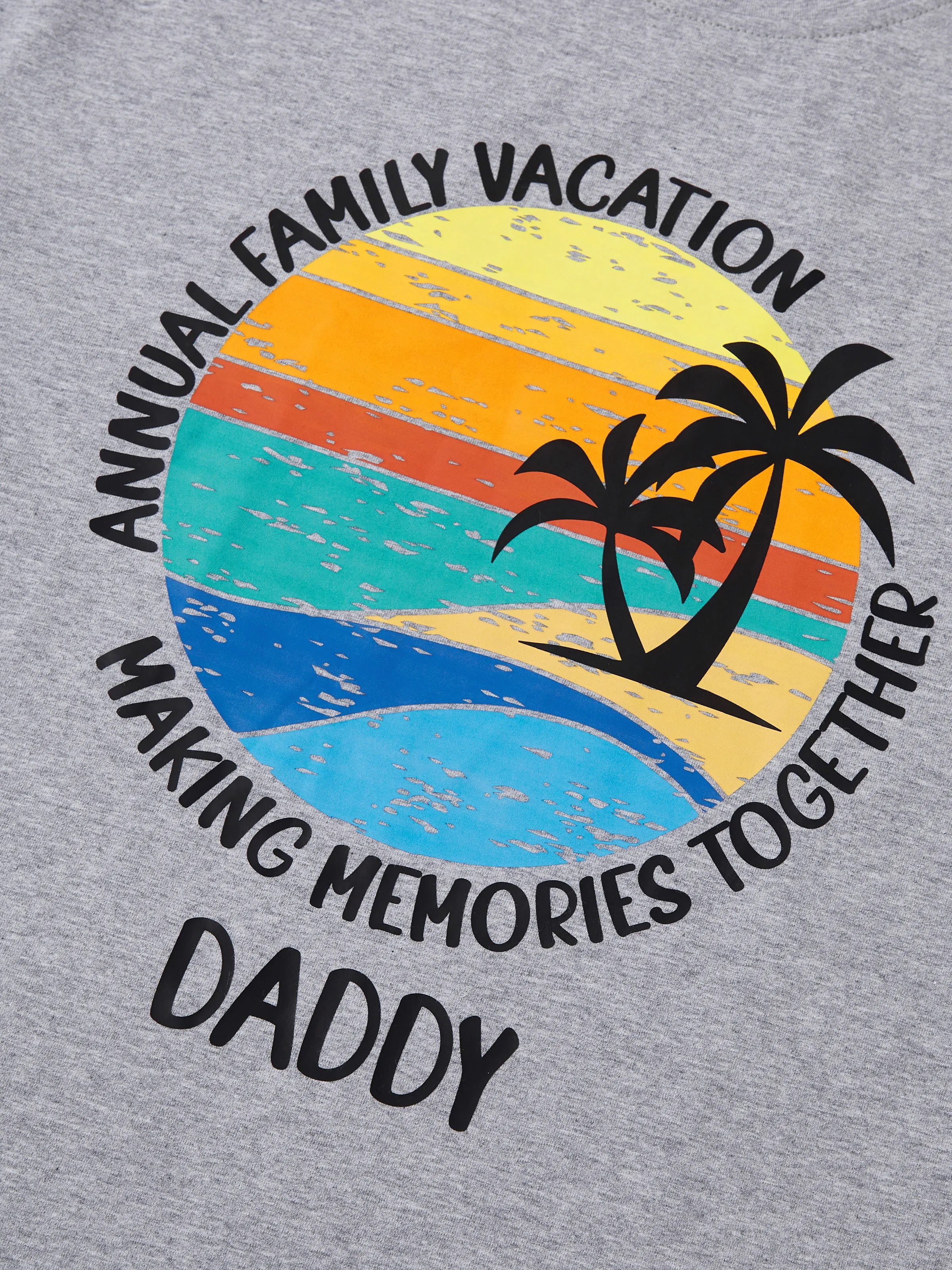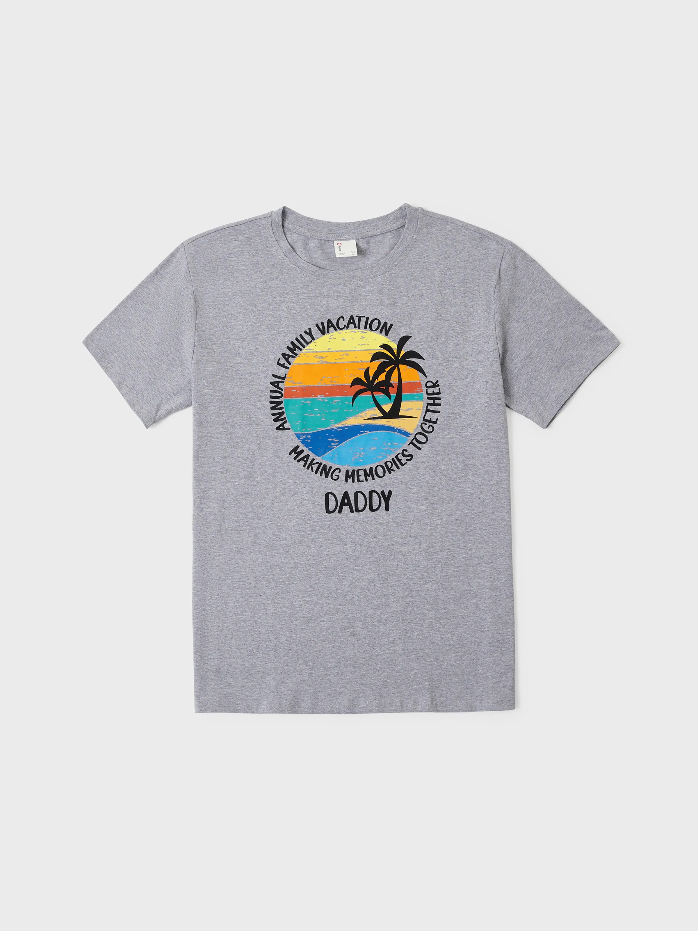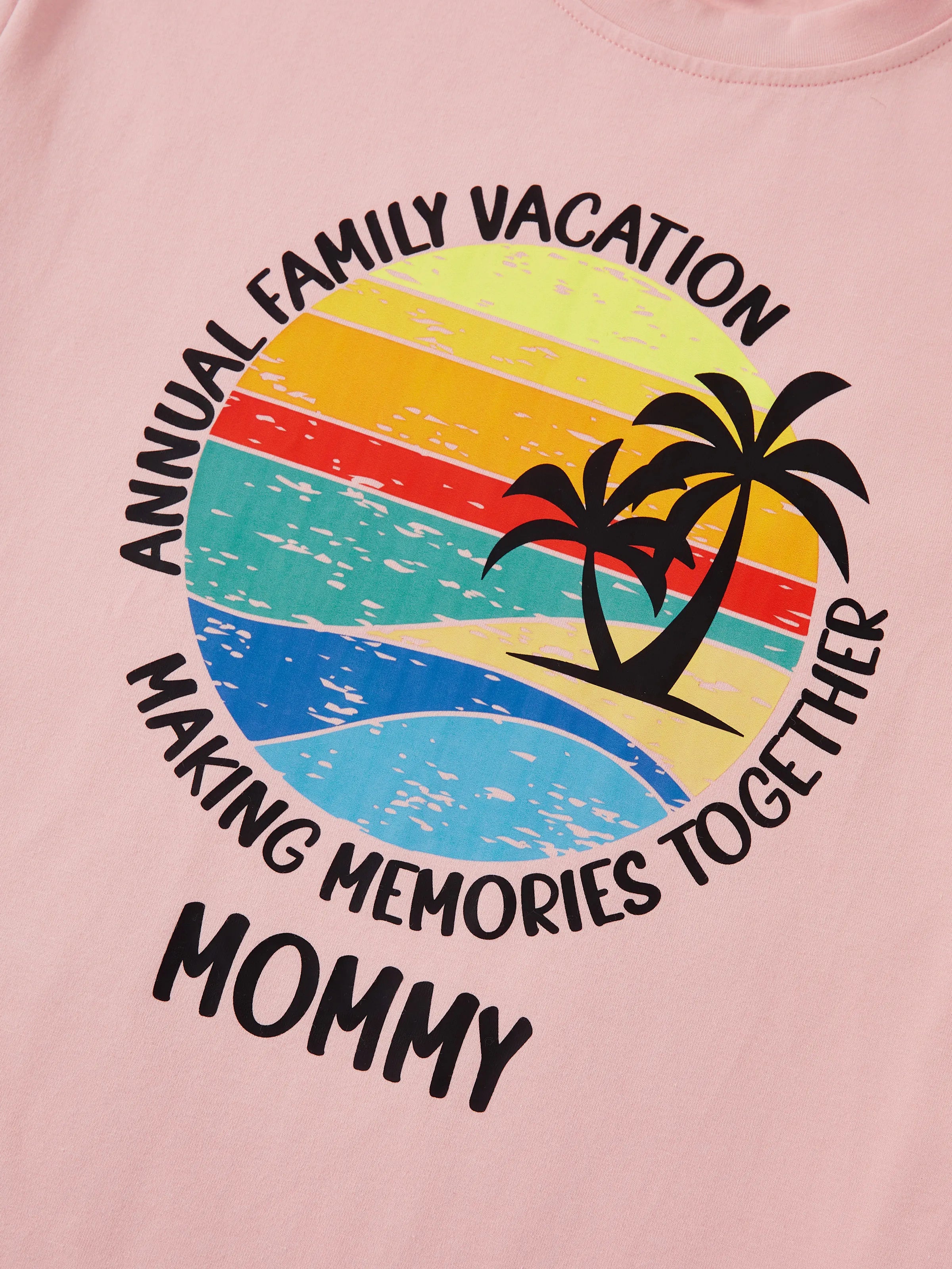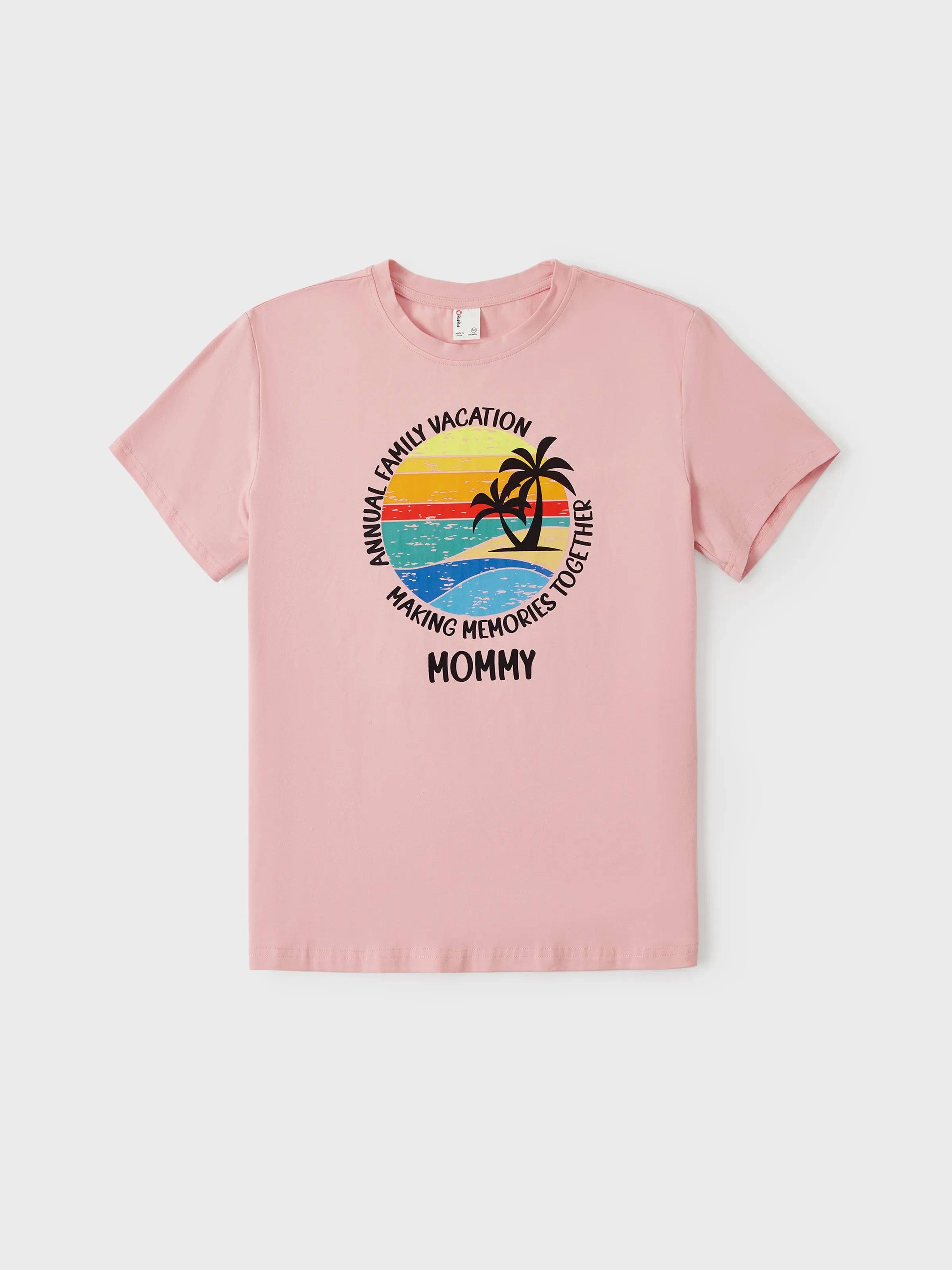 Camiseta de algodón familiar a juego con estampado de cocoteros, manga corta, multicolor