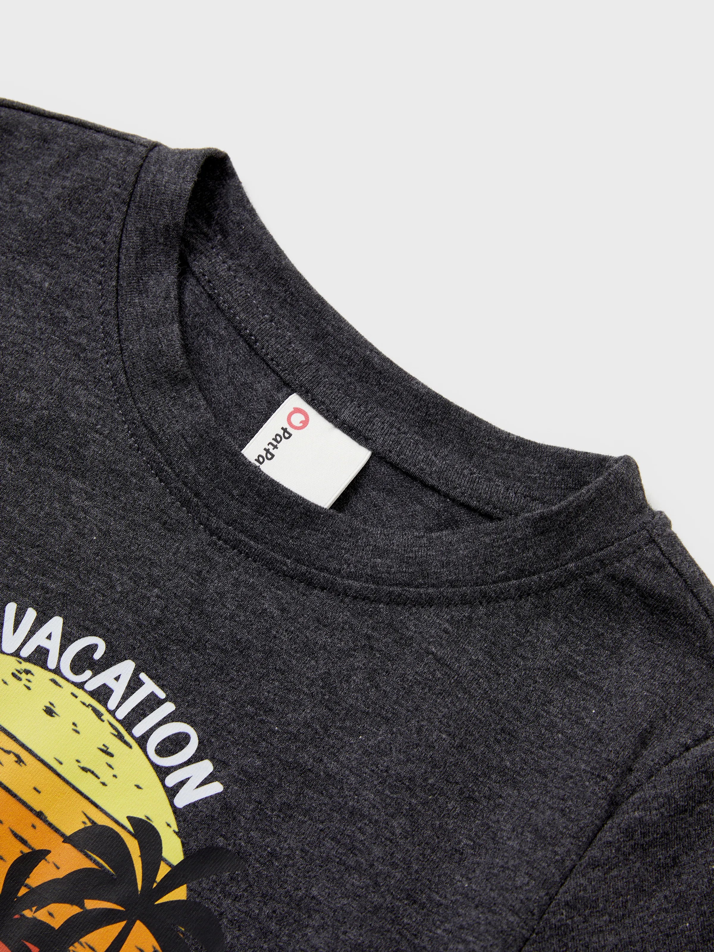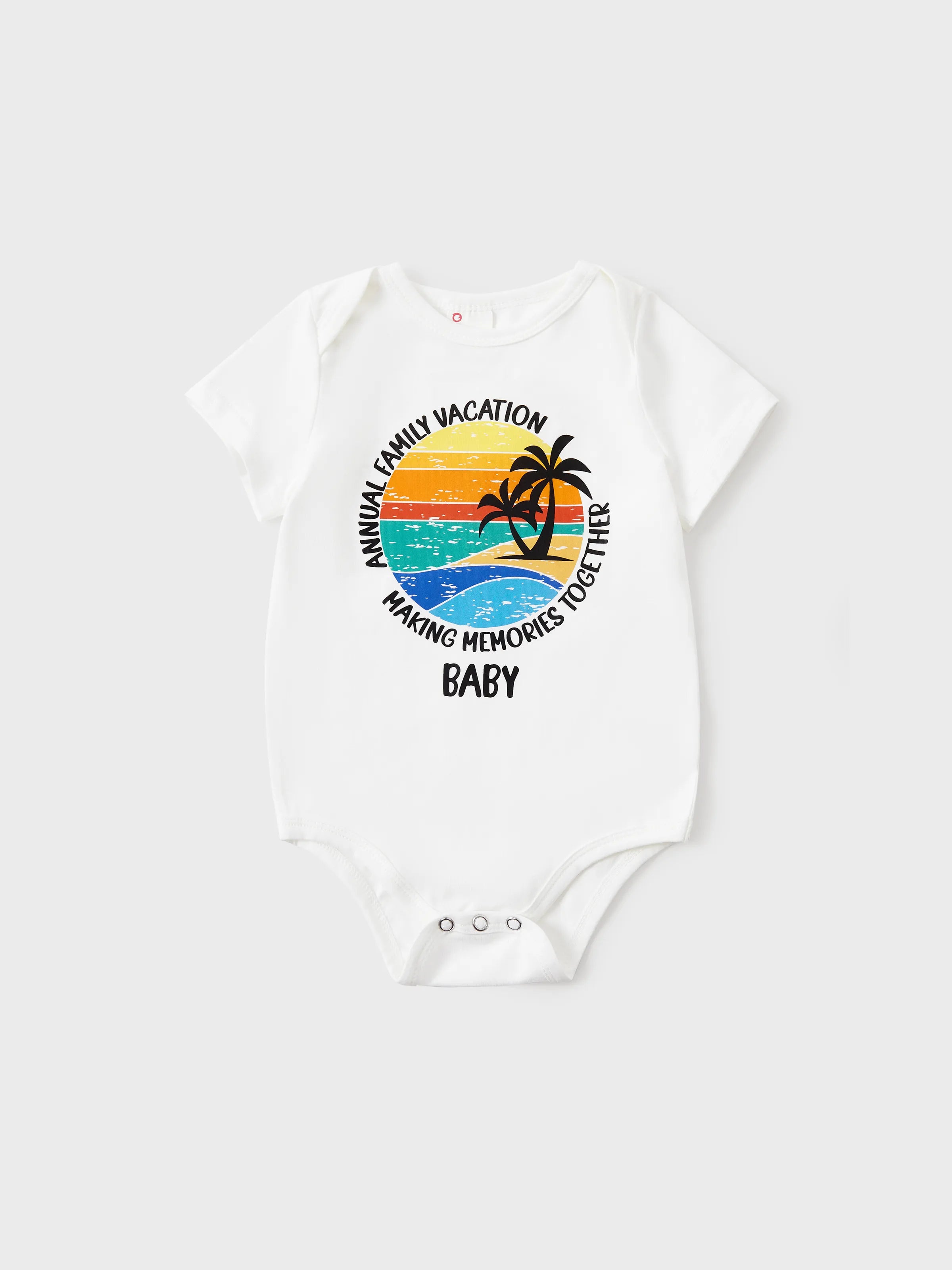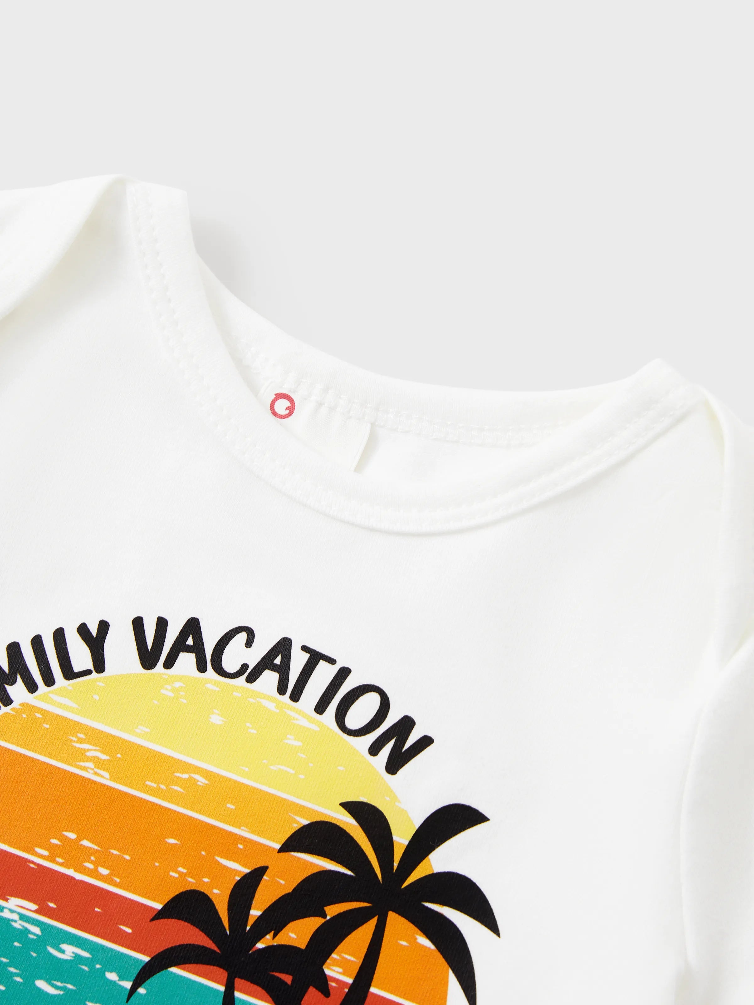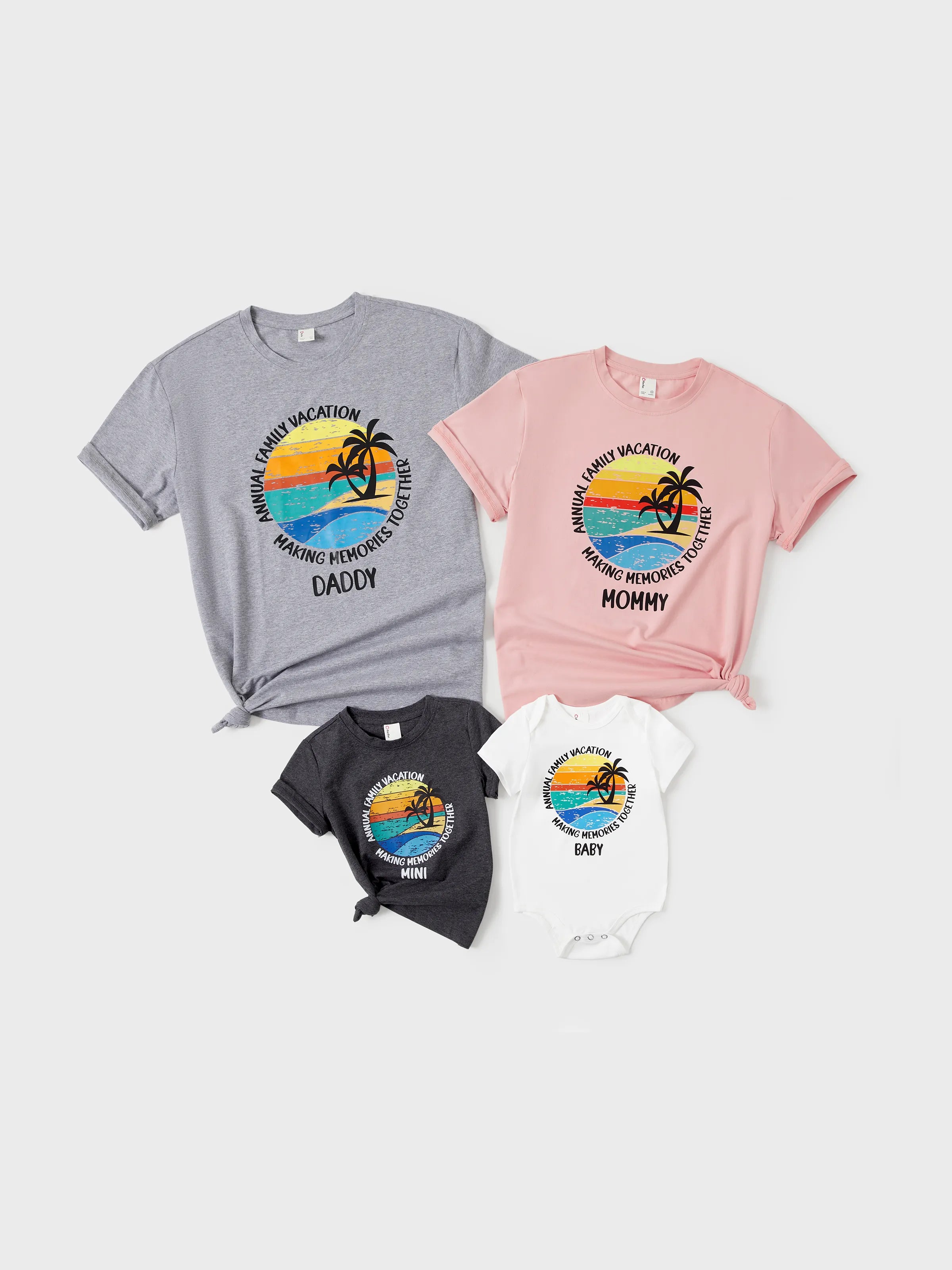 Camiseta de algodón familiar a juego con estampado de cocoteros, manga corta, multicolor