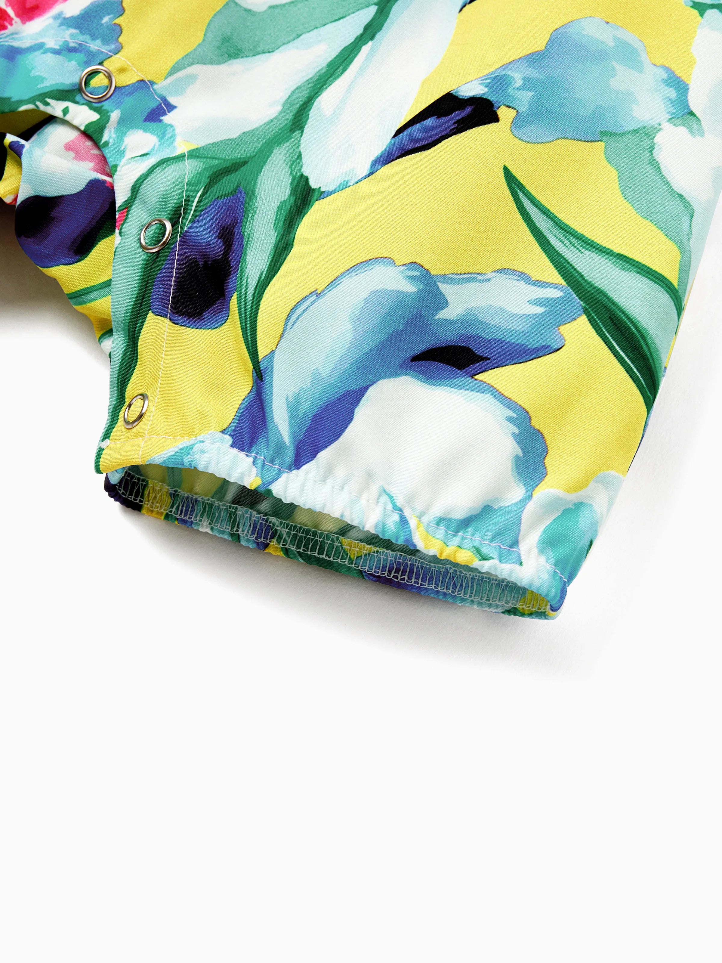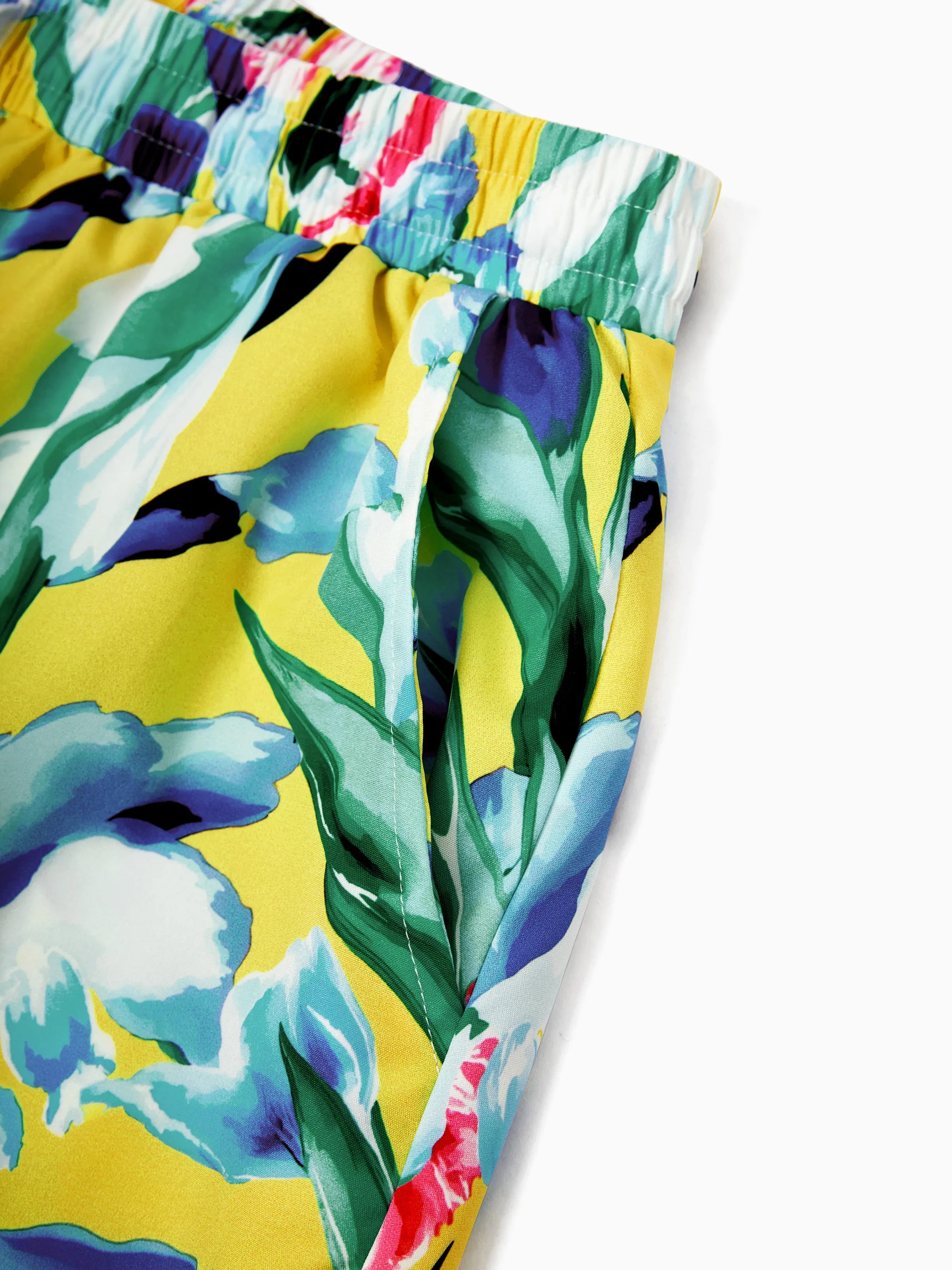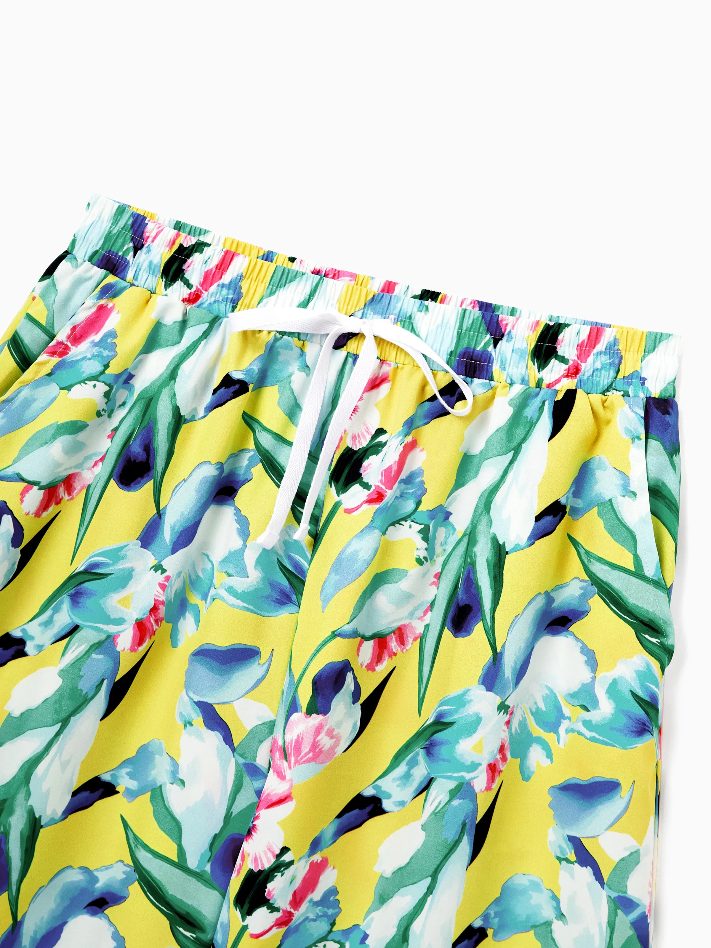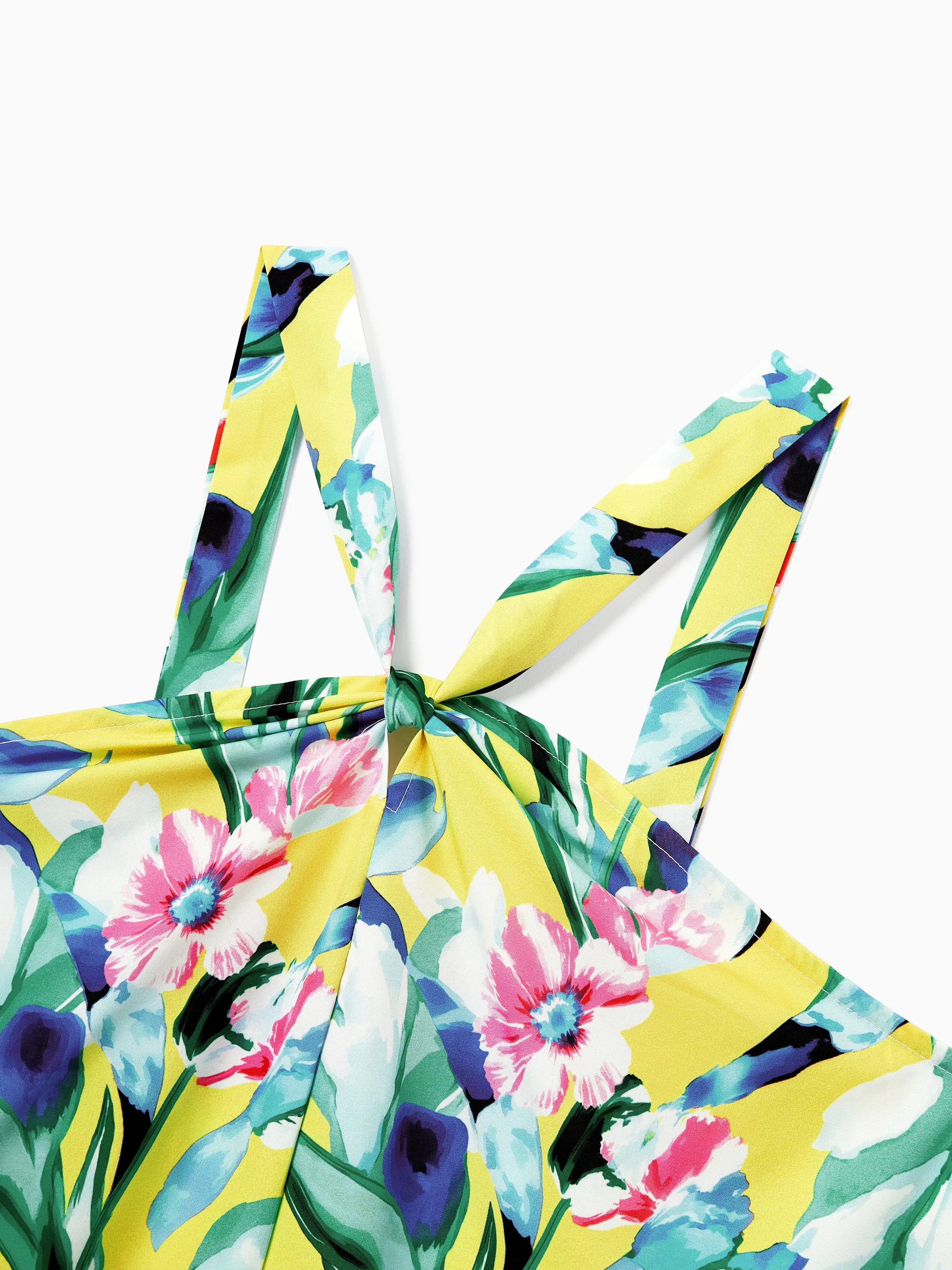 Mommy and Me Casual Outfits Floral Print Camisole Top and Wide-leg Pants Set for Mom Strappy Dress for girl, Bodysuit for Baby Girl Yellow