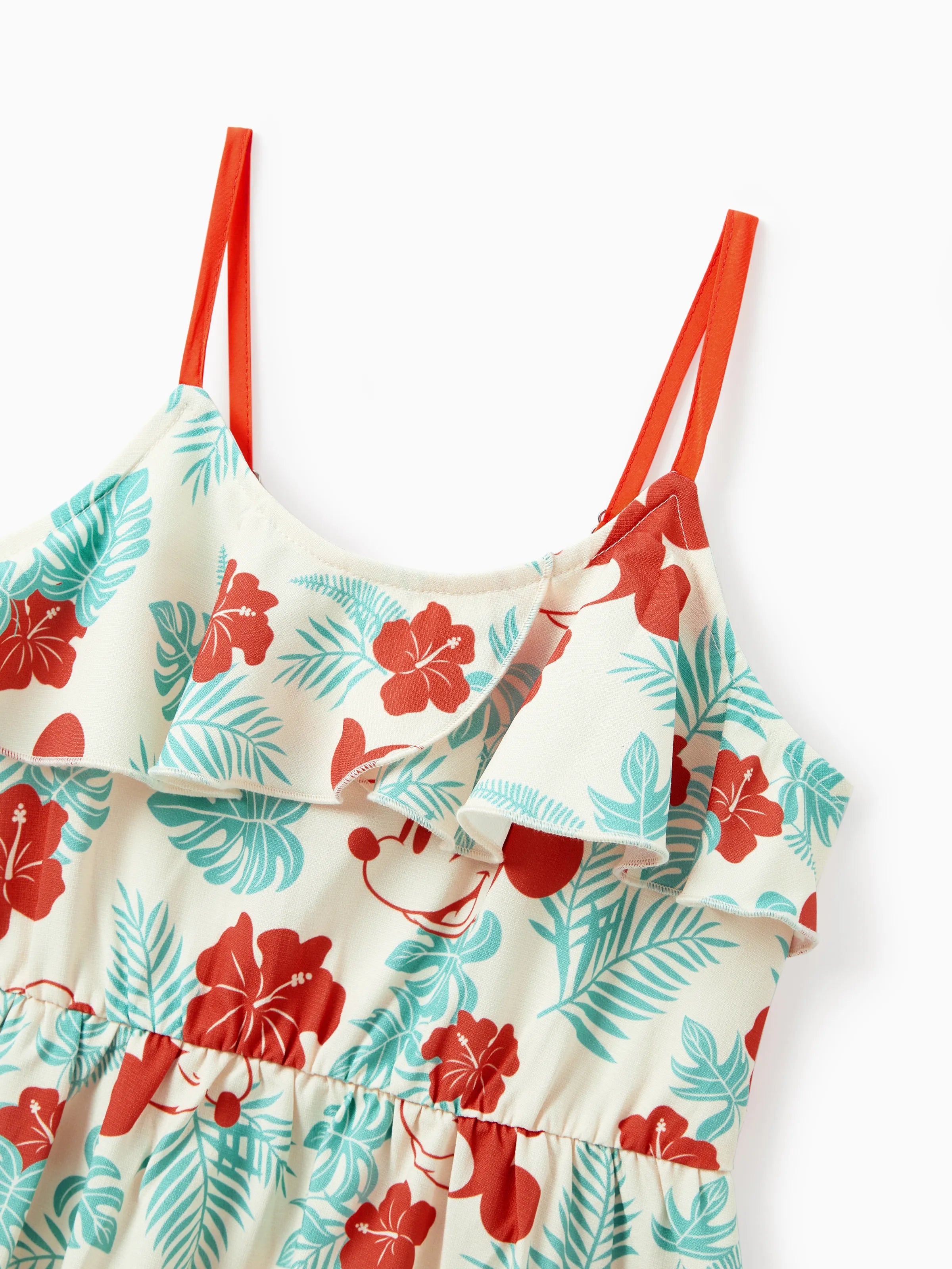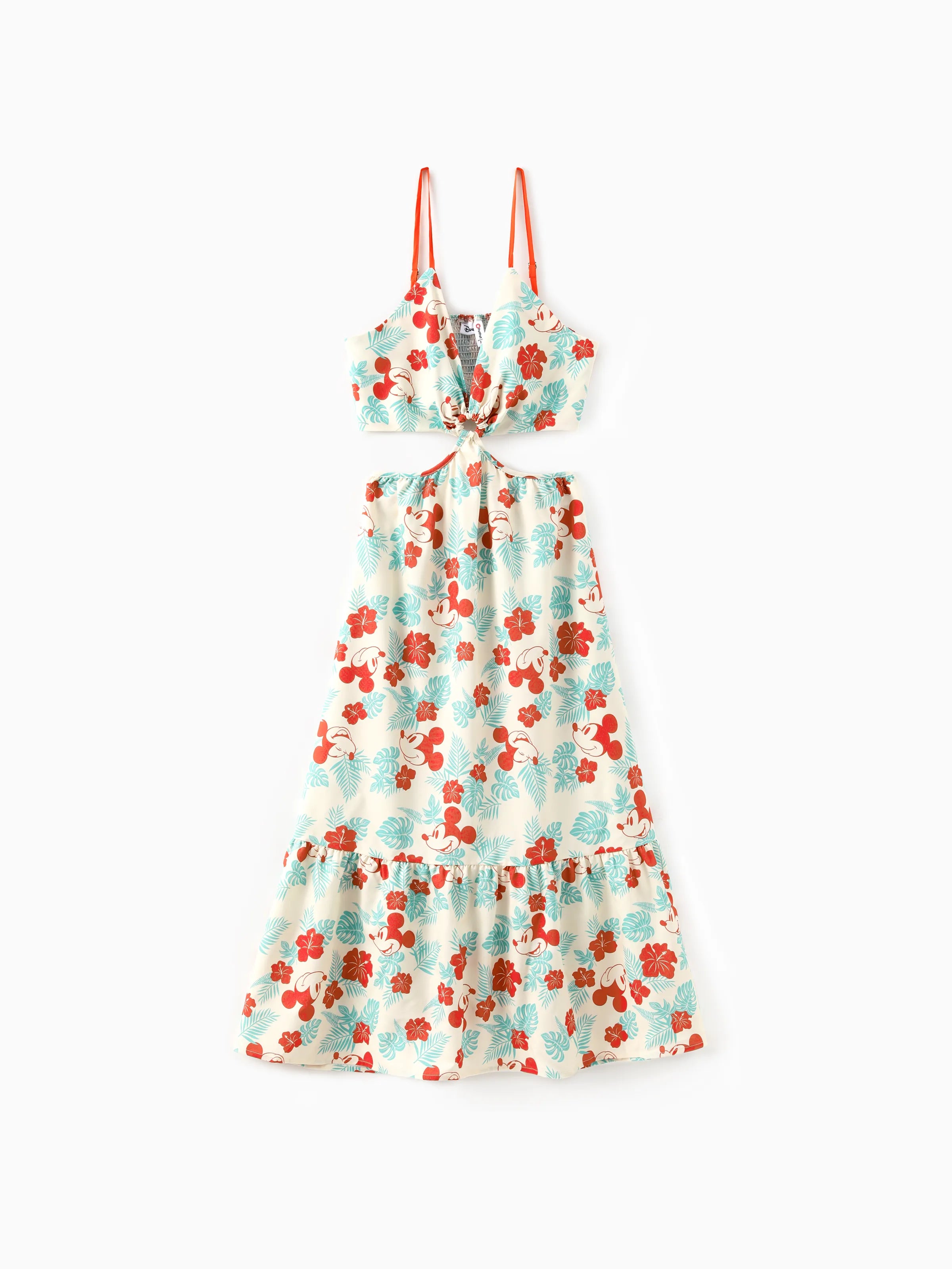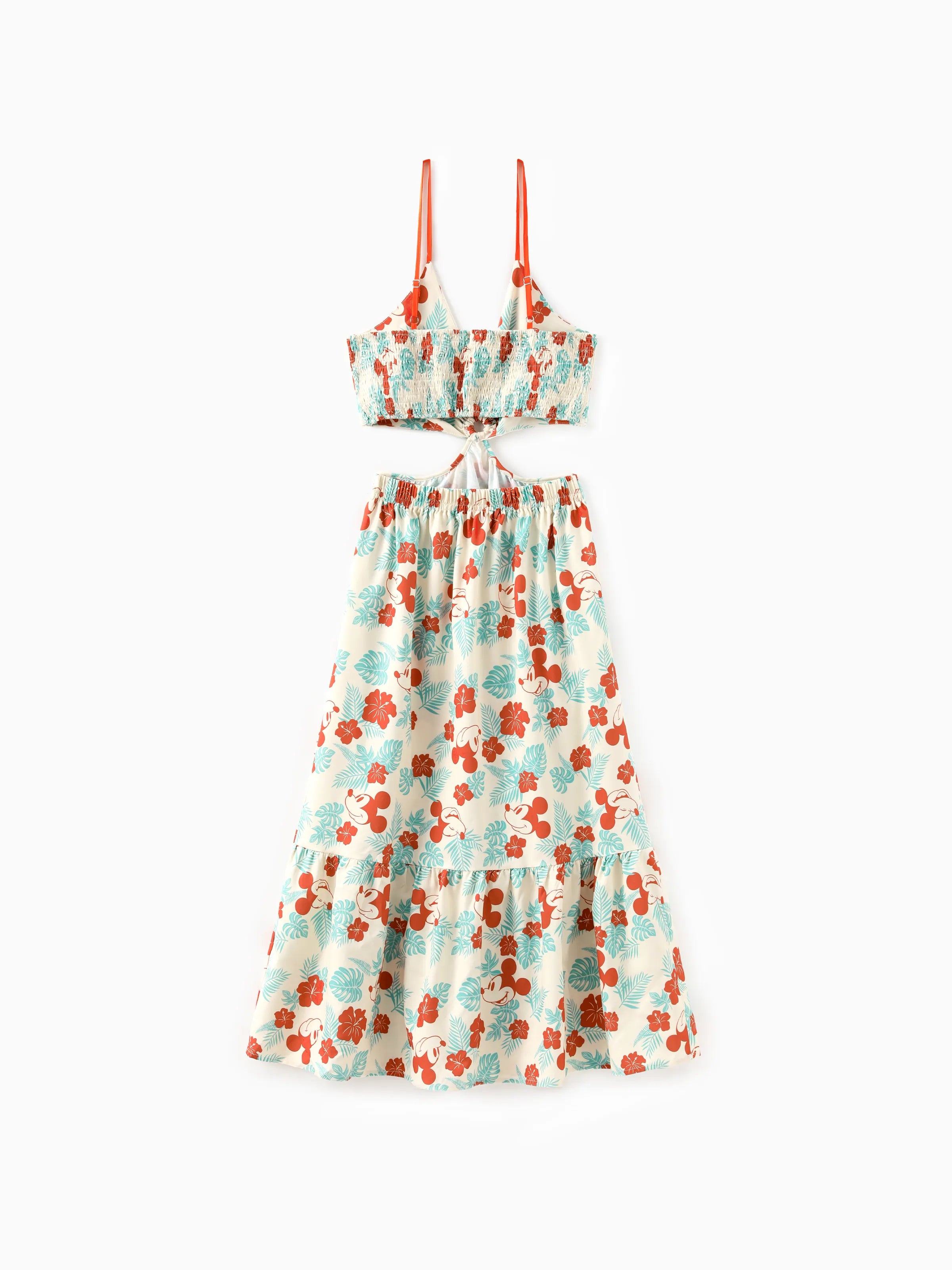 Mommy and Me Disney Mickey and Friends Family Matching Naia™ Floral Allover Print Shirt/Sleeveless Hollow-out Dress/Romper Multi-color