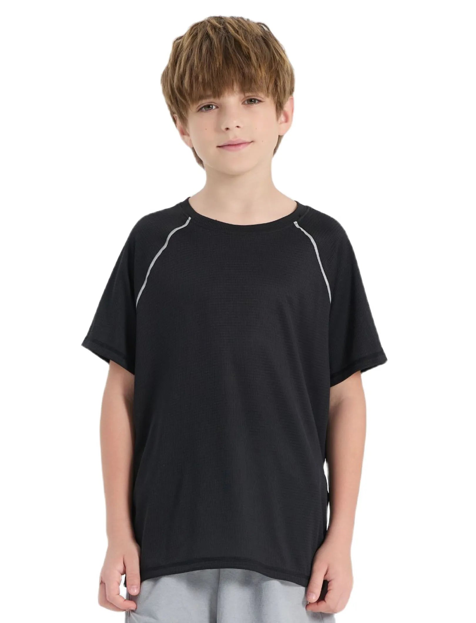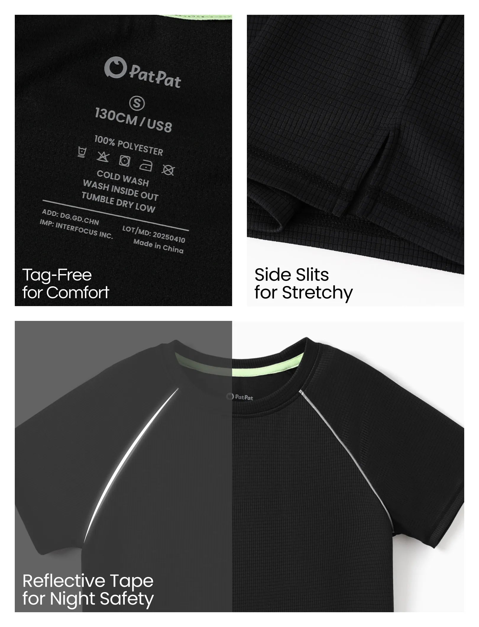 Camiseta deportiva ligera y transpirable de manga corta ultraligera PatPat Lightflow para niños, color negro
