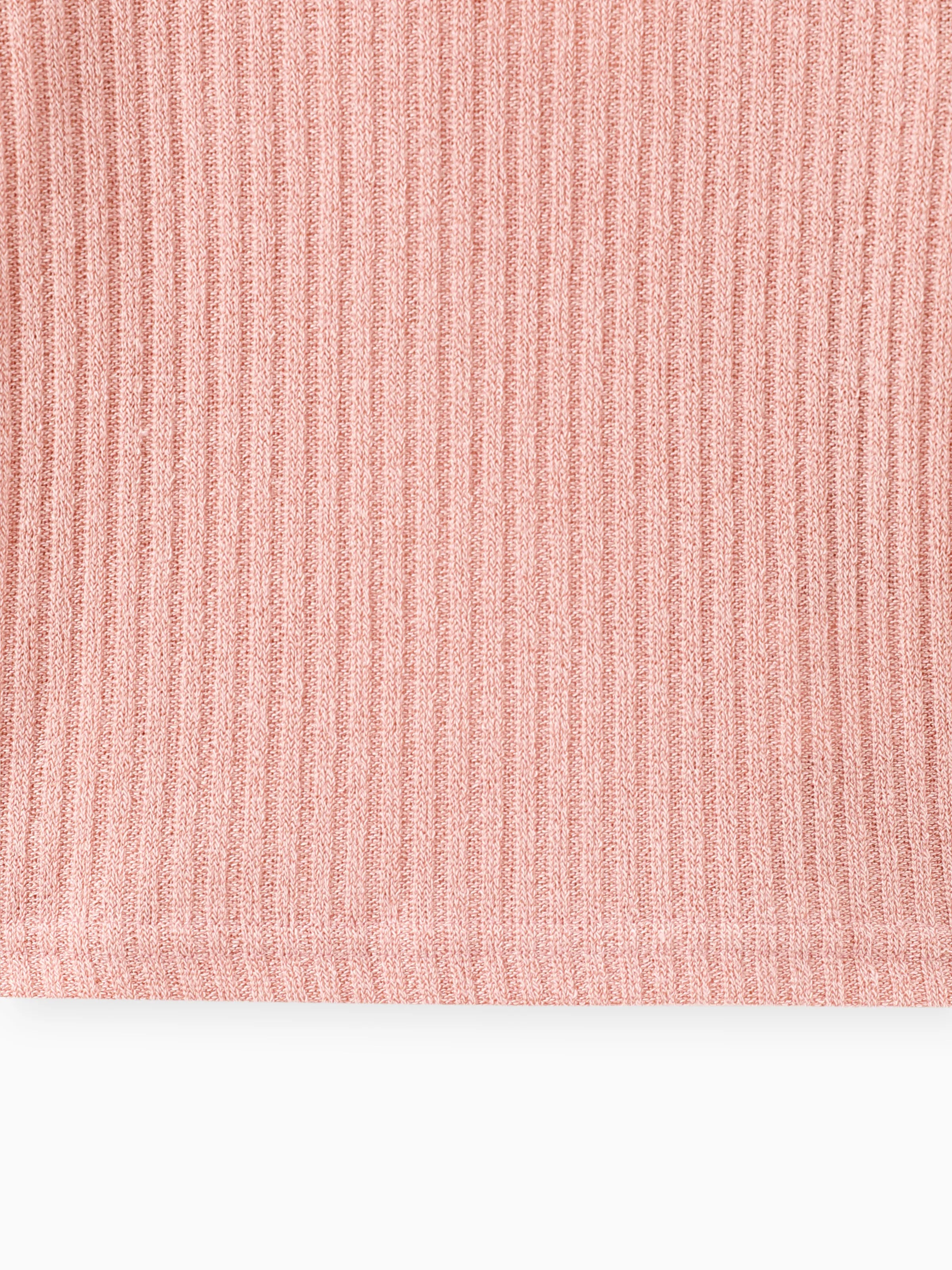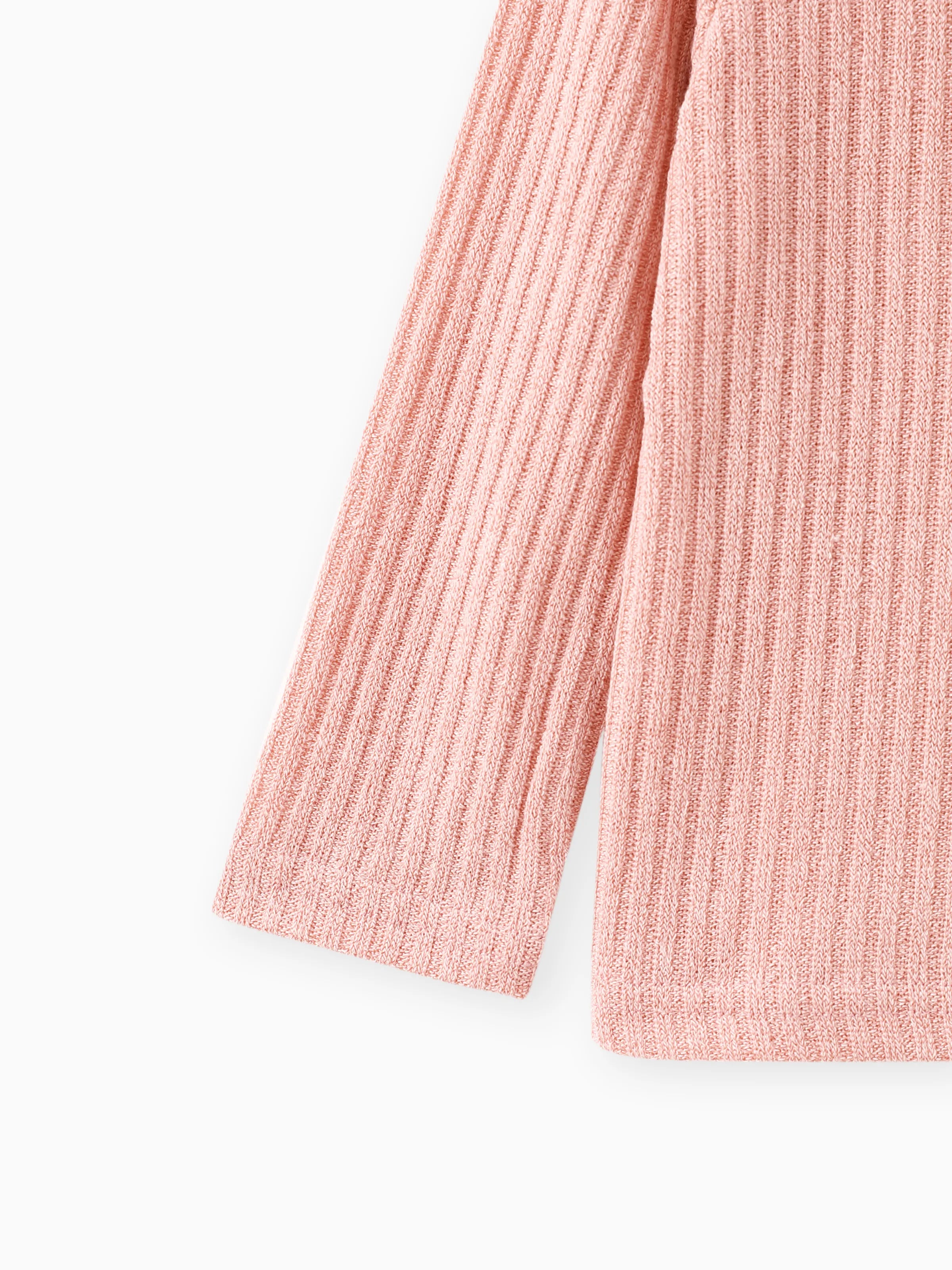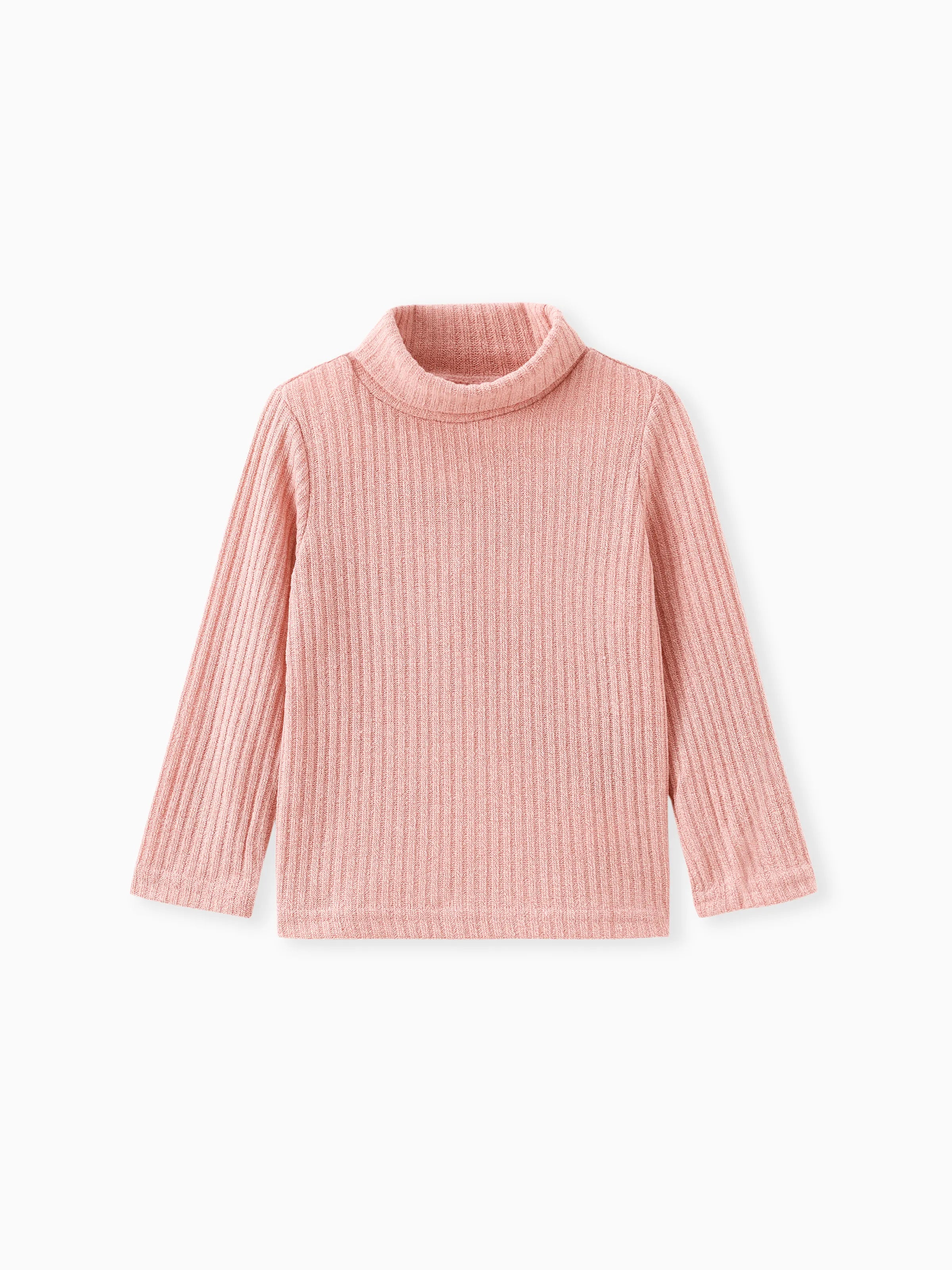 Camiseta texturizada de cuello alto para niña pequeña, color rosa