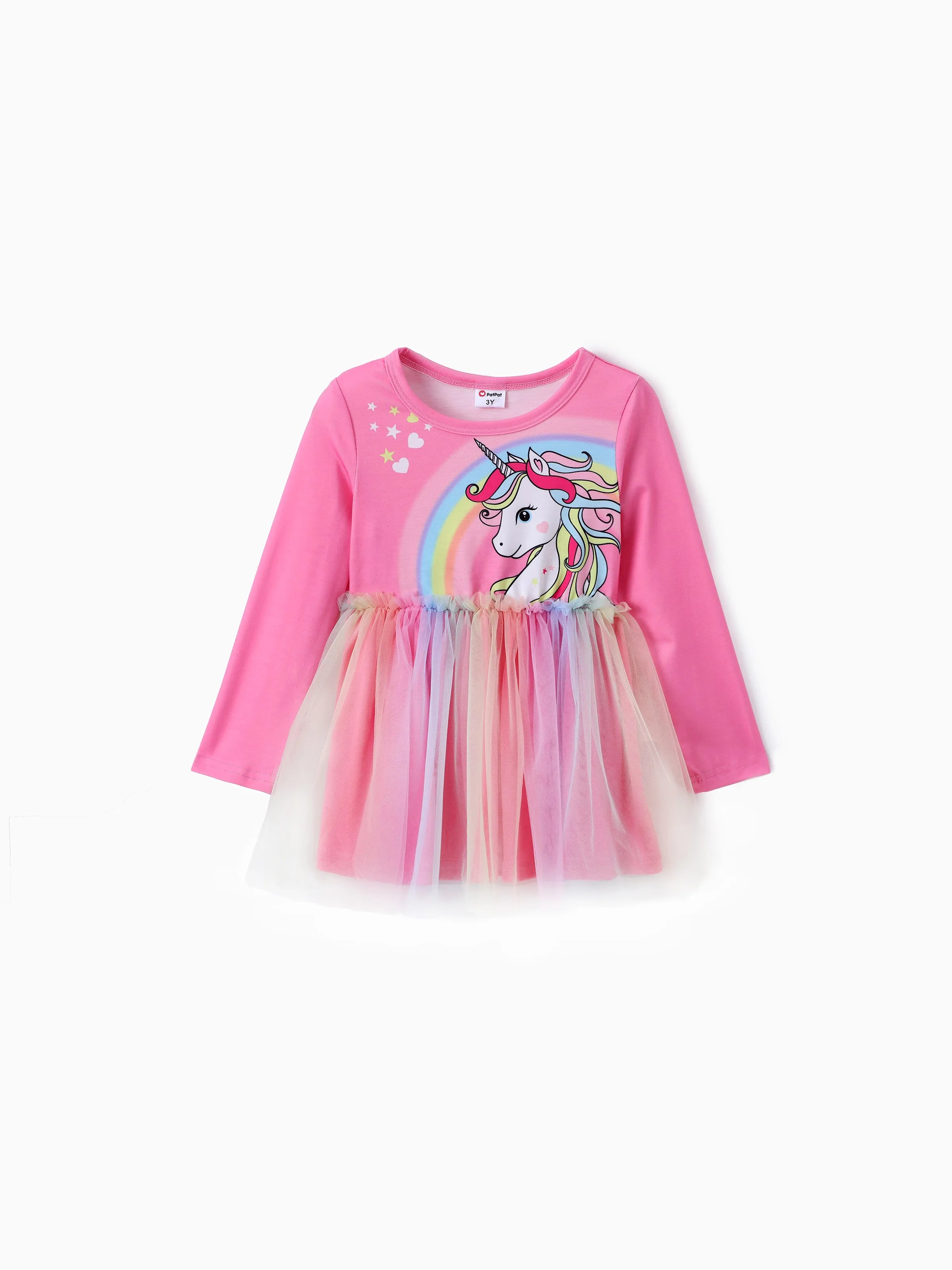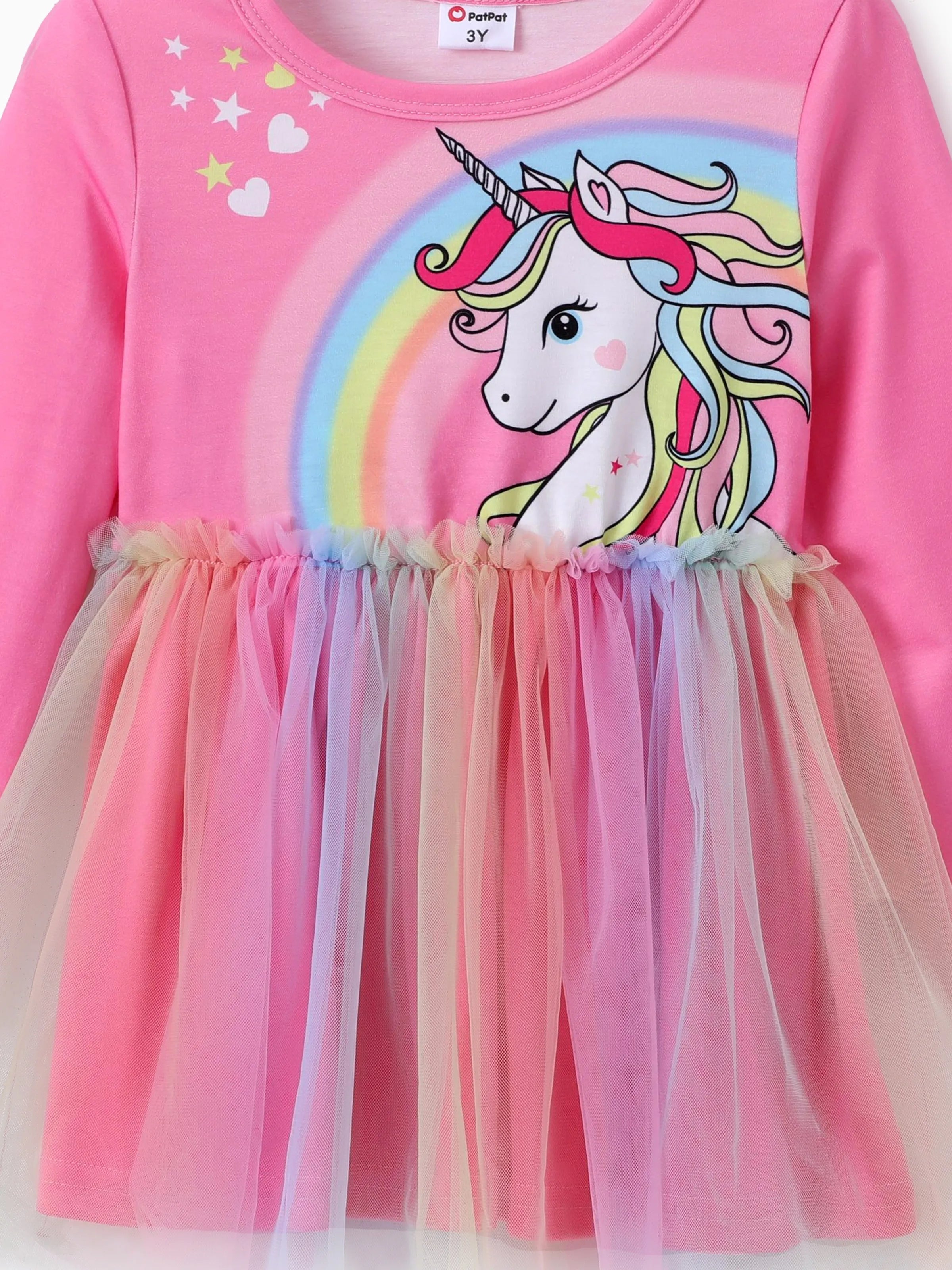 Conjunto de 2 piezas de top y leggings de malla con estampado de unicornio para niña pequeña, color rosa