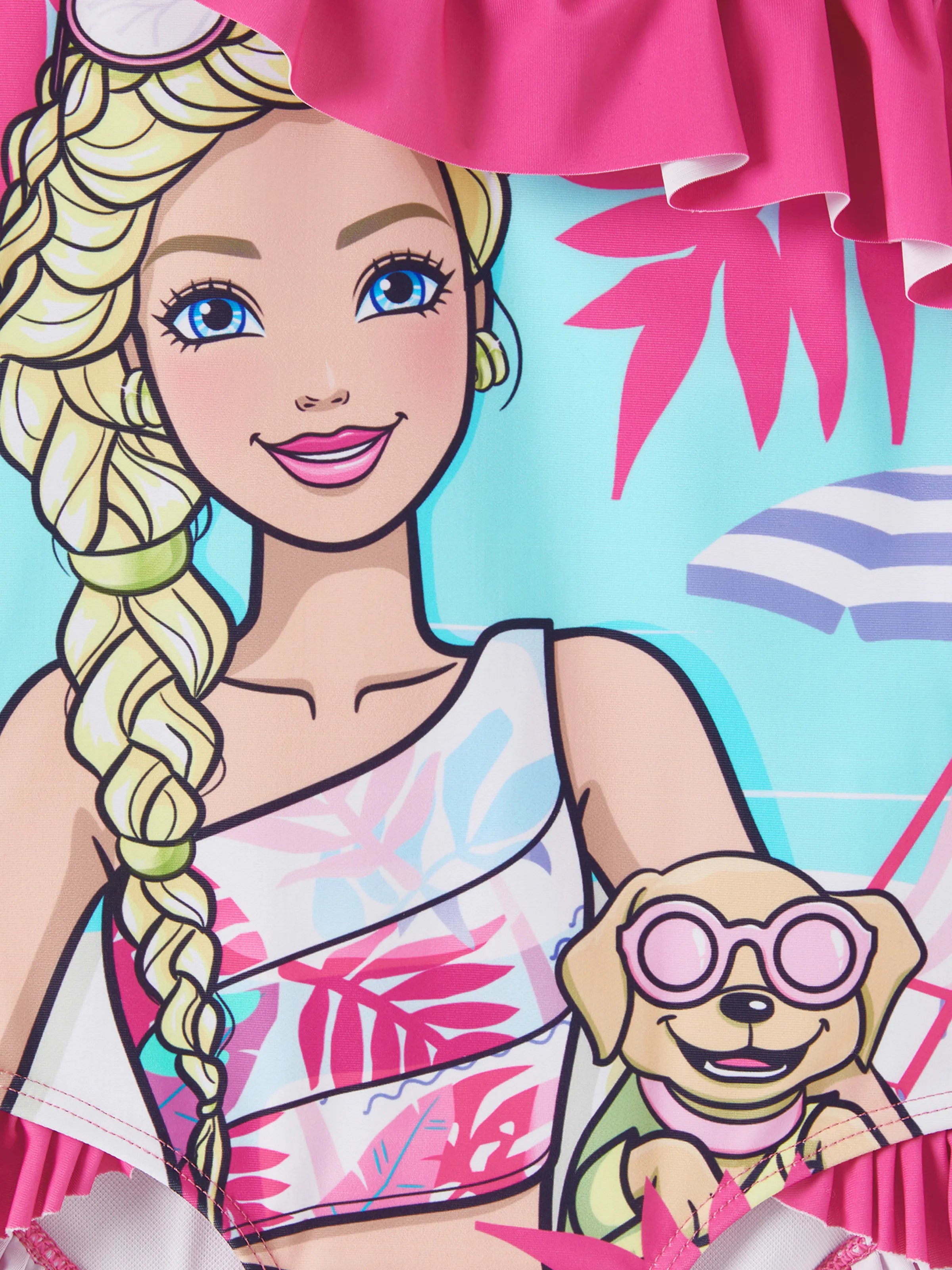 Toddler Girl Barbie Girls Ruffled Tropical Floral Print Swimsuit Hot Pink