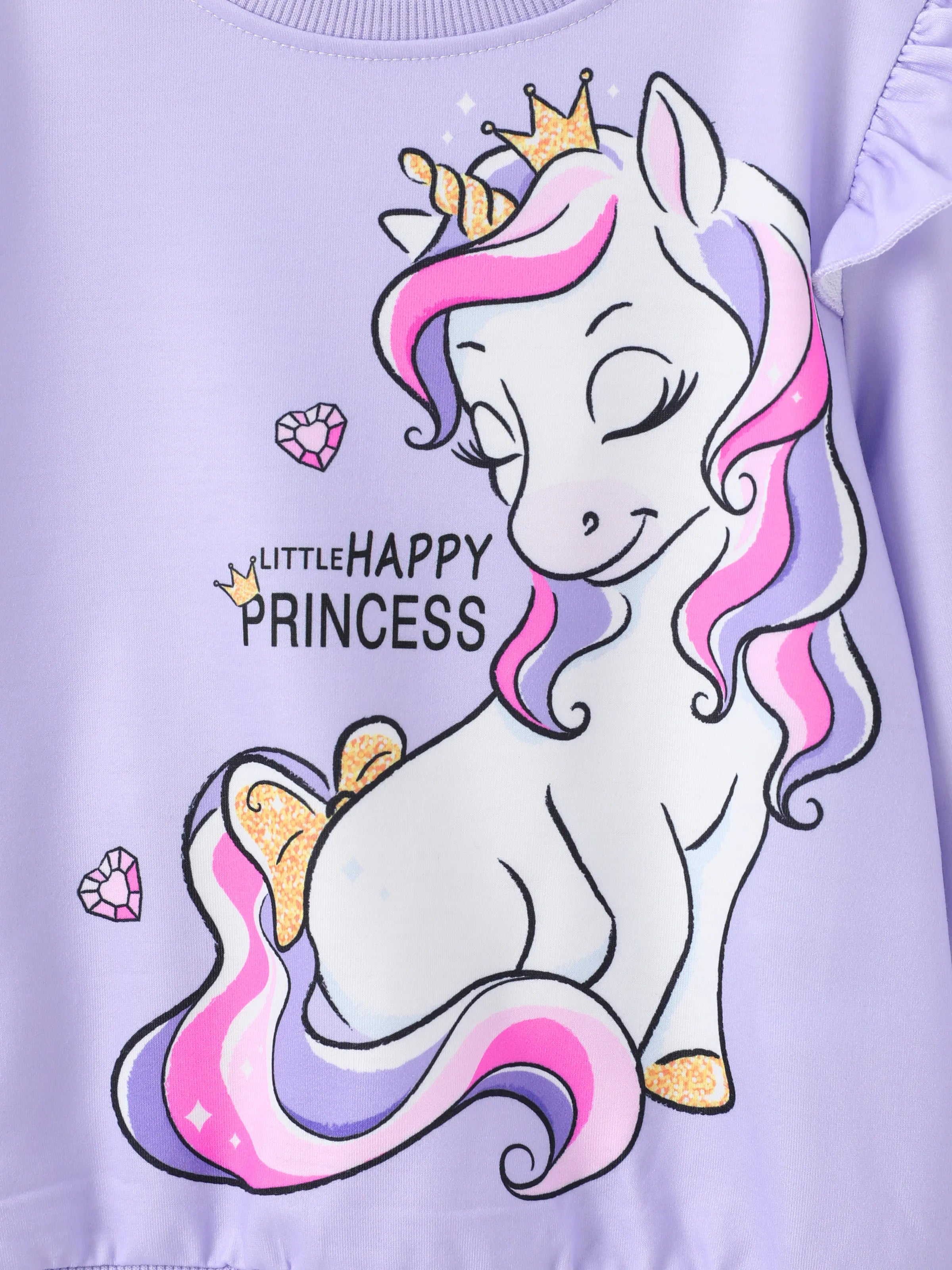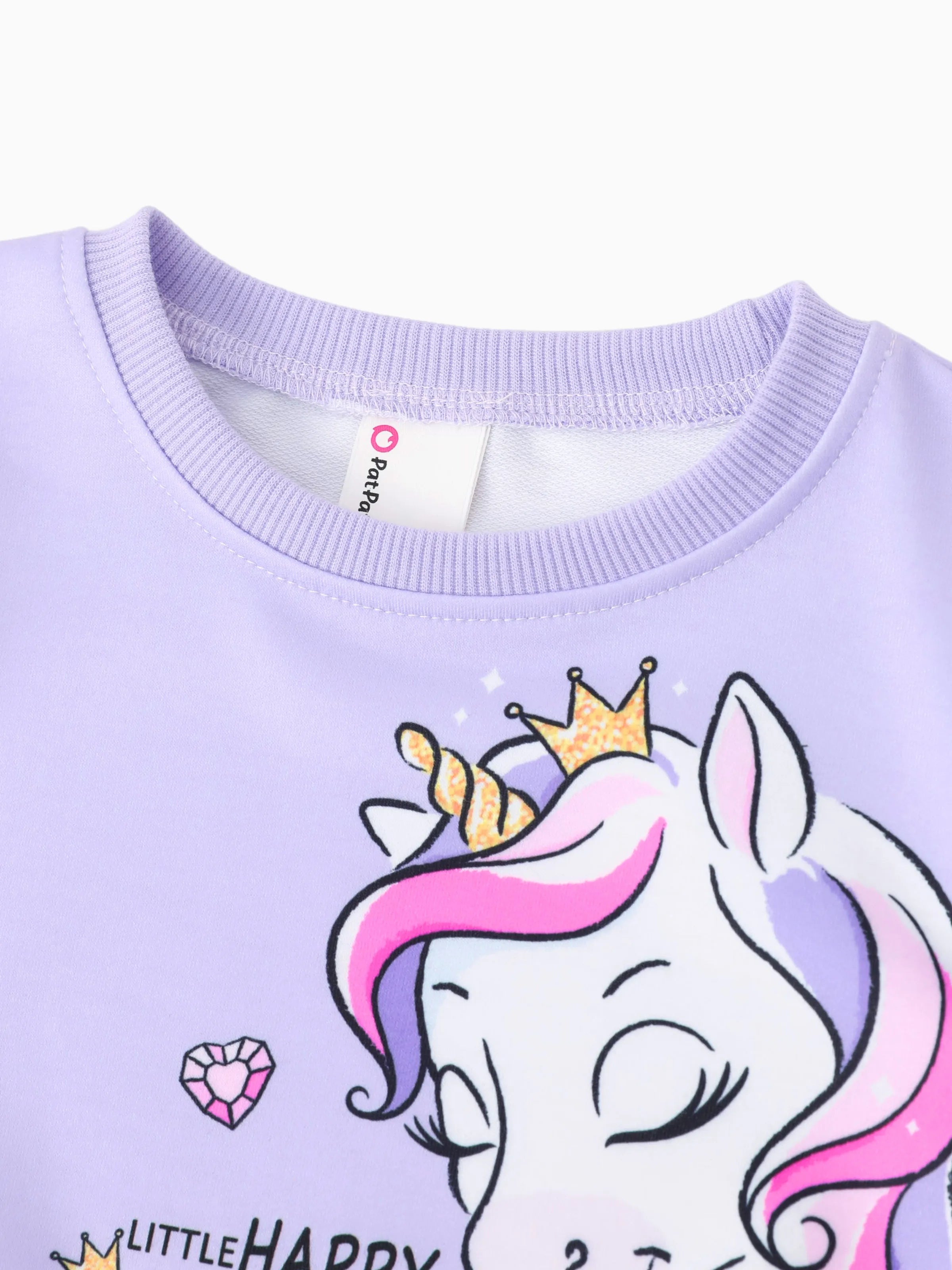 Sudadera con estampado de unicornio infantil para niña pequeña, color morado